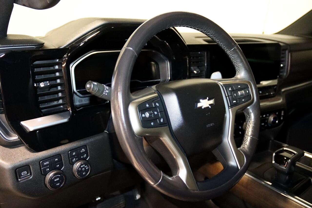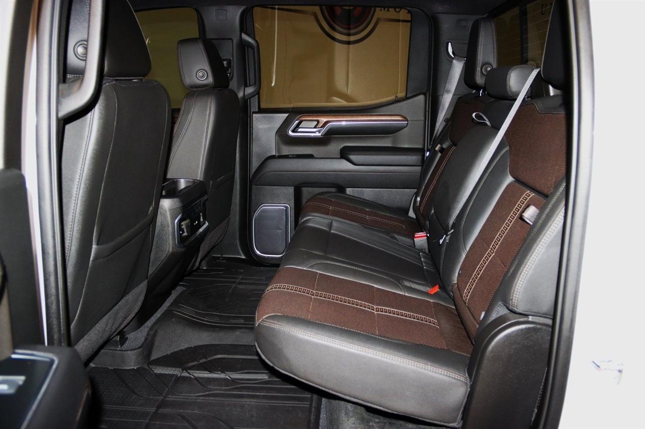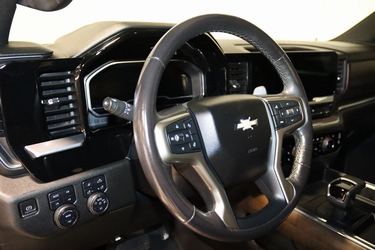 Bluetooth, Back Up Camera, Towing, Touch Screen, 10-Way Power Driver Seat w/Lumbar, 10-Way Power Passenger Seat Adjuster w/Lumbar, 12.3" Multicolor Reconfigurable Digital Display, 120-Volt Bed Mounted Power Outlet, 120-Volt Instrument Panel Power Outlet, 170 Amp Alternator, 2 USB Data Ports, 2nd Row Heated Outboard Seats, 3.23 Rear Axle Ratio, 4-Wheel Disc Brakes, 7 Speakers, ABS brakes, Air Conditioning, Alloy wheels, AM/FM radio: SiriusXM with 360L, Apple CarPlay/Android Auto, Auto High-beam Headlights, Auto-dimming door mirrors, Auto-Dimming Inside Rear-View Mirror, Auto-dimming Rear-View mirror, Auto-Locking Rear Differential, Automatic Emergency Braking, Automatic temperature control, Bed View Camera, Bluetooth® For Phone, Body-Color Painted Mirror Caps, Bodyside moldings, Brake assist, Bumpers: body-color, Chevrolet Connected Access Capable, Chevytec Spray-On Black Bedliner, Chrome Assist Steps, Chrome Recovery Hooks, Color-Keyed Carpeting Floor Covering, Compass, Deep-Tinted Glass, Delay-off headlights, Driver door bin, Driver Memory, Driver vanity mirror, Dual Exhaust w/Polished Outlets, Dual front impact airbags, Dual front side impact airbags, Dual Rear USB Ports (Charge Only), Electric Rear-Window Defogger, Electrical Steering Column Lock, Electronic Cruise Control, Electronic Stability Control, Electronic Transmission Range Selector Shifter, Floor Mounted Center Console, Following Distance Indicator, Forward Collision Alert, Front anti-roll bar, Front Bucket Seats, Front Carpeted Floor Mats, Front Center Armrest, Front dual zone A/C, Front fog lights, Front LED Fog Lamps, Front Pedestrian Braking, Front Rainsensing Wipers, Front reading lights, Front wheel independent suspension, Fully automatic headlights, Garage door transmitter, Genuine wood console insert, Genuine wood dashboard insert, Genuine wood door panel insert, HD Surround Vision, Heated door mirrors, Heated Driver & Front Outboard Passenger Seats, Heated front seats, Heated rear seats, Heated Steering Wheel, Heated steering wheel, High Capacity Suspension Package, Hitch Guidance, Hitch Guidance w/Hitch View, Illuminated entry, Integrated Trailer Brake Controller, IntelliBeam Automatic High Beam On/Off, Keyless Open & Start, Lane Keep Assist w/Lane Departure Warning, LED Cargo Area Lighting, Low tire pressure warning, Memory seat, Occupant sensing airbag, OnStar & Chevrolet Connected Services Capable, Outside Heated Power-Adjustable Mirrors, Outside temperature display, Overhead airbag, Overhead console, Panic alarm, Passenger door bin, Passenger vanity mirror, Perforated Leather Seat Trim, Perimeter Lighting, Power door mirrors, Power driver seat, Power Front Passenger Windows w/Express Up/Down, Power Front Windows w/Driver Express Up/Down, Power passenger seat, Power Rear Windows w/Express Down, Power Sliding Rear Window w/Rear Defogger, Power steering, Power Tailgate, Power Tilt & Telescoping Steering Column, Power windows, Premium audio system: Chevrolet Infotainment 3 Premium, Premium Bose 7-Speaker Sound System, Radio data system, Radio: Chevrolet Infotainment 3 Premium System, Rain sensing wipers, Rear Carpeted Floor Mats, Rear Cross Traffic Alert-Braking, Rear Pedestrian Alert, Rear reading lights, Rear seat center armrest, Rear step bumper, Rear Wheelhouse Liners, Rear window defroster, Remote keyless entry, Remote Vehicle Starter System, Safety Alert Seat, Security system, SiriusXM w/360L, Speed control, Speed-sensing steering, Split folding rear seat, Standard Tailgate, Steering Wheel Audio Controls, Steering wheel mounted audio controls, Tachometer, Telescoping steering wheel, Theft Deterrent System (Unauthorized Entry), Tilt steering wheel, Traction control, Trailer Camera Provisions, Trailer Side Blind Zone Alert, Trailering App, Trailering Package, Trip computer, Ultrasonic Front & Rear Park Assist, Universal Home Remote, Up-Level Rear Seat w/Storage Package, Variably intermittent wipers, Ventilated Driver & Front Passenger Seats, Ventila