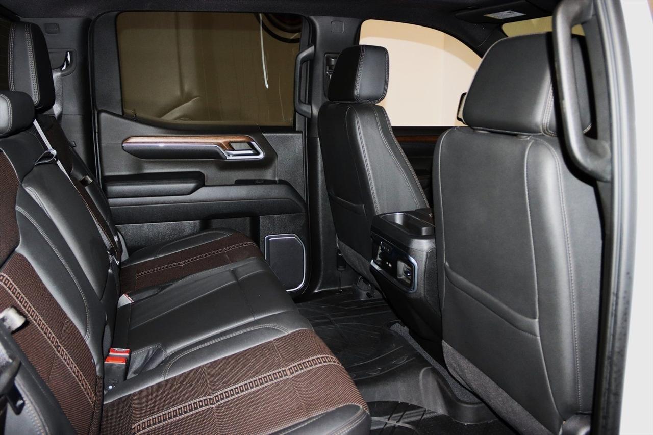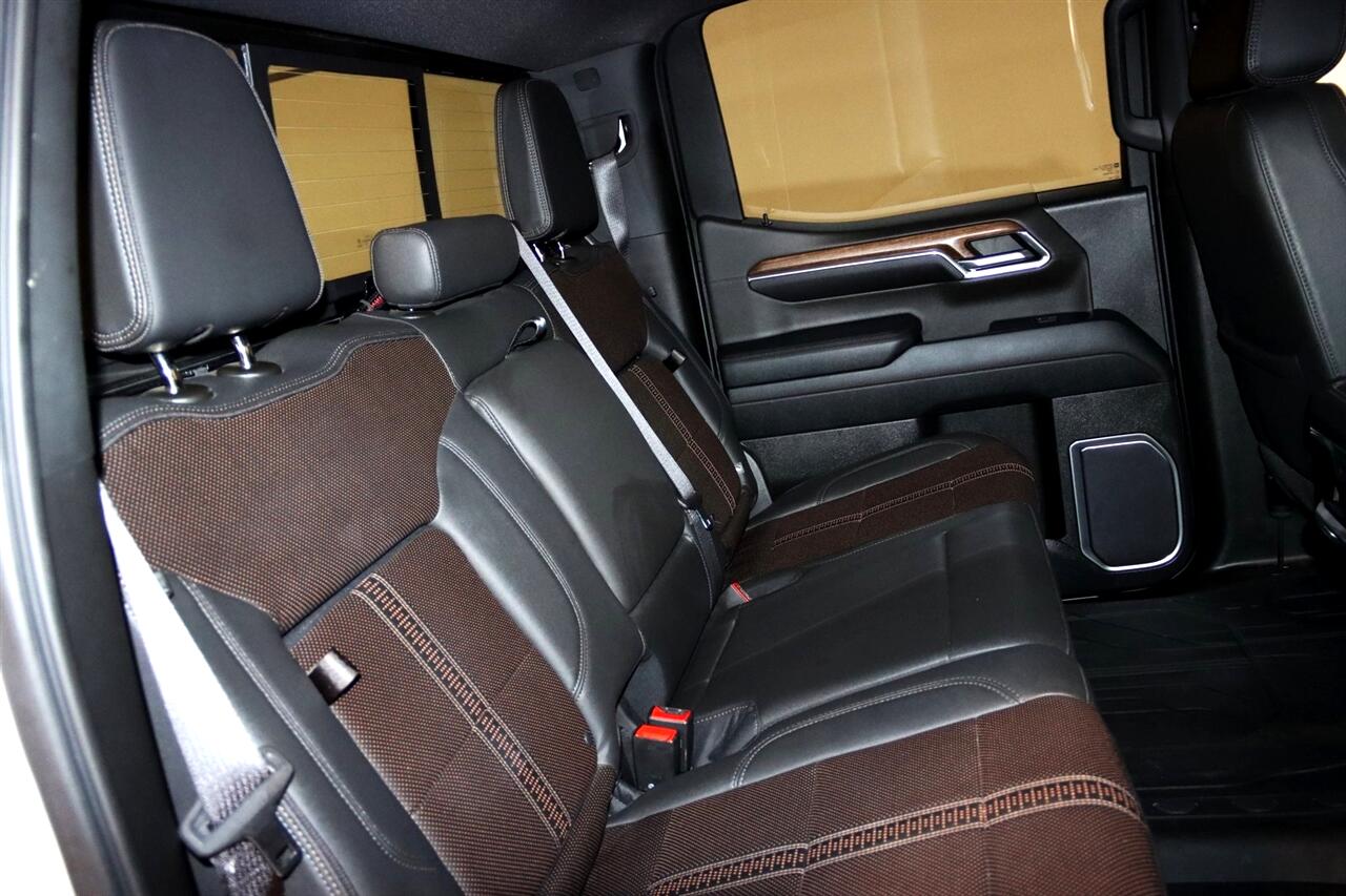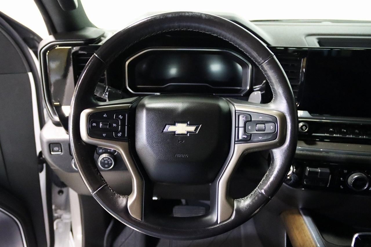 Bluetooth, Back Up Camera, Towing, Touch Screen, 10-Way Power Driver Seat w/Lumbar, 10-Way Power Passenger Seat Adjuster w/Lumbar, 12.3" Multicolor Reconfigurable Digital Display, 120-Volt Bed Mounted Power Outlet, 120-Volt Instrument Panel Power Outlet, 170 Amp Alternator, 2 USB Data Ports, 2nd Row Heated Outboard Seats, 3.23 Rear Axle Ratio, 4-Wheel Disc Brakes, 7 Speakers, ABS brakes, Air Conditioning, Alloy wheels, AM/FM radio: SiriusXM with 360L, Apple CarPlay/Android Auto, Auto High-beam Headlights, Auto-dimming door mirrors, Auto-Dimming Inside Rear-View Mirror, Auto-dimming Rear-View mirror, Auto-Locking Rear Differential, Automatic Emergency Braking, Automatic temperature control, Bed View Camera, Bluetooth® For Phone, Body-Color Painted Mirror Caps, Bodyside moldings, Brake assist, Bumpers: body-color, Chevrolet Connected Access Capable, Chevytec Spray-On Black Bedliner, Chrome Assist Steps, Chrome Recovery Hooks, Color-Keyed Carpeting Floor Covering, Compass, Deep-Tinted Glass, Delay-off headlights, Driver door bin, Driver Memory, Driver vanity mirror, Dual Exhaust w/Polished Outlets, Dual front impact airbags, Dual front side impact airbags, Dual Rear USB Ports (Charge Only), Electric Rear-Window Defogger, Electrical Steering Column Lock, Electronic Cruise Control, Electronic Stability Control, Electronic Transmission Range Selector Shifter, Floor Mounted Center Console, Following Distance Indicator, Forward Collision Alert, Front anti-roll bar, Front Bucket Seats, Front Carpeted Floor Mats, Front Center Armrest, Front dual zone A/C, Front fog lights, Front LED Fog Lamps, Front Pedestrian Braking, Front Rainsensing Wipers, Front reading lights, Front wheel independent suspension, Fully automatic headlights, Garage door transmitter, Genuine wood console insert, Genuine wood dashboard insert, Genuine wood door panel insert, HD Surround Vision, Heated door mirrors, Heated Driver & Front Outboard Passenger Seats, Heated front seats, Heated rear seats, Heated Steering Wheel, Heated steering wheel, High Capacity Suspension Package, Hitch Guidance, Hitch Guidance w/Hitch View, Illuminated entry, Integrated Trailer Brake Controller, IntelliBeam Automatic High Beam On/Off, Keyless Open & Start, Lane Keep Assist w/Lane Departure Warning, LED Cargo Area Lighting, Low tire pressure warning, Memory seat, Occupant sensing airbag, OnStar & Chevrolet Connected Services Capable, Outside Heated Power-Adjustable Mirrors, Outside temperature display, Overhead airbag, Overhead console, Panic alarm, Passenger door bin, Passenger vanity mirror, Perforated Leather Seat Trim, Perimeter Lighting, Power door mirrors, Power driver seat, Power Front Passenger Windows w/Express Up/Down, Power Front Windows w/Driver Express Up/Down, Power passenger seat, Power Rear Windows w/Express Down, Power Sliding Rear Window w/Rear Defogger, Power steering, Power Tailgate, Power Tilt & Telescoping Steering Column, Power windows, Premium audio system: Chevrolet Infotainment 3 Premium, Premium Bose 7-Speaker Sound System, Radio data system, Radio: Chevrolet Infotainment 3 Premium System, Rain sensing wipers, Rear Carpeted Floor Mats, Rear Cross Traffic Alert-Braking, Rear Pedestrian Alert, Rear reading lights, Rear seat center armrest, Rear step bumper, Rear Wheelhouse Liners, Rear window defroster, Remote keyless entry, Remote Vehicle Starter System, Safety Alert Seat, Security system, SiriusXM w/360L, Speed control, Speed-sensing steering, Split folding rear seat, Standard Tailgate, Steering Wheel Audio Controls, Steering wheel mounted audio controls, Tachometer, Telescoping steering wheel, Theft Deterrent System (Unauthorized Entry), Tilt steering wheel, Traction control, Trailer Camera Provisions, Trailer Side Blind Zone Alert, Trailering App, Trailering Package, Trip computer, Ultrasonic Front & Rear Park Assist, Universal Home Remote, Up-Level Rear Seat w/Storage Package, Variably intermittent wipers, Ventilated Driver & Front Passenger Seats, Ventila