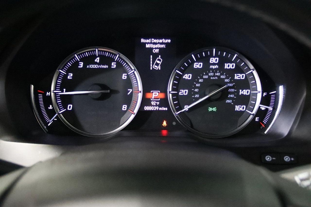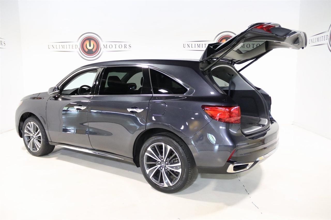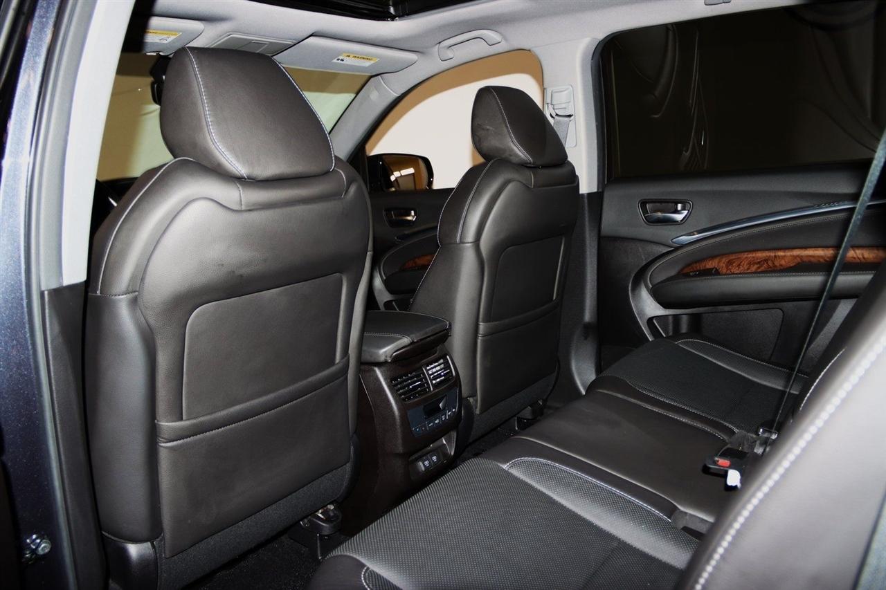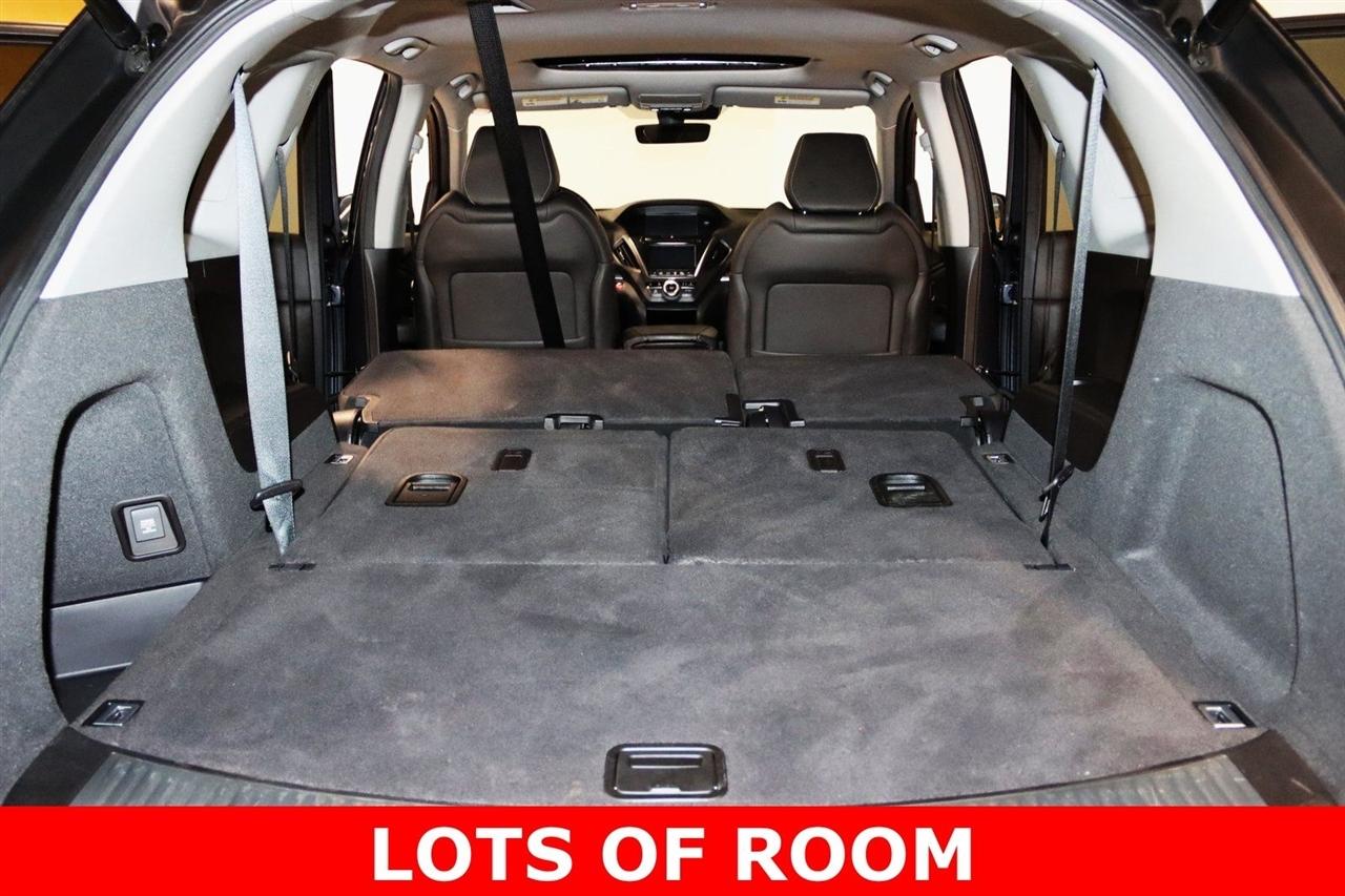 Navigation, Bluetooth, Back Up Camera, Sun/Moon Roof, 3rd Row, Heated Seats, Touch Screen, 10 Speakers, 3rd row seats: bench, 4-Wheel Disc Brakes, 4.33 Axle Ratio, ABS brakes, Air Conditioning, Alloy wheels, AM/FM radio: SiriusXM, Anti-whiplash front head restraints, Apple CarPlay/Android Auto, Audio memory, Auto High-beam Headlights, Auto tilt-away steering wheel, Auto-dimming Rear-View mirror, Automatic temperature control, Brake assist, Bumpers: body-color, CD player, Compass, Delay-off headlights, Driver door bin, Driver vanity mirror, Dual front impact airbags, Dual front side impact airbags, Electronic Stability Control, Emergency communication system, Exterior Parking Camera Rear, Four wheel independent suspension, Front anti-roll bar, Front Bucket Seats, Front Center Armrest, Front dual zone A/C, Front reading lights, Garage door transmitter: HomeLink, Genuine wood console insert, Genuine wood dashboard insert, Genuine wood door panel insert, Heated door mirrors, Heated front seats, Heated Front Sport Seats, HVAC memory, Illuminated entry, Knee airbag, Lane departure: Lane Keeping Assist System (LKAS) active, Leather steering wheel, Low tire pressure warning, Memory seat, Navigation System, Occupant sensing airbag, Outside temperature display, Overhead airbag, Overhead console, Panic alarm, Passenger door bin, Passenger vanity mirror, Perforated Premium Leather w/Contrast Stitching, Power door mirrors, Power driver seat, Power Liftgate, Power moonroof, Power passenger seat, Power steering, Power windows, Premium audio system: Acura/ELS Surround, Radio data system, Radio: Acura/ELS Studio Premium Audio System, Rain sensing wipers, Rear air conditioning, Rear anti-roll bar, Rear reading lights, Rear seat center armrest, Rear window defroster, Rear window wiper, Remote keyless entry, Security system, Speed control, Speed-sensing steering, Speed-Sensitive Wipers, Split folding rear seat, Spoiler, Steering wheel memory, Steering wheel mounted audio controls, Tachometer, Telescoping steering wheel, Tilt steering wheel, Traction control, Trip computer, Turn signal indicator mirrors, Variably intermittent wipers, Wheels: 20" x 8" Shark Gray Twisted 10-Spoke. 19/26 City/Highway MPG Odometer is 19230 miles below market average!
