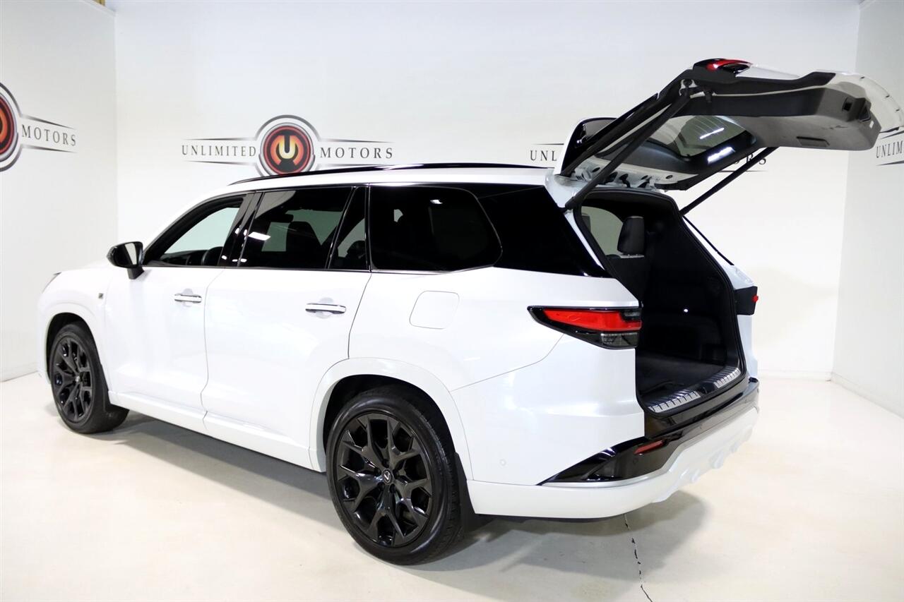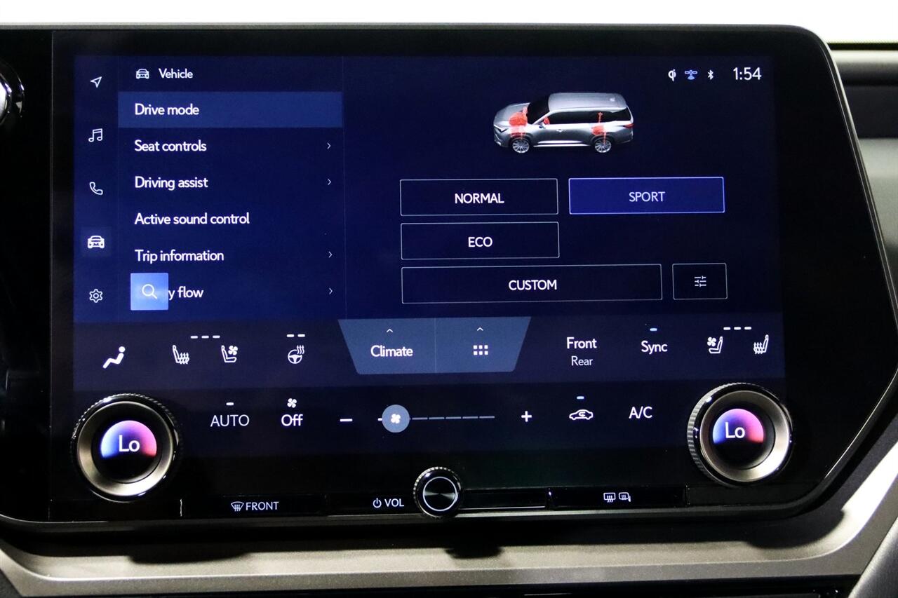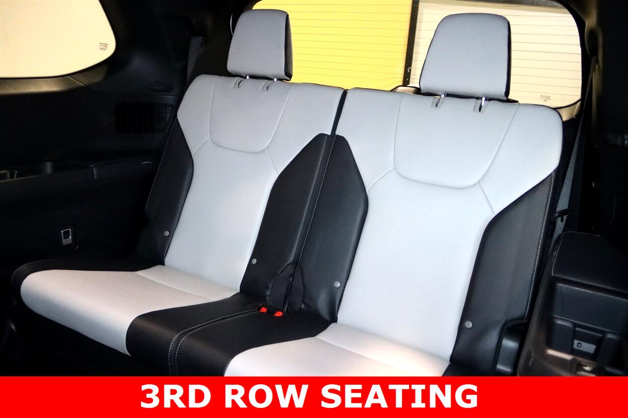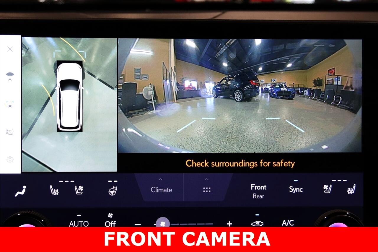 Navigation, Bluetooth, Back Up Camera, 3rd Row, Heated Seats, 12 Speakers, 3rd row seats: split-bench, 4-Wheel Disc Brakes, ABS brakes, Active Cruise Control, Adaptive suspension, Air Conditioning, Alloy wheels, AM/FM radio, Apple CarPlay/Android Auto, Auto High-beam Headlights, Auto tilt-away steering wheel, Auto-dimming door mirrors, Auto-dimming Rear-View mirror, Automatic temperature control, Brake assist, Bumpers: body-color, Delay-off headlights, Driver door bin, Driver vanity mirror, Dual front impact airbags, Dual front side impact airbags, Electronic Stability Control, Emergency communication system: Safety Connect (10-year trial), Exterior Parking Camera Rear, Four wheel independent suspension, Front anti-roll bar, Front Bucket Seats, Front Center Armrest, Front dual zone A/C, Front fog lights, Front reading lights, Fully automatic headlights, Garage door transmitter: HomeLink, Heated & Ventilated Front Captain Seats, Heated door mirrors, Heated front seats, Heated rear seats, Illuminated entry, Knee airbag, Leather Shift Knob, Leather steering wheel, Low tire pressure warning, Memory seat, Navigation System, Navigation system: Drive Connect Cloud Navigation (subscription required), NuLuxe Perforated Seat Trim, Occupant sensing airbag, Outside temperature display, Overhead airbag, Panic alarm, Passenger door bin, Passenger vanity mirror, Power door mirrors, Power driver seat, Power Liftgate, Power passenger seat, Power steering, Power windows, Radio data system, Radio: Lexus Interface, Rain sensing wipers, Rear air conditioning, Rear anti-roll bar, Rear reading lights, Rear window defroster, Rear window wiper, Reclining 3rd row seat, Remote keyless entry, Security system, Speed control, Speed-sensing steering, Split folding rear seat, Spoiler, Steering wheel memory, Steering wheel mounted audio controls, TBD Axle Ratio, Telescoping steering wheel, Tilt steering wheel, Traction control, Trip computer, Turn signal indicator mirrors, Variably intermittent wipers, Ventilated front seats, Ventilated rear seats, Wheels: 22" F SPORT. CARFAX One-Owner. 27/28 City/Highway MPG Priced below KBB Fair Purchase Price!