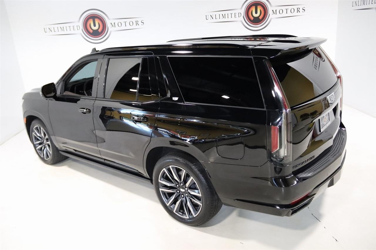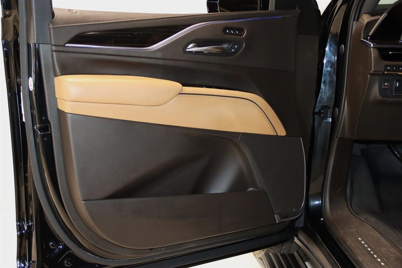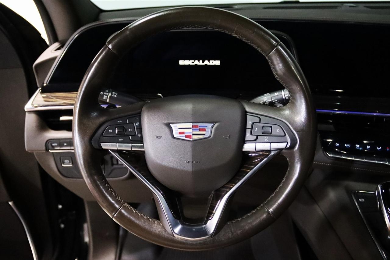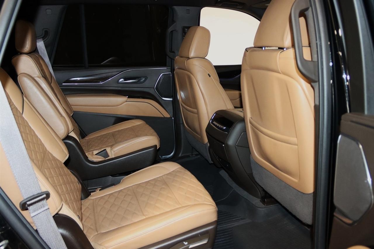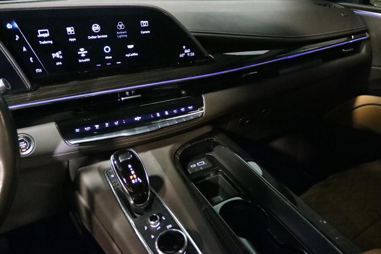 Navigation, Bluetooth, Back Up Camera, Panoramic Roof, 3rd Row, Heated Seats, Touch Screen, 16.9" Diagonal OLED Infotainment Screen, 19 Speakers, 2-Presets Memory For Driver Seat Adjuster, 3.23 Axle Ratio, 3rd row seats: split-bench, 4-Wheel Disc Brakes, 8-Way Power Driver Seat Adjuster, 8-Way Power Front Passenger Seat Adjuster, ABS brakes, Adaptive Cruise Control, Adaptive suspension, Air Conditioning, Air Ride Adaptive Suspension, AKG Studio 19-Speaker Audio System, Alloy wheels, AM/FM radio: SiriusXM with 360L, Apple CarPlay/Android Auto, Audio memory, Auto High-beam Headlights, Auto tilt-away steering wheel, Auto-dimming door mirrors, Auto-dimming Rear-View mirror, Automatic Seat Belt Tightening, Automatic Stop/Start, Automatic temperature control, Body-Color Door Handles, Brake assist, Bumpers: body-color, Compass, Delay-off headlights, Door Lock & Latch Shields, Driver door bin, Driver vanity mirror, Dual front impact airbags, Dual front side impact airbags, Electronic Limited-Slip Differential, Electronic Stability Control, Emergency communication system: OnStar and Cadillac connected services capable, Enhanced Automatic Emergency Braking, Enhanced Automatic Parking Assist, Four wheel independent suspension, Front anti-roll bar, Front Bucket Seats, Front Center Armrest w/Storage, Front dual zone A/C, Front reading lights, Fully automatic headlights, Garage door transmitter, Glass Breakage Sensor, Gloss Black Escalade Nameplate (LPO), HD Radio, Heads-Up Display, Heated & Ventilated Driver & Front Passenger Seats, Heated door mirrors, Heated Driver & Front Passenger Seats, Heated front seats, Heated rear seats, Heated steering wheel, Hitch Guidance w/Hitch View, Illuminated entry, Illuminating Front & Rear Sill Plates, Integrated Trailer Brake Controller, Leather Seating Surfaces w/Precision Perf Inserts, Leather steering wheel, Low tire pressure warning, Magnetic Ride Control Suspension, Memory seat, Navigation System, Not Equipped w/4-Way Driver & Fr Pass Pwr Lumbar, Not Equipped w/Steering Column Lock, Not Equipped w/Super Cruise, Occupant sensing airbag, Outside temperature display, Overhead airbag, Overhead console, Panic alarm, Passenger door bin, Passenger vanity mirror, Power door mirrors, Power driver seat, Power Liftgate, Power moonroof, Power Panoramic Tilt-Sliding Sunroof, Power passenger seat, Power steering, Power windows, Power-Retractable Assist Steps, Preferred Equipment Group 1SC, Radio data system, Radio: AM/FM/SiriusXM w/Navigation, Rain sensing wipers, Rear air conditioning, Rear anti-roll bar, Rear Camera Mirror, Rear Camera Mirror Washer, Rear Cross Traffic Alert, Rear reading lights, Rear window defroster, Rear window wiper, Reconfigurable Full-Color Head-Up Display, Remote keyless entry, Reverse Automatic Braking, Roof rack: rails only, Running Board Assist Steps, Security system, SiriusXM w/360L, Smart Trailer Integration Indicator, Soft Closing Front & Rear Doors, Speed control, Split folding rear seat, Spoiler, Start/Stop System Disable Button, Steering wheel memory, Steering wheel mounted audio controls, Super Cruise, Tachometer, Teen Driver, Telescoping steering wheel, Theft-Deterrent Alarm System, Tilt steering wheel, Touring Package, Traction control, Trailer Side Blind Zone Alert, Trip computer, Turn signal indicator mirrors, Variably intermittent wipers, Vehicle Inclination Sensor, Vehicle Interior Movement Sensor, Ventilated front seats, Voltmeter, Wheels: 22" 12-Spoke Polished Alloy, Wireless Apple CarPlay/Wireless Android Auto.