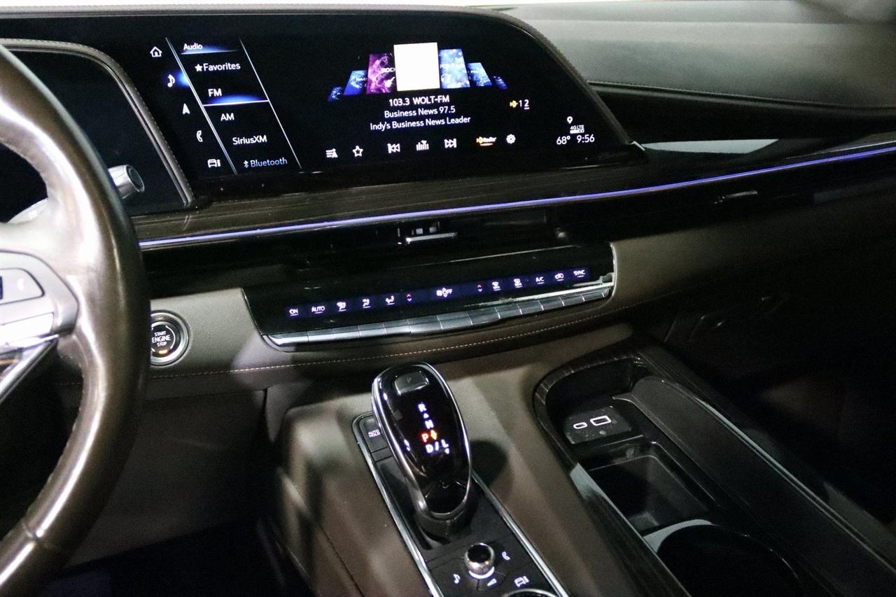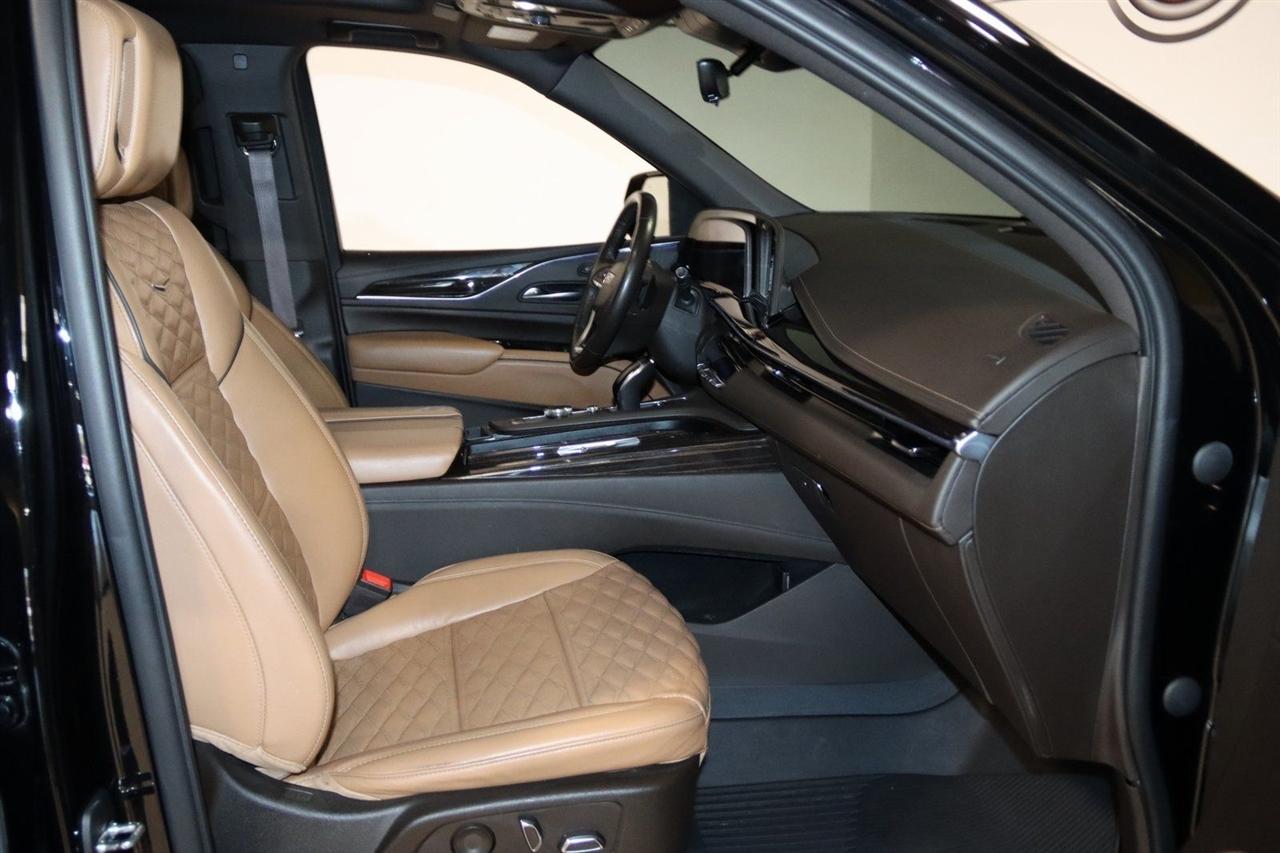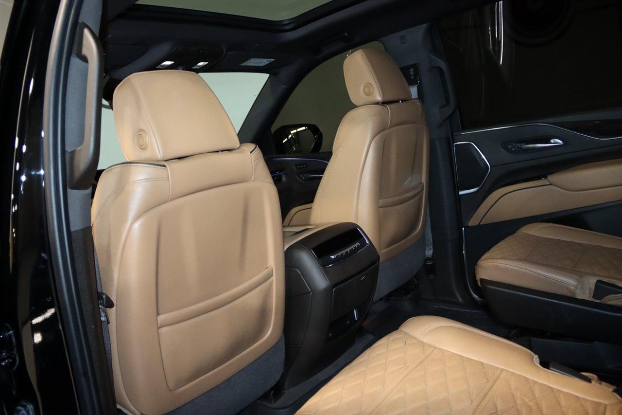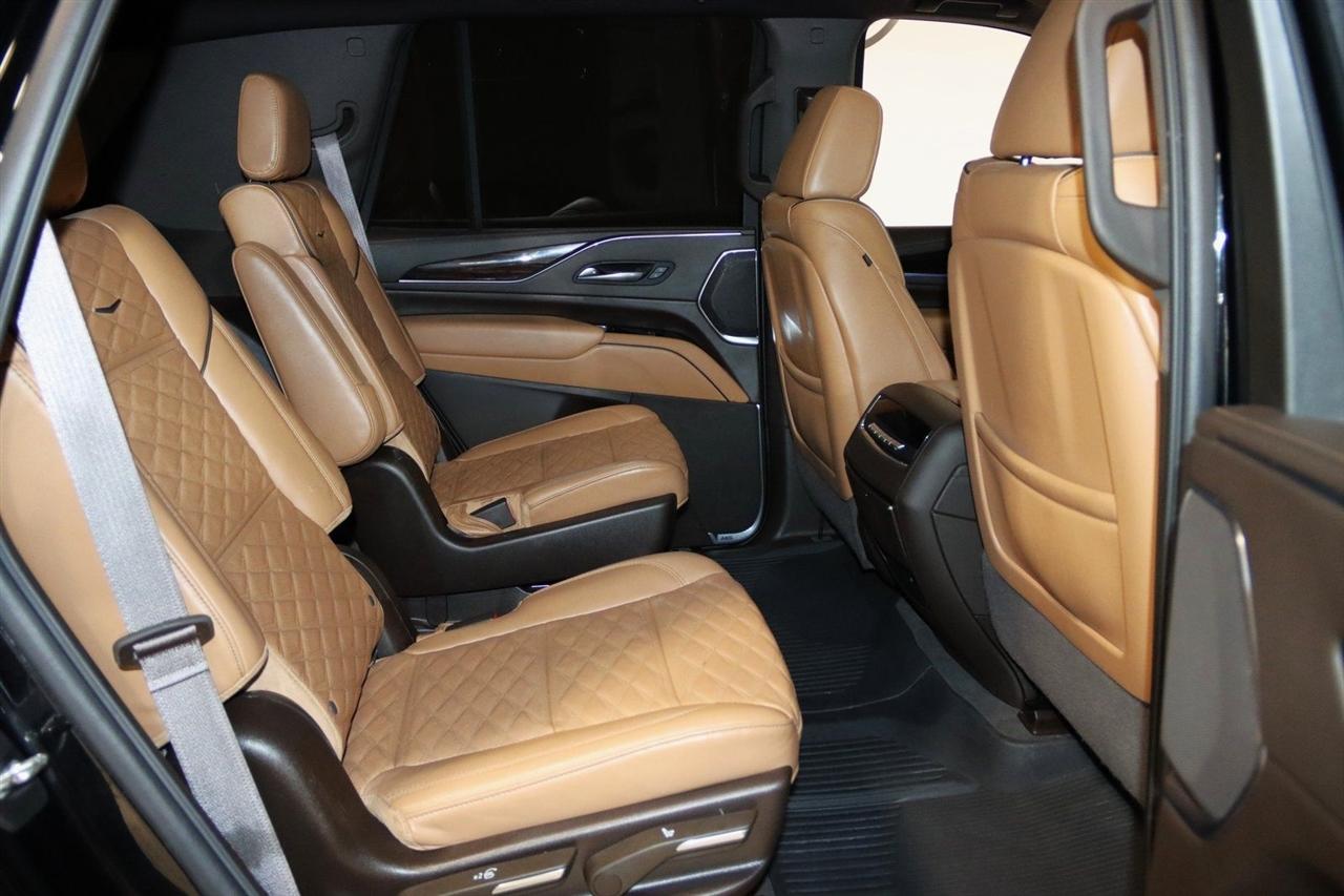 Navigation, Bluetooth, Back Up Camera, Panoramic Roof, 3rd Row, Heated Seats, Touch Screen, 16.9" Diagonal OLED Infotainment Screen, 19 Speakers, 2-Presets Memory For Driver Seat Adjuster, 3.23 Axle Ratio, 3rd row seats: split-bench, 4-Wheel Disc Brakes, 8-Way Power Driver Seat Adjuster, 8-Way Power Front Passenger Seat Adjuster, ABS brakes, Adaptive Cruise Control, Adaptive suspension, Air Conditioning, Air Ride Adaptive Suspension, AKG Studio 19-Speaker Audio System, Alloy wheels, AM/FM radio: SiriusXM with 360L, Apple CarPlay/Android Auto, Audio memory, Auto High-beam Headlights, Auto tilt-away steering wheel, Auto-dimming door mirrors, Auto-dimming Rear-View mirror, Automatic Seat Belt Tightening, Automatic Stop/Start, Automatic temperature control, Body-Color Door Handles, Brake assist, Bumpers: body-color, Compass, Delay-off headlights, Door Lock & Latch Shields, Driver door bin, Driver vanity mirror, Dual front impact airbags, Dual front side impact airbags, Electronic Limited-Slip Differential, Electronic Stability Control, Emergency communication system: OnStar and Cadillac connected services capable, Enhanced Automatic Emergency Braking, Enhanced Automatic Parking Assist, Four wheel independent suspension, Front anti-roll bar, Front Bucket Seats, Front Center Armrest w/Storage, Front dual zone A/C, Front reading lights, Fully automatic headlights, Garage door transmitter, Glass Breakage Sensor, Gloss Black Escalade Nameplate (LPO), HD Radio, Heads-Up Display, Heated & Ventilated Driver & Front Passenger Seats, Heated door mirrors, Heated Driver & Front Passenger Seats, Heated front seats, Heated rear seats, Heated steering wheel, Hitch Guidance w/Hitch View, Illuminated entry, Illuminating Front & Rear Sill Plates, Integrated Trailer Brake Controller, Leather Seating Surfaces w/Precision Perf Inserts, Leather steering wheel, Low tire pressure warning, Magnetic Ride Control Suspension, Memory seat, Navigation System, Not Equipped w/4-Way Driver & Fr Pass Pwr Lumbar, Not Equipped w/Steering Column Lock, Not Equipped w/Super Cruise, Occupant sensing airbag, Outside temperature display, Overhead airbag, Overhead console, Panic alarm, Passenger door bin, Passenger vanity mirror, Power door mirrors, Power driver seat, Power Liftgate, Power moonroof, Power Panoramic Tilt-Sliding Sunroof, Power passenger seat, Power steering, Power windows, Power-Retractable Assist Steps, Preferred Equipment Group 1SC, Radio data system, Radio: AM/FM/SiriusXM w/Navigation, Rain sensing wipers, Rear air conditioning, Rear anti-roll bar, Rear Camera Mirror, Rear Camera Mirror Washer, Rear Cross Traffic Alert, Rear reading lights, Rear window defroster, Rear window wiper, Reconfigurable Full-Color Head-Up Display, Remote keyless entry, Reverse Automatic Braking, Roof rack: rails only, Running Board Assist Steps, Security system, SiriusXM w/360L, Smart Trailer Integration Indicator, Soft Closing Front & Rear Doors, Speed control, Split folding rear seat, Spoiler, Start/Stop System Disable Button, Steering wheel memory, Steering wheel mounted audio controls, Super Cruise, Tachometer, Teen Driver, Telescoping steering wheel, Theft-Deterrent Alarm System, Tilt steering wheel, Touring Package, Traction control, Trailer Side Blind Zone Alert, Trip computer, Turn signal indicator mirrors, Variably intermittent wipers, Vehicle Inclination Sensor, Vehicle Interior Movement Sensor, Ventilated front seats, Voltmeter, Wheels: 22" 12-Spoke Polished Alloy, Wireless Apple CarPlay/Wireless Android Auto. Priced below KBB Fair Purchase Price!