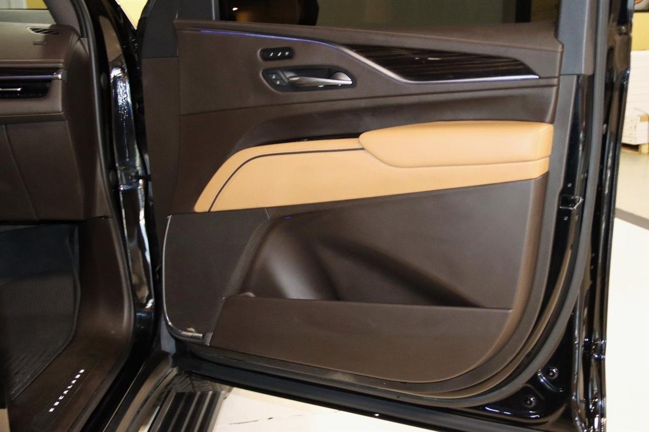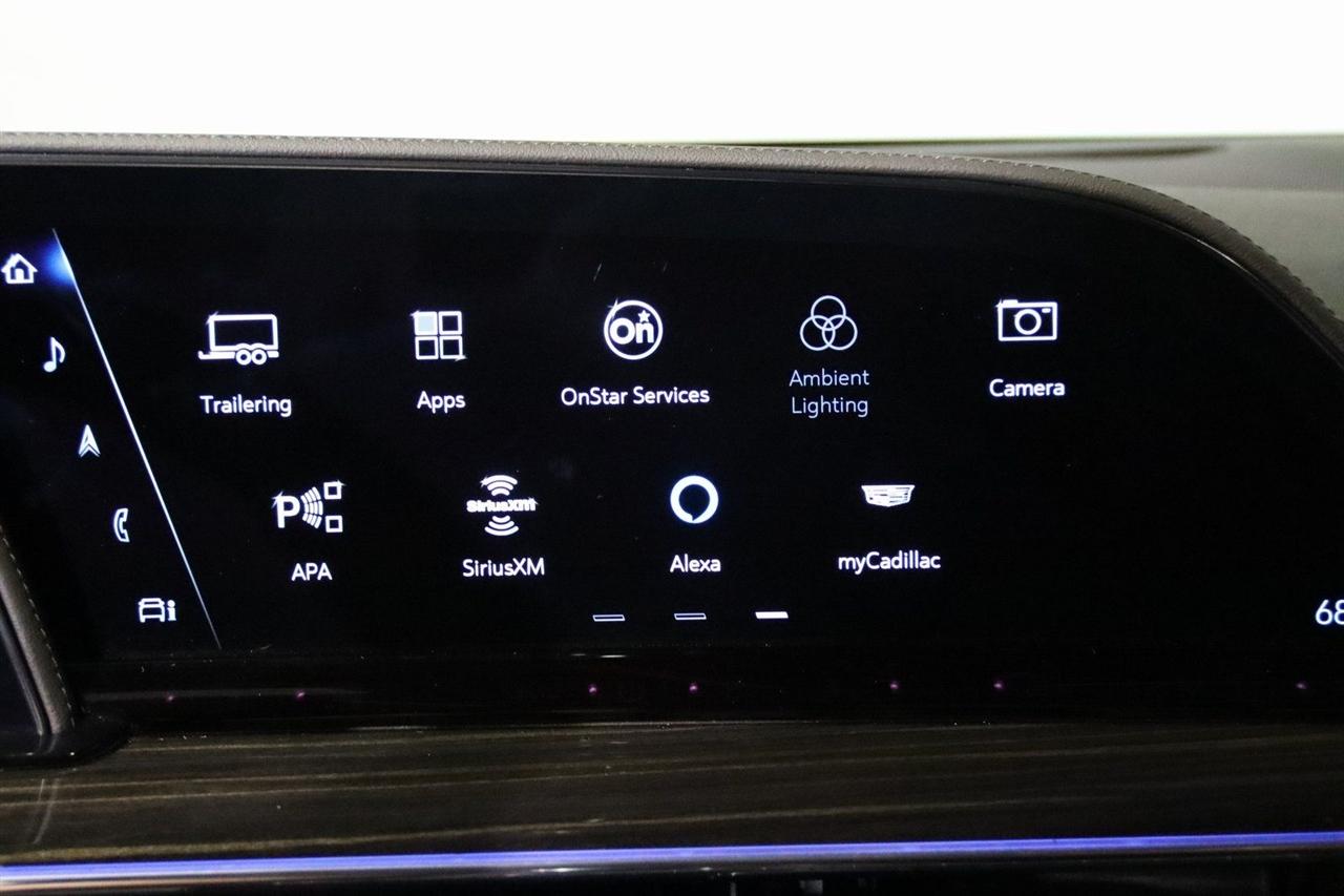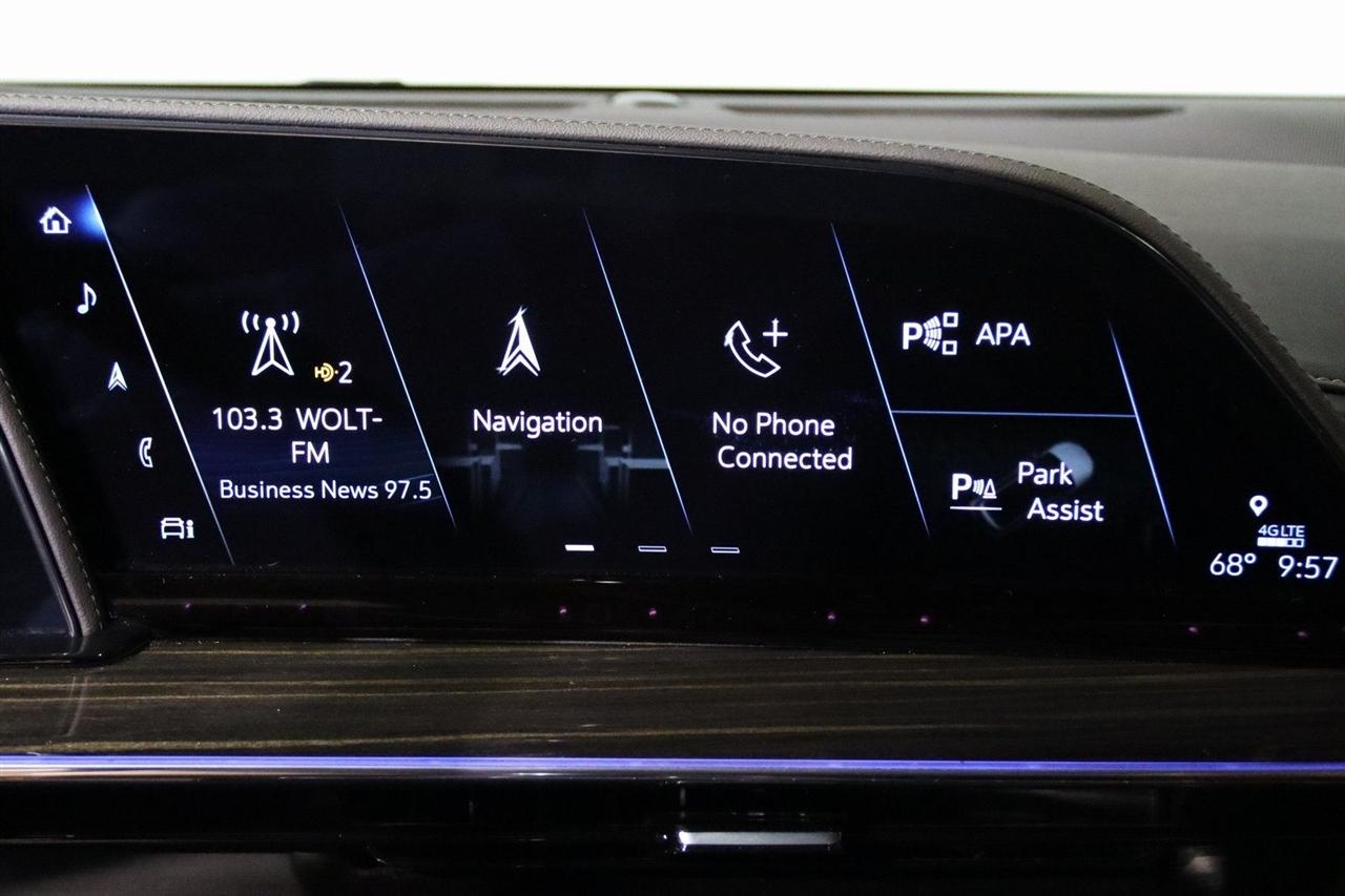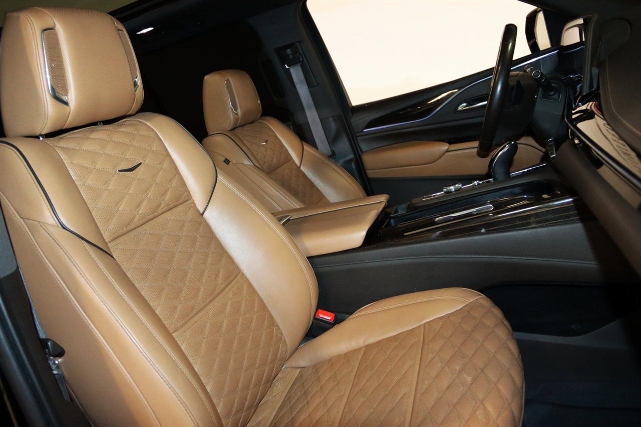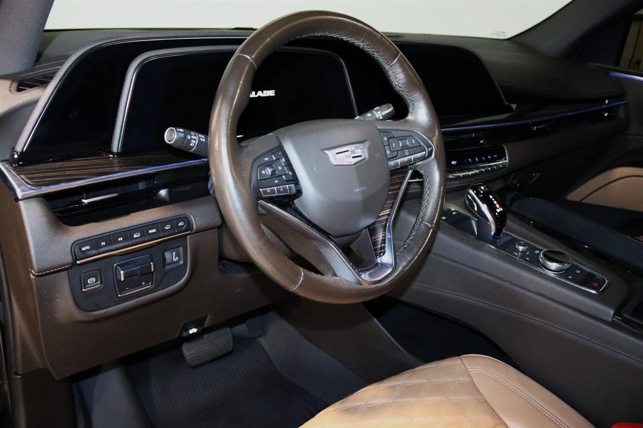 Navigation, Bluetooth, Back Up Camera, Panoramic Roof, 3rd Row, Heated Seats, Touch Screen, 16.9" Diagonal OLED Infotainment Screen, 19 Speakers, 2-Presets Memory For Driver Seat Adjuster, 3.23 Axle Ratio, 3rd row seats: split-bench, 4-Wheel Disc Brakes, 8-Way Power Driver Seat Adjuster, 8-Way Power Front Passenger Seat Adjuster, ABS brakes, Adaptive Cruise Control, Adaptive suspension, Air Conditioning, Air Ride Adaptive Suspension, AKG Studio 19-Speaker Audio System, Alloy wheels, AM/FM radio: SiriusXM with 360L, Apple CarPlay/Android Auto, Audio memory, Auto High-beam Headlights, Auto tilt-away steering wheel, Auto-dimming door mirrors, Auto-dimming Rear-View mirror, Automatic Seat Belt Tightening, Automatic Stop/Start, Automatic temperature control, Body-Color Door Handles, Brake assist, Bumpers: body-color, Compass, Delay-off headlights, Door Lock & Latch Shields, Driver door bin, Driver vanity mirror, Dual front impact airbags, Dual front side impact airbags, Electronic Limited-Slip Differential, Electronic Stability Control, Emergency communication system: OnStar and Cadillac connected services capable, Enhanced Automatic Emergency Braking, Enhanced Automatic Parking Assist, Four wheel independent suspension, Front anti-roll bar, Front Bucket Seats, Front Center Armrest w/Storage, Front dual zone A/C, Front reading lights, Fully automatic headlights, Garage door transmitter, Glass Breakage Sensor, Gloss Black Escalade Nameplate (LPO), HD Radio, Heads-Up Display, Heated & Ventilated Driver & Front Passenger Seats, Heated door mirrors, Heated Driver & Front Passenger Seats, Heated front seats, Heated rear seats, Heated steering wheel, Hitch Guidance w/Hitch View, Illuminated entry, Illuminating Front & Rear Sill Plates, Integrated Trailer Brake Controller, Leather Seating Surfaces w/Precision Perf Inserts, Leather steering wheel, Low tire pressure warning, Magnetic Ride Control Suspension, Memory seat, Navigation System, Not Equipped w/4-Way Driver & Fr Pass Pwr Lumbar, Not Equipped w/Steering Column Lock, Not Equipped w/Super Cruise, Occupant sensing airbag, Outside temperature display, Overhead airbag, Overhead console, Panic alarm, Passenger door bin, Passenger vanity mirror, Power door mirrors, Power driver seat, Power Liftgate, Power moonroof, Power Panoramic Tilt-Sliding Sunroof, Power passenger seat, Power steering, Power windows, Power-Retractable Assist Steps, Preferred Equipment Group 1SC, Radio data system, Radio: AM/FM/SiriusXM w/Navigation, Rain sensing wipers, Rear air conditioning, Rear anti-roll bar, Rear Camera Mirror, Rear Camera Mirror Washer, Rear Cross Traffic Alert, Rear reading lights, Rear window defroster, Rear window wiper, Reconfigurable Full-Color Head-Up Display, Remote keyless entry, Reverse Automatic Braking, Roof rack: rails only, Running Board Assist Steps, Security system, SiriusXM w/360L, Smart Trailer Integration Indicator, Soft Closing Front & Rear Doors, Speed control, Split folding rear seat, Spoiler, Start/Stop System Disable Button, Steering wheel memory, Steering wheel mounted audio controls, Super Cruise, Tachometer, Teen Driver, Telescoping steering wheel, Theft-Deterrent Alarm System, Tilt steering wheel, Touring Package, Traction control, Trailer Side Blind Zone Alert, Trip computer, Turn signal indicator mirrors, Variably intermittent wipers, Vehicle Inclination Sensor, Vehicle Interior Movement Sensor, Ventilated front seats, Voltmeter, Wheels: 22" 12-Spoke Polished Alloy, Wireless Apple CarPlay/Wireless Android Auto. Priced below KBB Fair Purchase Price!