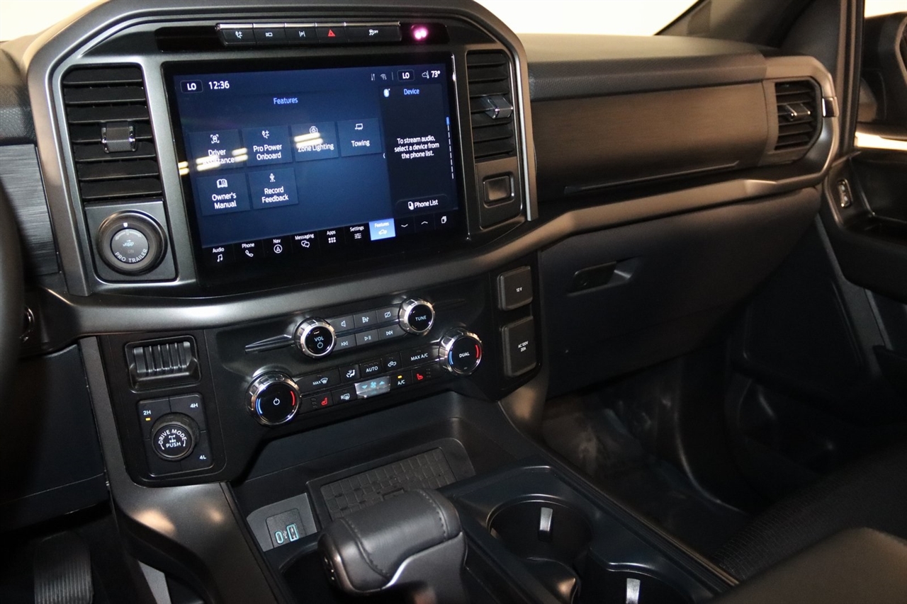 Navigation, Bluetooth, Back Up Camera, Towing, Heated Seats, Touch Screen, 4-Wheel Disc Brakes, 400W Cab & Bed Outlets, 6 Speakers, 6" Black Running Boards, ABS brakes, Adaptive Cruise Control w/Stop & Go, Air Conditioning, AM/FM radio: SiriusXM with 360L, Auto High-beam Headlights, Auto-Dimming Rear-View Mirror, Auto-dimming Rear-View mirror, Automatic temperature control, Black Exterior Badging, Black Grille, Body-Color Front & Rear Bumpers, Brake assist, Bumpers: chrome, Cloth 40/20/40 Front Seat, Cloth 40/Console/40 Front Seats, Compass, Console Worksurface, Dark Interior Appliques, Delay-off headlights, Driver door bin, Driver vanity mirror, Dual front impact airbags, Dual front side impact airbags, Electronic Locking w/3.73 Axle Ratio, Electronic Stability Control, Emergency communication system: SYNC 4 911 Assist, Equipment Group 302A Mid, Floor Shifter, Ford BlueCruise Equipped (90-Day Trial), Front anti-roll bar, Front Center Armrest w/Storage, Front dual zone A/C, Front fog lights, Front reading lights, Front wheel independent suspension, Fully automatic headlights, Gray Box Side Decal, GVWR: 7,400 lbs Payload Package, Hard Folding Tonneau Pickup Box Cover, Heated door mirrors, Heated Front Seats, Illuminated entry, Intelligent Access w/Push Button Start, Low tire pressure warning, Mobile Office Package, Navigation System, Navigation system: Connected Navigation, Occupant sensing airbag, Outside temperature display, Overhead airbag, Overhead console, Panic alarm, Partitioned Lockable Rear Storage, Passenger door bin, Passenger vanity mirror, Power door mirrors, Power driver seat, Power Glass Heated Sideview Mirrors, Power steering, Power windows, Power-Sliding Rear Window, Radio data system, Radio: AM/FM SiriusXM w/360L, Rear reading lights, Rear step bumper, Rear window defroster, Remote keyless entry, Remote Start System w/Remote Tailgate Release, Security system, Speed control, Speed Sign Recognition, Split folding rear seat, Steering wheel mounted audio controls, SYNC 4 w/Enhanced Voice Recognition, Tachometer, Telescoping steering wheel, Tilt steering wheel, Tough Bed Spray-In Bedliner, Traction control, Trip computer, Unique Sport Cloth 40/Console/40 Front-Seats, Variably intermittent wipers, Voltmeter, Wheels: 20" Gloss Black Painted Aluminum, XLT Black Appearance Package. CARFAX One-Owner. Clean CARFAX. Odometer is 6314 miles below market average!