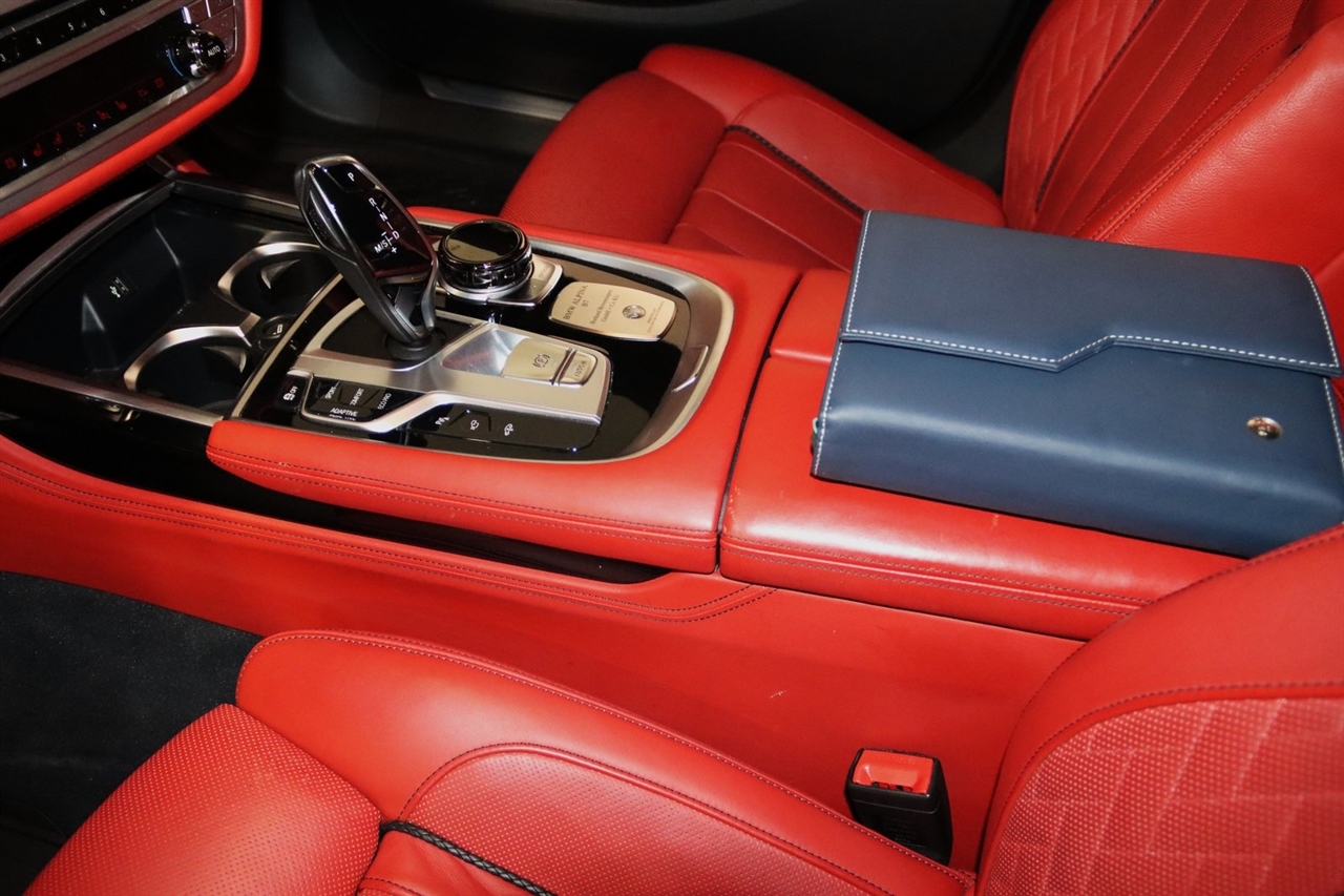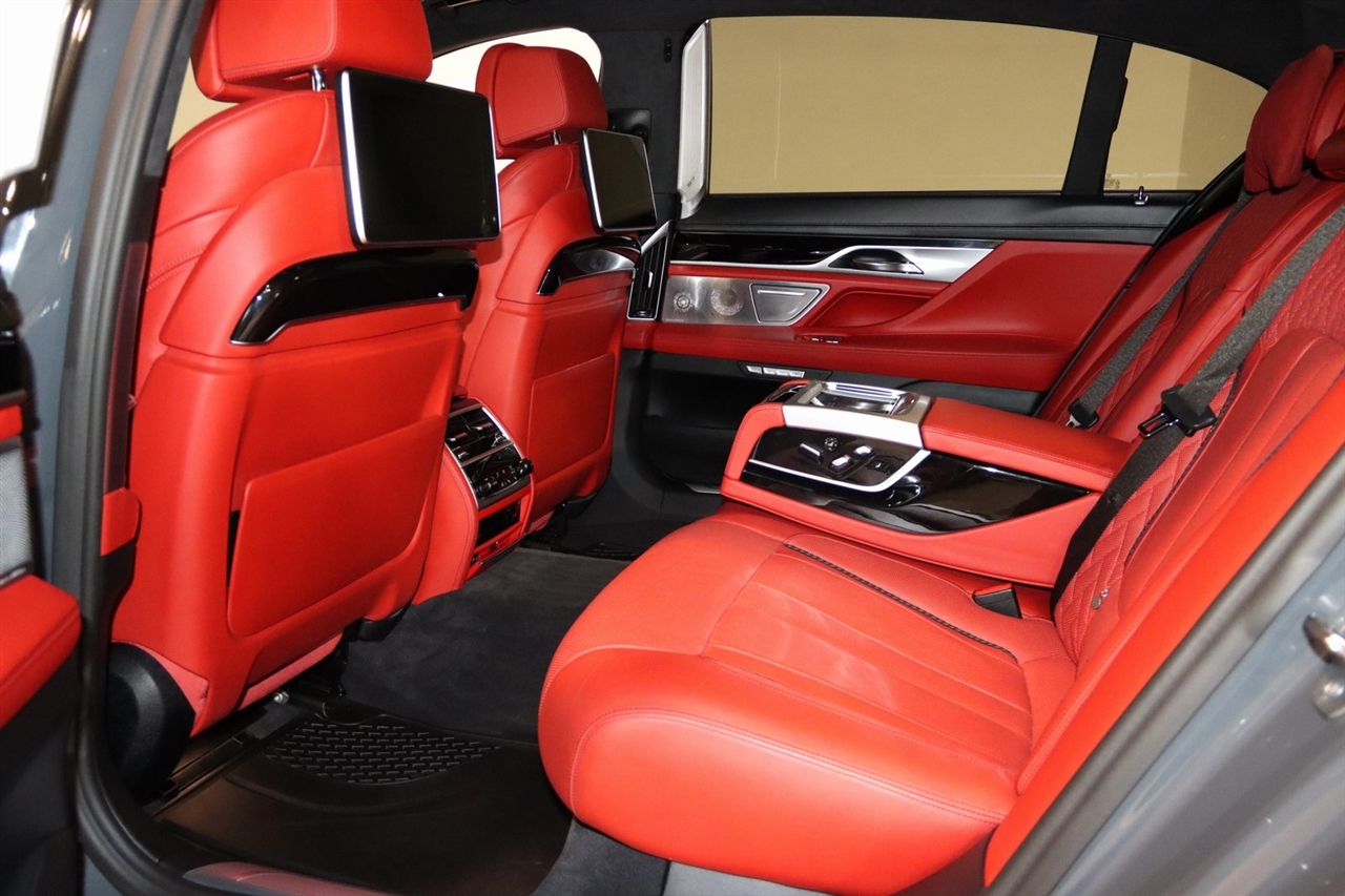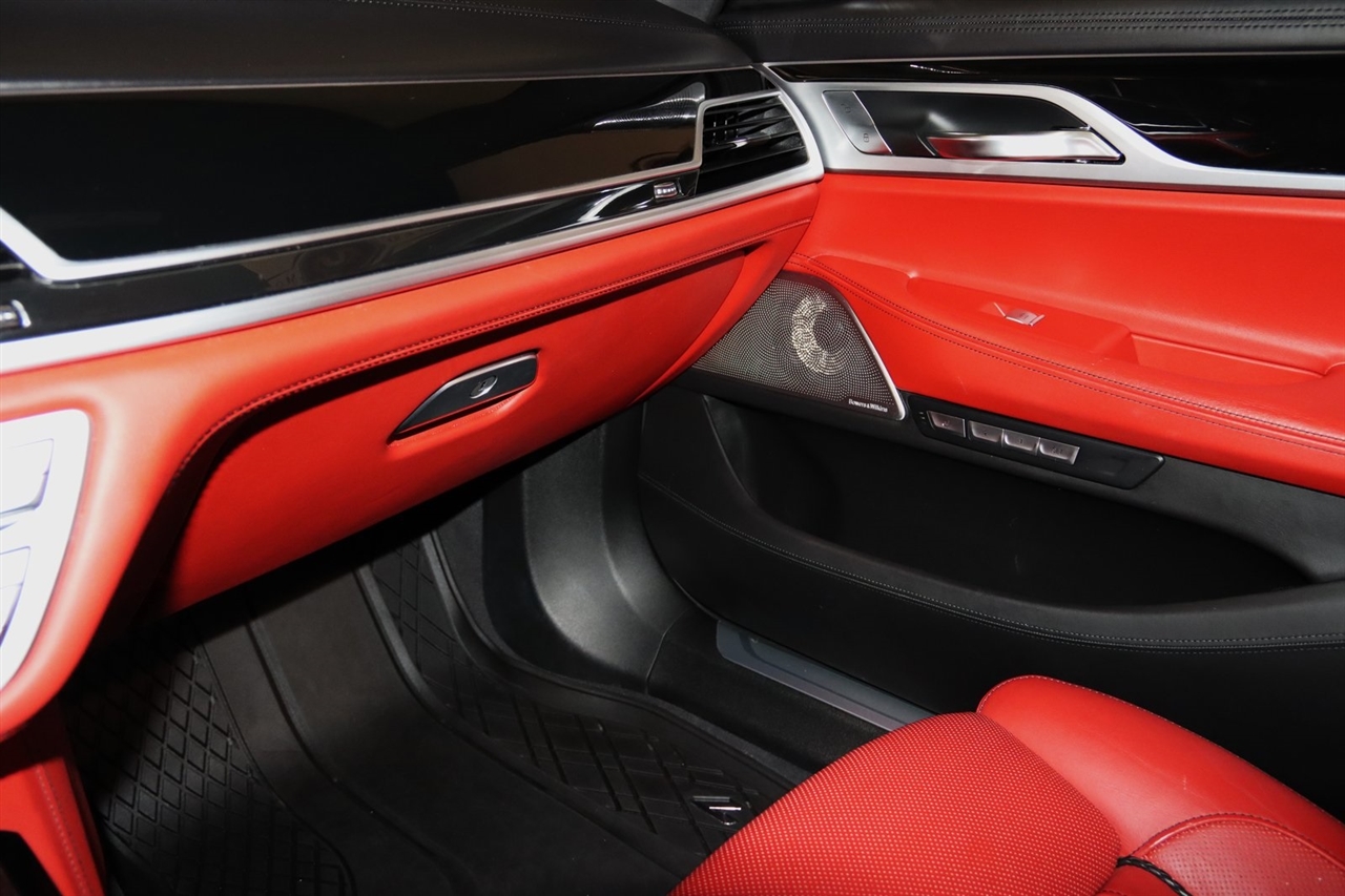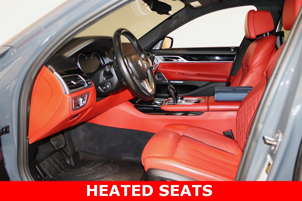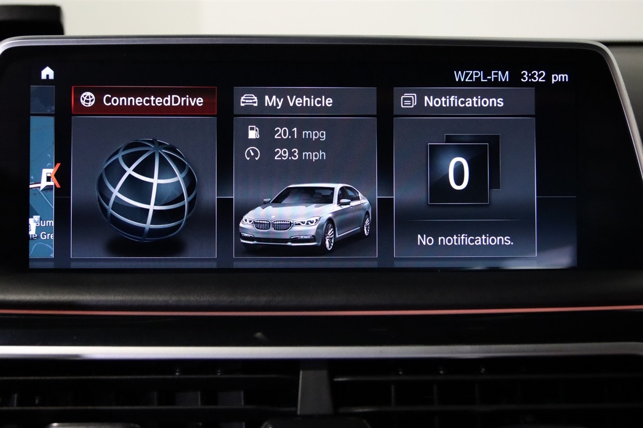Navigation, Bluetooth, Back Up Camera, Panoramic Roof, Heated Seats, 16 Speakers, 4-Wheel Disc Brakes, ABS brakes, Adaptive suspension, Air Conditioning, Alloy wheels, AM/FM radio, Anti-whiplash front head restraints, Auto High-beam Headlights, Auto tilt-away steering wheel, Auto-dimming door mirrors, Auto-dimming Rear-View mirror, Auto-leveling suspension, Automatic temperature control, Brake assist, Bumpers: body-color, CD player, Delay-off headlights, Door auto-latch, Driver door bin, Driver vanity mirror, Dual front impact airbags, Dual front side impact airbags, Electronic Stability Control, Emergency communication system: BMW Assist eCall, Exterior Parking Camera Rear, Four wheel independent suspension, Front & Rear Heated Seats, Front anti-roll bar, Front Bucket Seats, Front Center Armrest, Front dual zone A/C, Front fog lights, Front Massaging Seats, Front Multi-Contour Seats, Front reading lights, Front Ventilated Seats, Fully automatic headlights, Garage door transmitter, harman/kardon Surround Sound System, harman/kardon® Speakers, Head restraints memory, Heads-Up Display, Heated door mirrors, Heated front seats, Heated rear seats, Heated steering wheel, Illuminated entry, Knee airbag, Leather Shift Knob, Leather steering wheel, Low tire pressure warning, Memory seat, Navigation System, Occupant sensing airbag, Outside temperature display, Overhead airbag, Overhead console, Panic alarm, Passenger door bin, Passenger vanity mirror, Perforated Nappa Leather Upholstery, Power adjustable front head restraints, Power door mirrors, Power driver seat, Power moonroof, Power passenger seat, Power steering, Power windows, Radio data system, Radio: In Dash CD Player, Rain sensing wipers, Rear air conditioning, Rear anti-roll bar, Rear dual zone A/C, Rear reading lights, Rear seat center armrest, Rear Window Blind, Rear window defroster, Remote keyless entry, Security system, SiriusXM Satellite Radio, Speed control, Speed-sensing steering, Speed-Sensitive Wipers, Spoiler, Sport steering wheel, Steering wheel memory, Steering wheel mounted audio controls, Tachometer, Telescoping steering wheel, Tilt steering wheel, Traction control, Trip computer, Variably intermittent wipers, Ventilated front seats, Weather band radio, Wheels: 20" x 8.5" Fr & 20" x 10" Rr.