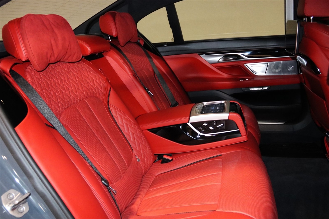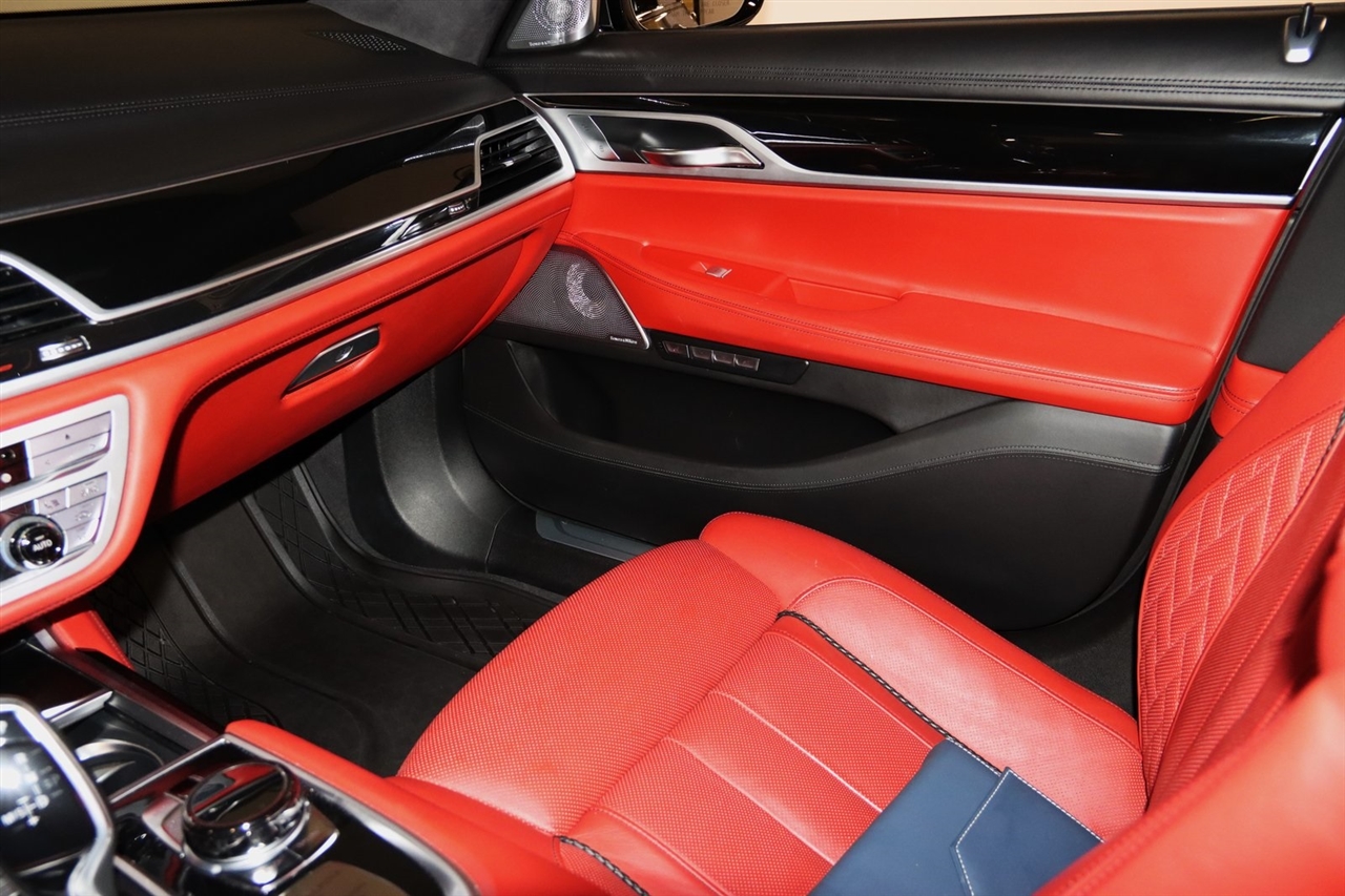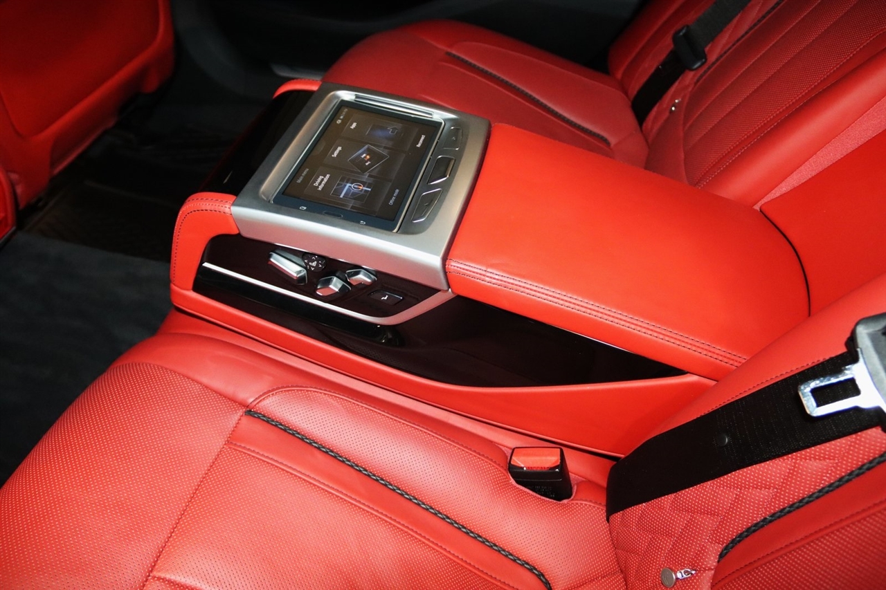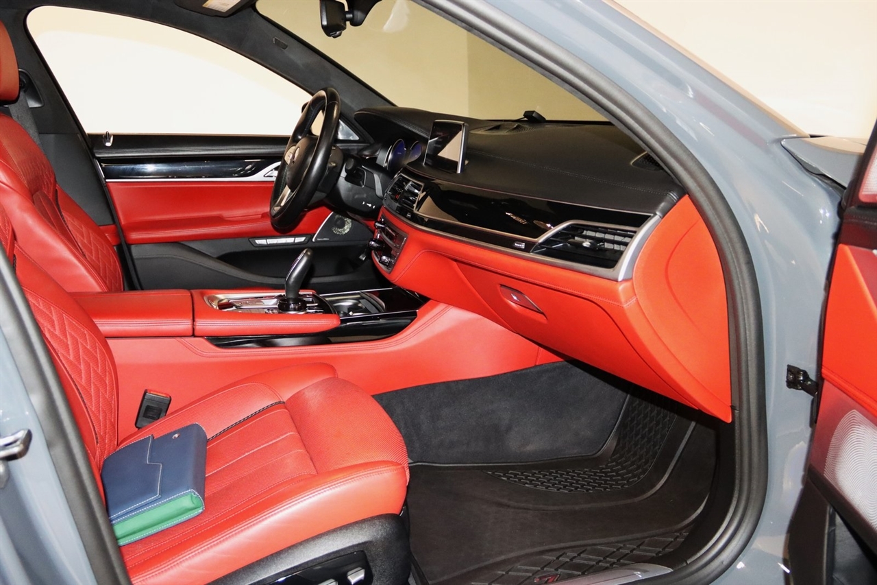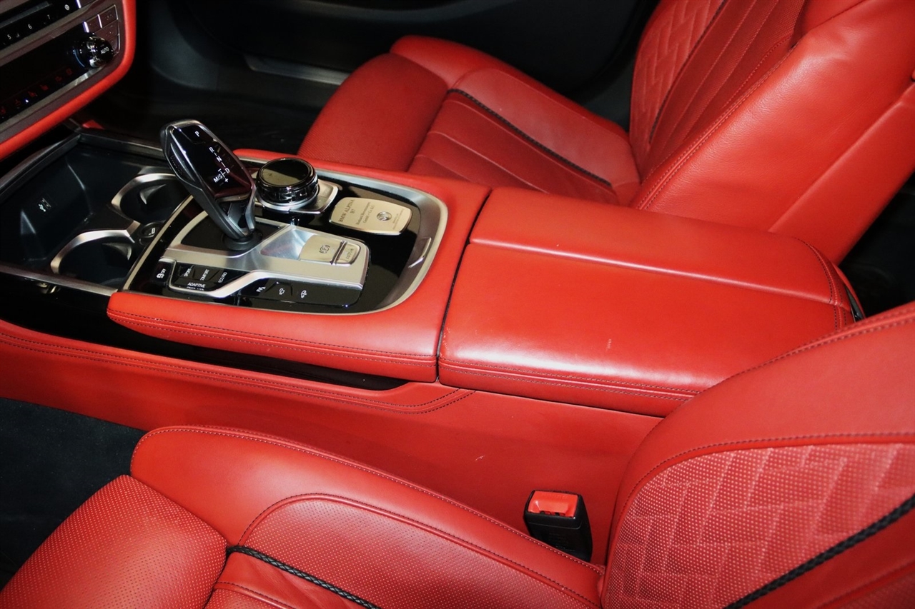 Navigation, Bluetooth, Back Up Camera, Panoramic Roof, Heated Seats, 16 Speakers, 4-Wheel Disc Brakes, ABS brakes, Adaptive suspension, Air Conditioning, Alloy wheels, AM/FM radio, Anti-whiplash front head restraints, Auto High-beam Headlights, Auto tilt-away steering wheel, Auto-dimming door mirrors, Auto-dimming Rear-View mirror, Auto-leveling suspension, Automatic temperature control, Brake assist, Bumpers: body-color, CD player, Delay-off headlights, Door auto-latch, Driver door bin, Driver vanity mirror, Dual front impact airbags, Dual front side impact airbags, Electronic Stability Control, Emergency communication system: BMW Assist eCall, Exterior Parking Camera Rear, Four wheel independent suspension, Front & Rear Heated Seats, Front anti-roll bar, Front Bucket Seats, Front Center Armrest, Front dual zone A/C, Front fog lights, Front Massaging Seats, Front Multi-Contour Seats, Front reading lights, Front Ventilated Seats, Fully automatic headlights, Garage door transmitter, harman/kardon Surround Sound System, harman/kardon® Speakers, Head restraints memory, Heads-Up Display, Heated door mirrors, Heated front seats, Heated rear seats, Heated steering wheel, Illuminated entry, Knee airbag, Leather Shift Knob, Leather steering wheel, Low tire pressure warning, Memory seat, Navigation System, Occupant sensing airbag, Outside temperature display, Overhead airbag, Overhead console, Panic alarm, Passenger door bin, Passenger vanity mirror, Perforated Nappa Leather Upholstery, Power adjustable front head restraints, Power door mirrors, Power driver seat, Power moonroof, Power passenger seat, Power steering, Power windows, Radio data system, Radio: In Dash CD Player, Rain sensing wipers, Rear air conditioning, Rear anti-roll bar, Rear dual zone A/C, Rear reading lights, Rear seat center armrest, Rear Window Blind, Rear window defroster, Remote keyless entry, Security system, SiriusXM Satellite Radio, Speed control, Speed-sensing steering, Speed-Sensitive Wipers, Spoiler, Sport steering wheel, Steering wheel memory, Steering wheel mounted audio controls, Tachometer, Telescoping steering wheel, Tilt steering wheel, Traction control, Trip computer, Variably intermittent wipers, Ventilated front seats, Weather band radio, Wheels: 20" x 8.5" Fr & 20" x 10" Rr.