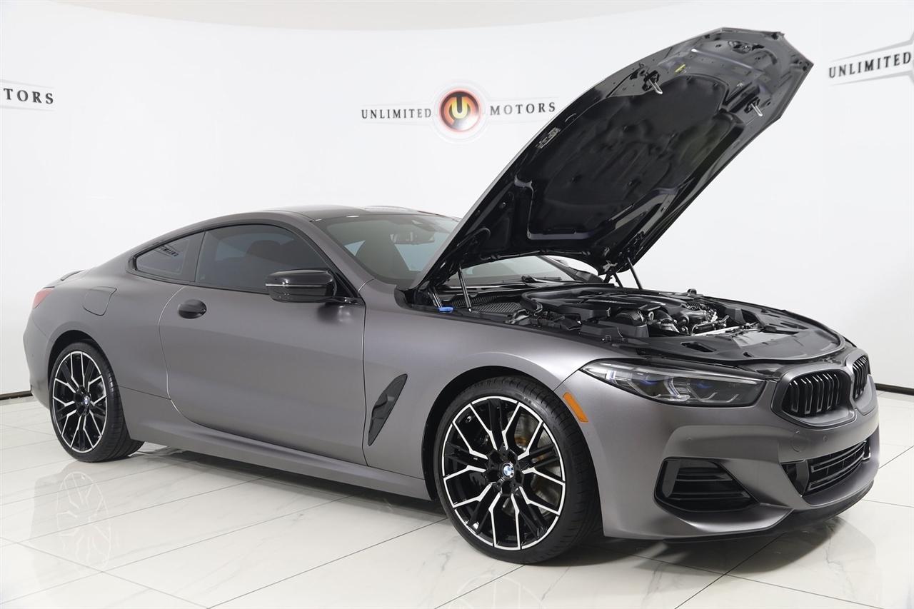 Navigation, Back Up Camera, Bluetooth, Heated Seats, Touch Screen, Heated Steering Wheel, Blind Spot, Cooled Heats, Apple Play, 8 Series M850i xDrive, 2D Coupe, 4.4L V8 32V, 8-Speed Automatic Sport, AWD, Carbon Black Metallic, Black Leather, Active Blind Spot Detection, Active Driving Assistant, Active Park Distance Control, Driving Assistance Package, Extended Shadowline Trim, M Shadowline Lights, M Sport Professional Package, Navigation System, Parking Assistant Plus, Rear-View Camera.