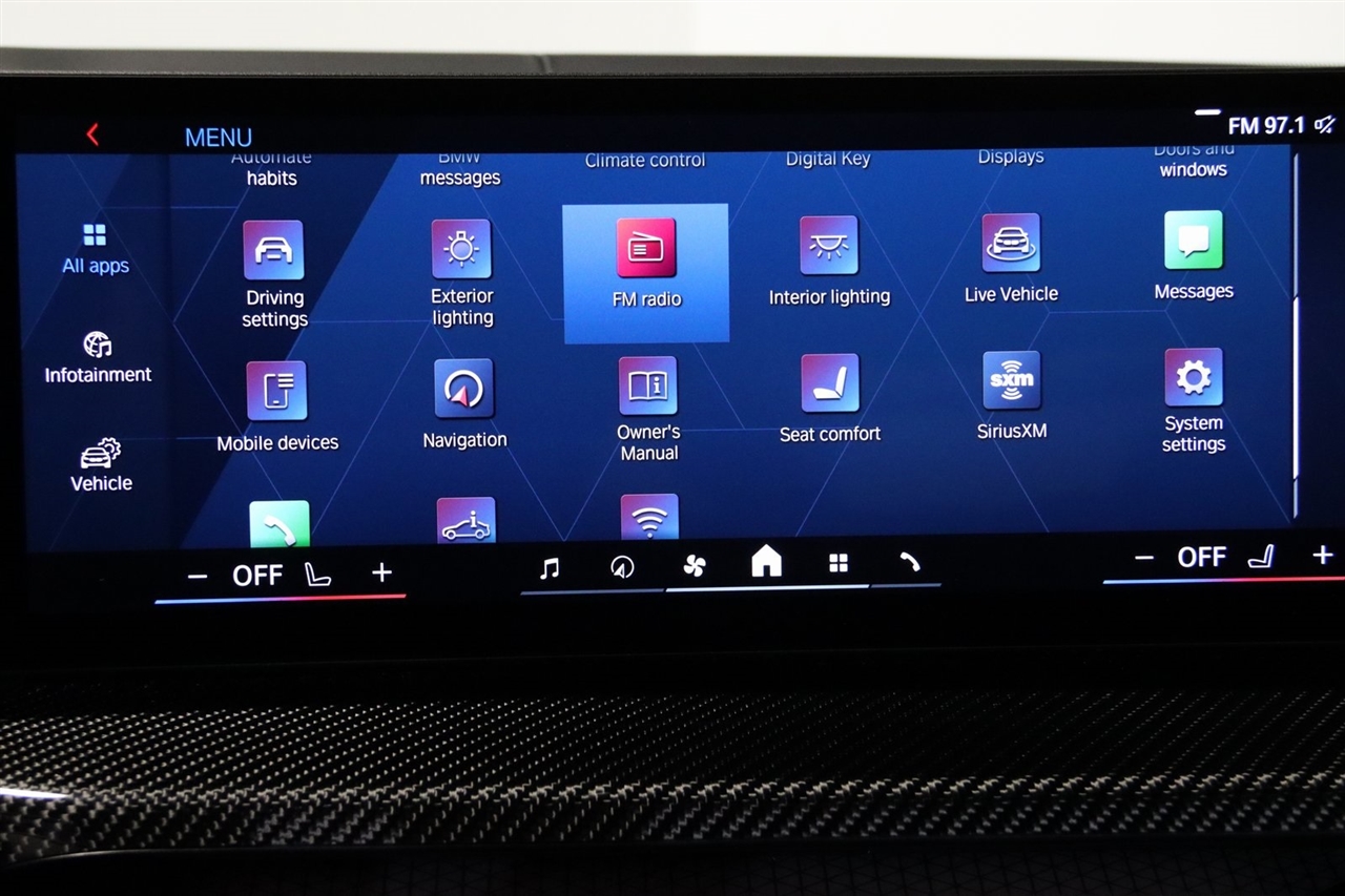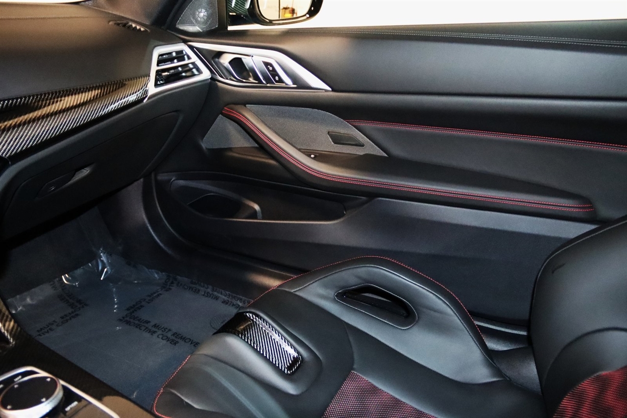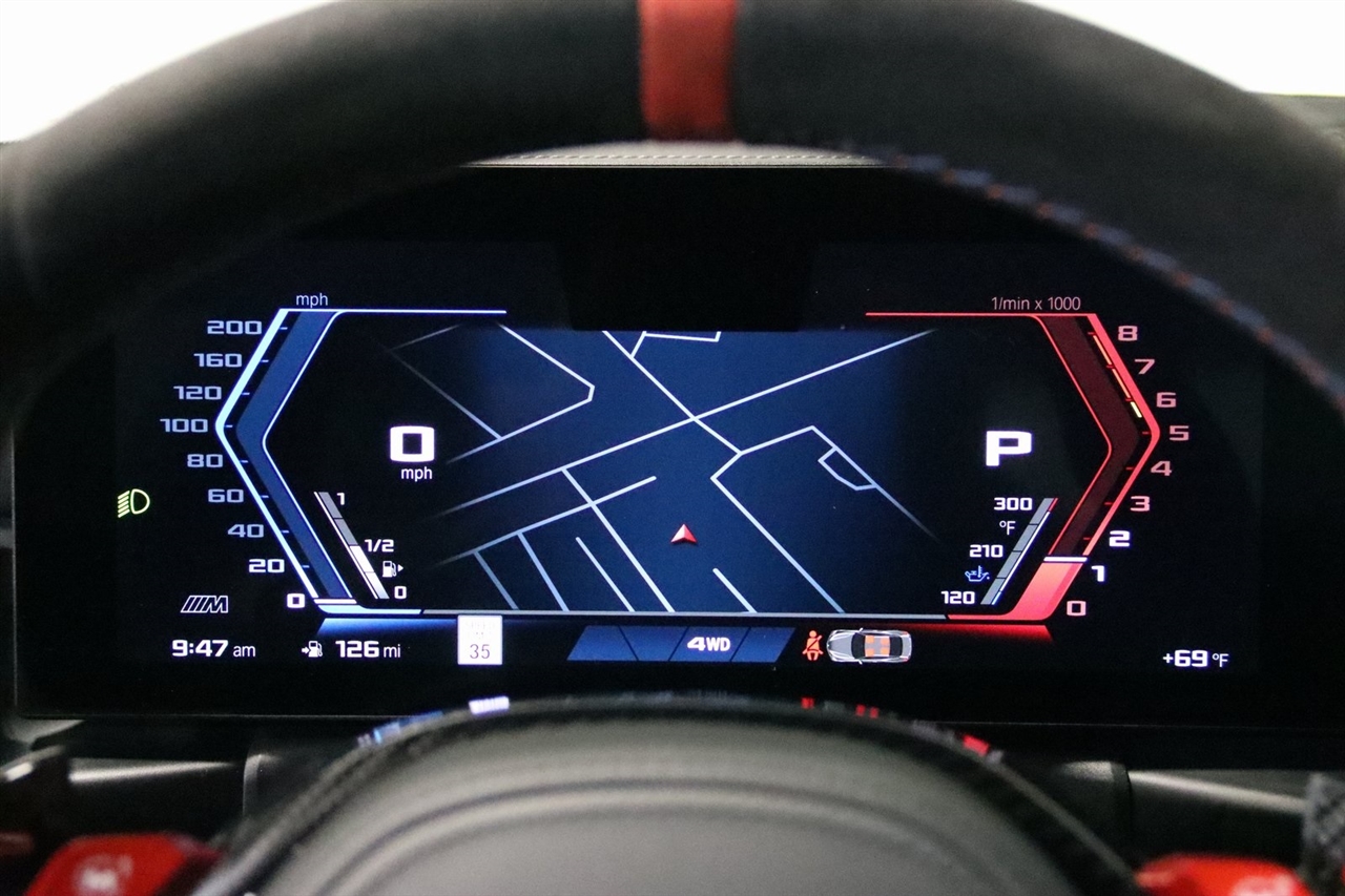 Navigation, Bluetooth, Back Up Camera, Heated Seats, Touch Screen, 16 Speakers, 4-Wheel Disc Brakes, ABS brakes, Adaptive suspension, Air Conditioning, Alloy wheels, AM/FM radio: SiriusXM with 360L, Apple CarPlay & Android Auto Compatibility, Audio memory, Auto High-beam Headlights, Auto-dimming door mirrors, Auto-dimming Rear-View mirror, Automatic temperature control, BMW Assist eCall, BMW TeleServices, Brake assist, Bumpers: body-color, Compass, Connected Package Pro, ConnectedDrive Services, Delay-off headlights, Driver door bin, Driver vanity mirror, Dual front impact airbags, Dual front side impact airbags, Electronic Stability Control, Emergency communication system: BMW Assist eCall, Exterior Parking Camera Rear, Four wheel independent suspension, Front anti-roll bar, Front Bucket Seats, Front Center Armrest, Front dual zone A/C, Front reading lights, Full Merino Leather Upholstery (X3), Fully automatic headlights, Garage door transmitter, harman/kardon Surround Sound System, harman/kardon® Speakers, Heads-Up Display, Heated door mirrors, Heated Front Seats, Heated front seats, HVAC memory, Illuminated entry, Knee airbag, Leather Shift Knob, Low tire pressure warning, M Carbon Bucket Seats, M Compound Brakes w/Black Calipers, Memory seat, Navigation, Navigation System, Occupant sensing airbag, Outside temperature display, Overhead airbag, Overhead console, Panic alarm, Passenger door bin, Passenger vanity mirror, Personal eSIM 5G, Power door mirrors, Power driver seat, Power Front Seats, Power passenger seat, Power steering, Power windows, Radio data system, Radio: AM/FM Audio System, Rain sensing wipers, Rear anti-roll bar, Rear reading lights, Rear seat center armrest, Rear window defroster, Remote keyless entry, Security system, SiriusXM w/360L, Speed control, Speed-sensing steering, Speed-Sensitive Wipers, Split folding rear seat, Spoiler, Sport steering wheel, Steering wheel mounted audio controls, Tachometer, Telescoping steering wheel, Tilt steering wheel, Traction control, Trip computer, Turn signal indicator mirrors, Variably intermittent wipers, Widescreen Display. CARFAX One-Owner.