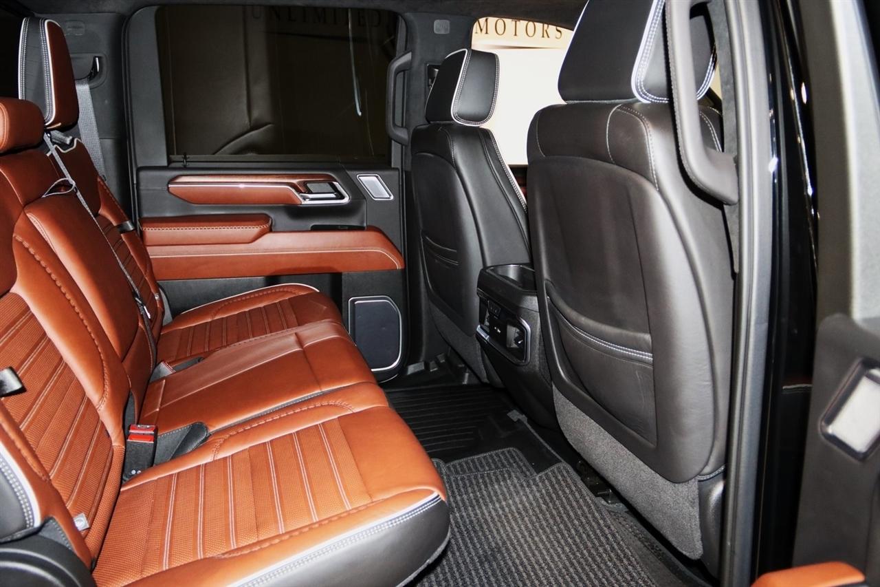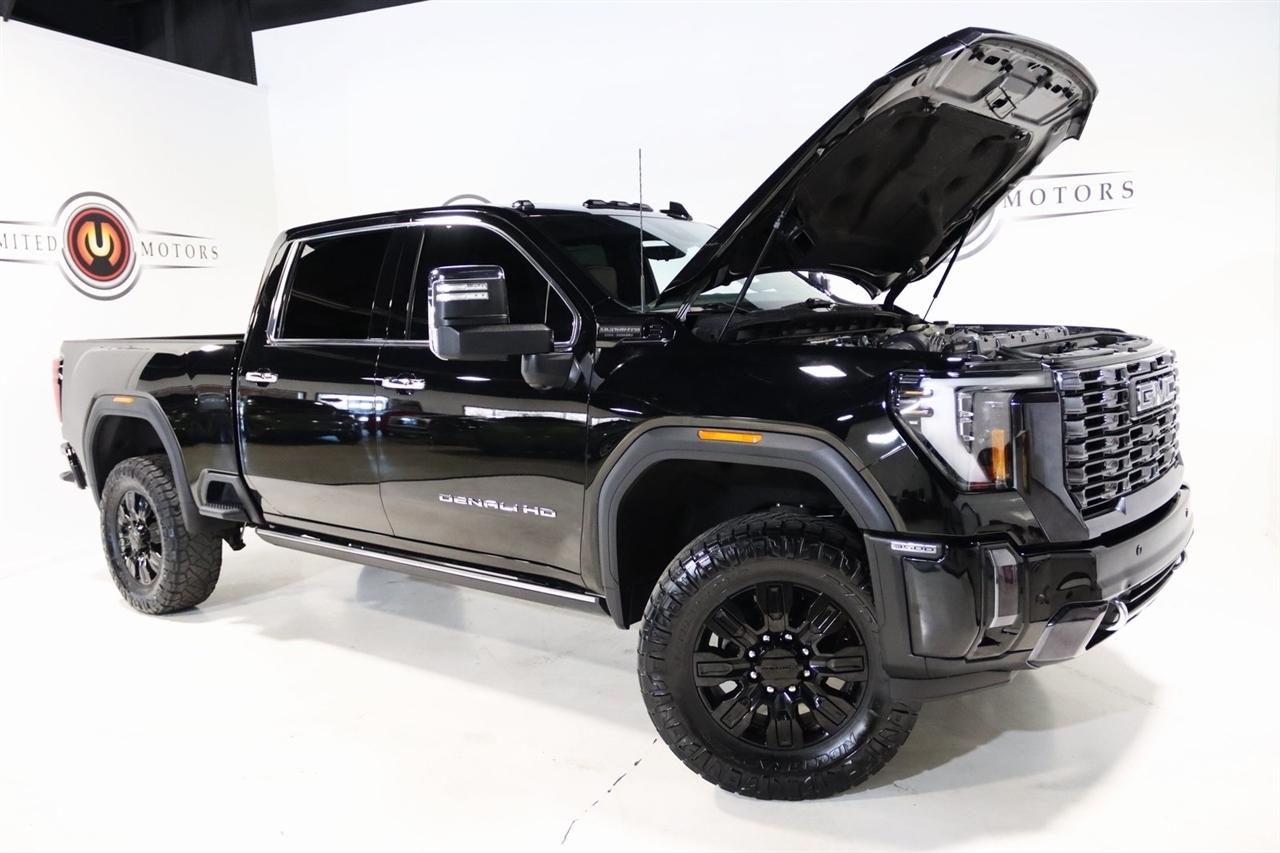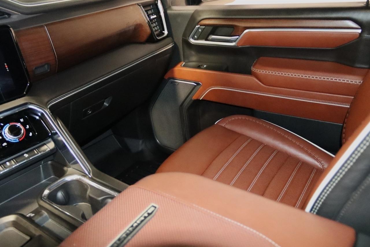 Navigation, Bluetooth, Sun/Moon Roof, Towing, Heated Seats, Touch Screen, 12 Speakers, 120-Volt Bed Mounted Power Outlet, 120-Volt Instrument Panel Power Outlet, 16-Way Power Driver Seat Adjuster w/Lumbar, 16-Way Power Passenger Seat Adjuster w/Lumbar, 2 Charge-Only Rear USB Ports, 2 Charge/Data USB Ports Inside Center Console, 2 USB Ports, 2-Speed Active Transfer Case, 220 Amp Alternator, 3.42 Rear Axle Ratio, 4-Wheel Disc Brakes, ABS brakes, Alloy wheels, AM/FM radio: SiriusXM with 360L, Apple CarPlay/Android Auto, Auto High-beam Headlights, Auto-dimming door mirrors, Auto-Dimming Inside Rearview Mirror w/Camera, Auto-dimming Rear-View mirror, Automatic Emergency Braking, Automatic temperature control, Bed View Camera w/2 Trailer Camera Provisions, Block heater, Bose Premium Series 12-Speaker System, Brake assist, Buckle to Drive, Bumpers: body-color, Compass, Console-Mounted Safe (LPO), Deep-Tinted Glass, Delay-off headlights, Driver door bin, Driver Memory, Driver vanity mirror, Dual front impact airbags, Dual front side impact airbags, Dual Heavy-Duty 70 Amp-Hr Battery, Electric Rear-Window Defogger, Electronic Stability Control, Emergency communication system: OnStar and GMC connected services capable, Floor-Mounted Center Console, Following Distance Indicator, Forward Collision Alert, Front anti-roll bar, Front Bucket Seats, Front Center Armrest, Front dual zone A/C, Front fog lights, Front License Plate Kit, Front Pedestrian Braking, Front Rain-Sensing Wipers, Front reading lights, Front wheel independent suspension, Full Grain Leather Seat Trim, Fully automatic headlights, Garage door transmitter, Genuine wood dashboard insert, Genuine wood door panel insert, GMC Premium 13.4" Diagonal Information Display, Gooseneck/5th Wheel Prep Package, HD Surround Vision, Heads-Up Display, Heated 2nd Row Outboard Seats, Heated door mirrors, Heated Driver & Front Outboard Passenger Seats, Heated front seats, Heated rear seats, Heated steering wheel, Hitch Guidance w/Hitch View, Illuminated entry, In-Vehicle Trailering App, Integrated Trailer Brake Controller, IntelliBeam Automatic High Beam On/Off, Keyless Open & Start, Lane Departure Warning System, Leather steering wheel, LED Cargo Area Lighting, LED Smoked Amber Roof Marker Lamps, Low tire pressure warning, Manual Tilt-Wheel/Telescoping Steering Column, Memory seat, Multicolor 15" Diagonal Head-Up Display, Navigation System, Occupant sensing airbag, Outside temperature display, Overhead airbag, Overhead console, Panic alarm, Passenger door bin, Passenger vanity mirror, Pickup Bed, Power door mirrors, Power driver seat, Power Front Windows w/Passenger Express Up/Down, Power moonroof, Power passenger seat, Power Sliding Rear Window w/Defogger, Power steering, Power Sunroof, Power windows, Preferred Equipment Group 5SB, Premium audio system: Premium GMC Infotainment System, ProGrade Trailering System, Push Button Start, Radio: AM/FM w/Premium GMC Infotainment System, Rain sensing wipers, Rear Cross Traffic Alert, Rear reading lights, Rear seat center armrest, Rear step bumper, Rear Underseat Storage (LPO), Rear Wheelhouse Liners, Rear window defroster, Remote keyless entry, Remote Vehicle Starter System, Safety Alert Seat, Security system, Signature Denali Grille in Vader Chrome, SiriusXM w/360L, Snow Plow Prep/Camper Package, Speed control, Speed-sensing steering, Split folding rear seat, Spray-On Pickup Bedliner w/Denali Logo, Steering Wheel Audio Controls, Steering wheel mounted audio controls, Tachometer, Technology Package, Telescoping steering wheel, Tilt steering wheel, Traction control, Trailer Camera Provisions, Trailer Side Blind Zone Alert, Trailer Tire Pressure Monitor Sensors, Trip computer, Turn signal indicator mirrors, Ultrasonic Front & Rear Park Assist, Unauthorized Entry Theft-Deterrent System, Universal Home Remote, Variably intermittent wipers, Ventilated Driver & Front Passenger Seats, Ventilated front seats, Voltmeter, Wireless Charging, Wireless Phone Projec