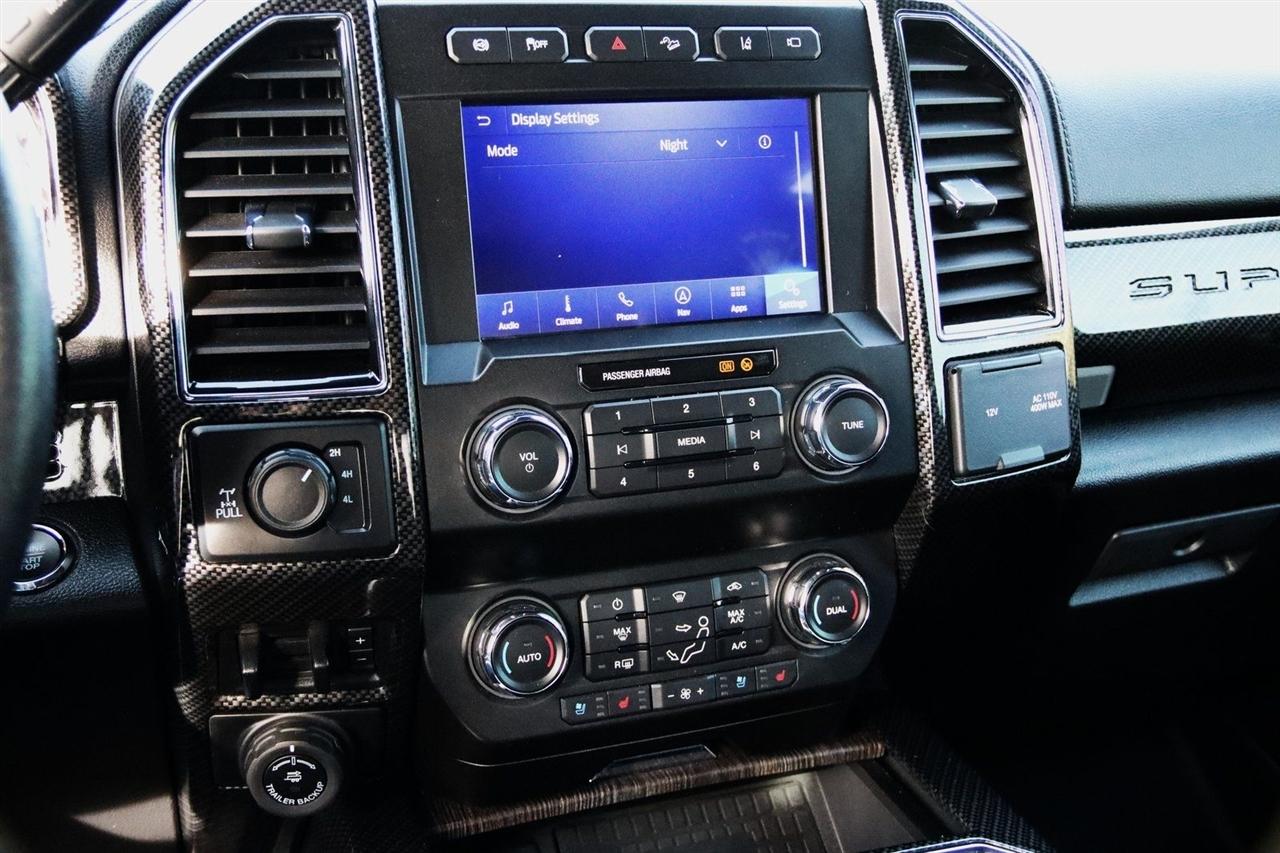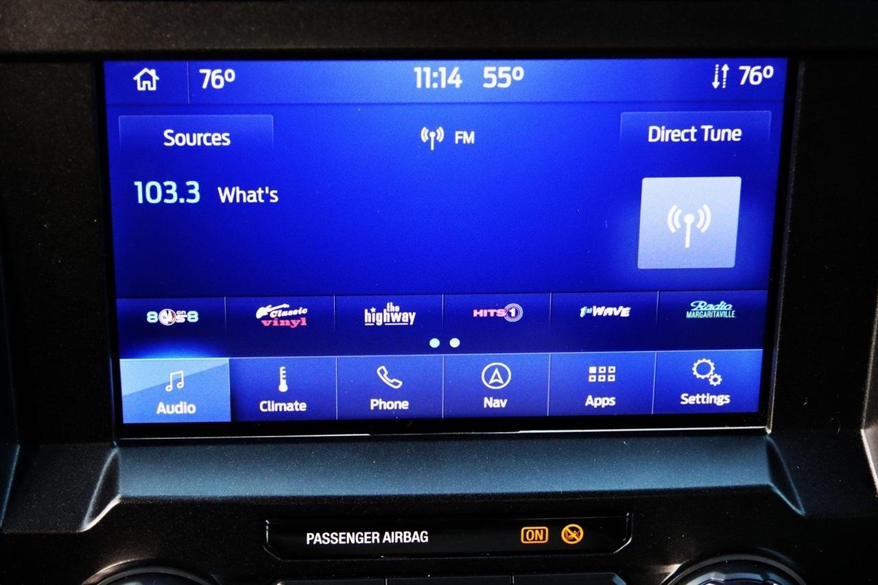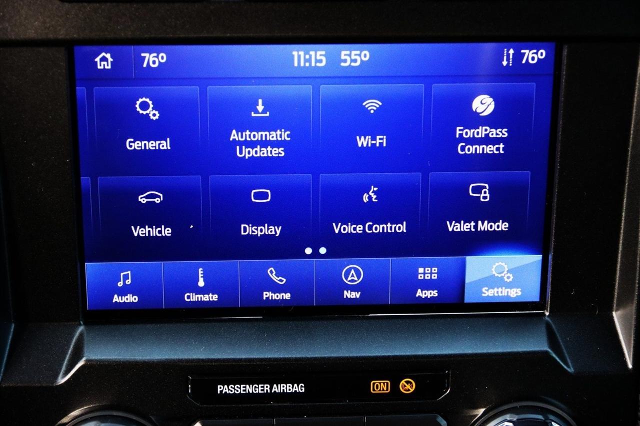 Navigation, Bluetooth, Back Up Camera, Panoramic Roof, Towing, Heated Seats, Touch Screen, 10 Speakers, 110V/400W Outlet, 397 Amp Alternator, 4-Wheel Disc Brakes, ABS brakes, Adaptive Cruise Control & Collision Warning, Adaptive Steering, Adjustable pedals, Air Conditioning, Alloy wheels, AM/FM radio: SiriusXM, Ambient Lighting - Fixed Color, Auto High-beam Headlights, Auto-dimming Rear-View mirror, Automatic temperature control, Brake assist, Bumpers: chrome, Compass, Delay-off headlights, Driver door bin, Driver vanity mirror, Dual front impact airbags, Dual front side impact airbags, Easy Entry®/Exit Memory Driver's Seat Feature, Electronic Stability Control, Electronic-Locking w/3.55 Axle Ratio, Emergency communication system: SYNC 3 911 Assist, Engine Block Heater, Exterior Parking Camera Rear, Flow-Through Console, Front anti-roll bar, Front Bucket Seats, Front Center Armrest, Front dual zone A/C, Front fog lights, Front Leather Seating Surfaces 40/Console/40, Front reading lights, Fully automatic headlights, FX4 Off-Road Package, GVWR: 10,000 lb Payload Package, Heated door mirrors, Heated Rear Seats, Heated Steering Wheel, High Capacity Trailer Tow Package, Hill Descent Control, Illuminated entry, Intelligent Access w/Push-Button Start, Lane-Keeping Alert, Lariat Ultimate Package, Leather steering wheel, LED Box Lighting, Low tire pressure warning, Memory Power-Adjustable Pedals, Navigation System, Off-Road Specifically Tuned Shock Absorbers, Order Code 608A, Outside temperature display, Overhead airbag, Overhead console, Panic alarm, Passenger door bin, Passenger vanity mirror, Power door mirrors, Power driver seat, Power Heated/Ventilated Driver Seat w/Memory, Power Heated/Ventilated Passenger Seat, Power passenger seat, Power steering, Power Telescoping/Tilt Steering Wheel/Column, Power windows, PowerScope Trailer Tow Mirrors w/Heat, PowerScope Trailer Tow Mirrors w/Memory, Pro Trailer Backup Assist - High Capacity, Quad Beam LED Headlamps & LED Taillamps, Radio data system, Radio: B&O System by Bang & Olufsen, Rain-Sensing Windshield Wipers, Rapid-Heat Supplemental Cab Heater, Rear Parking Sensors, Rear reading lights, Rear seat center armrest, Rear step bumper, Rear Wheel Well Liners (Pre-Installed), Rear window defroster, Remote keyless entry, Remote Start System, Remote Tailgate Release, Security system, SiriusXM Radio, Speed control, Split folding rear seat, Steering wheel mounted audio controls, SYNC 3 Communications & Entertainment System, Tachometer, Tailgate Step & Handle, Telescoping steering wheel, Tilt steering wheel, Traction control, Trip computer, Turn signal indicator mirrors, Twin Panel Power Moonroof, Ultimate Trailer Tow Camera System, Unique FX4 Off-Road Box Decal, Universal Garage Door Opener (UGDO), Upfitter Switches (6), Variably intermittent wipers, Voice-Activated Navigation, Wheels: 18" Bright Machined Cast Aluminum. CARFAX One-Owner. Odometer is 60839 miles below market average!