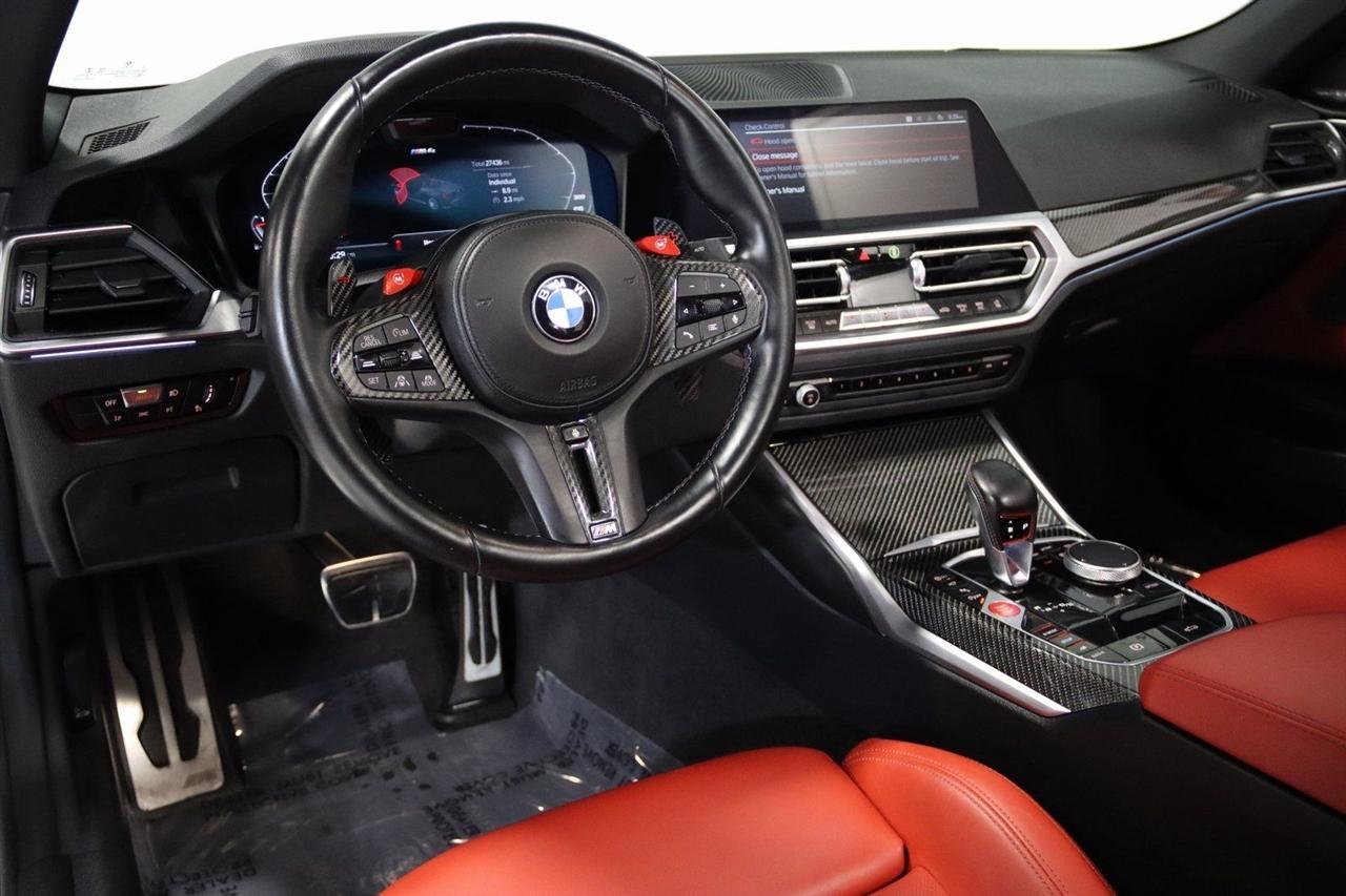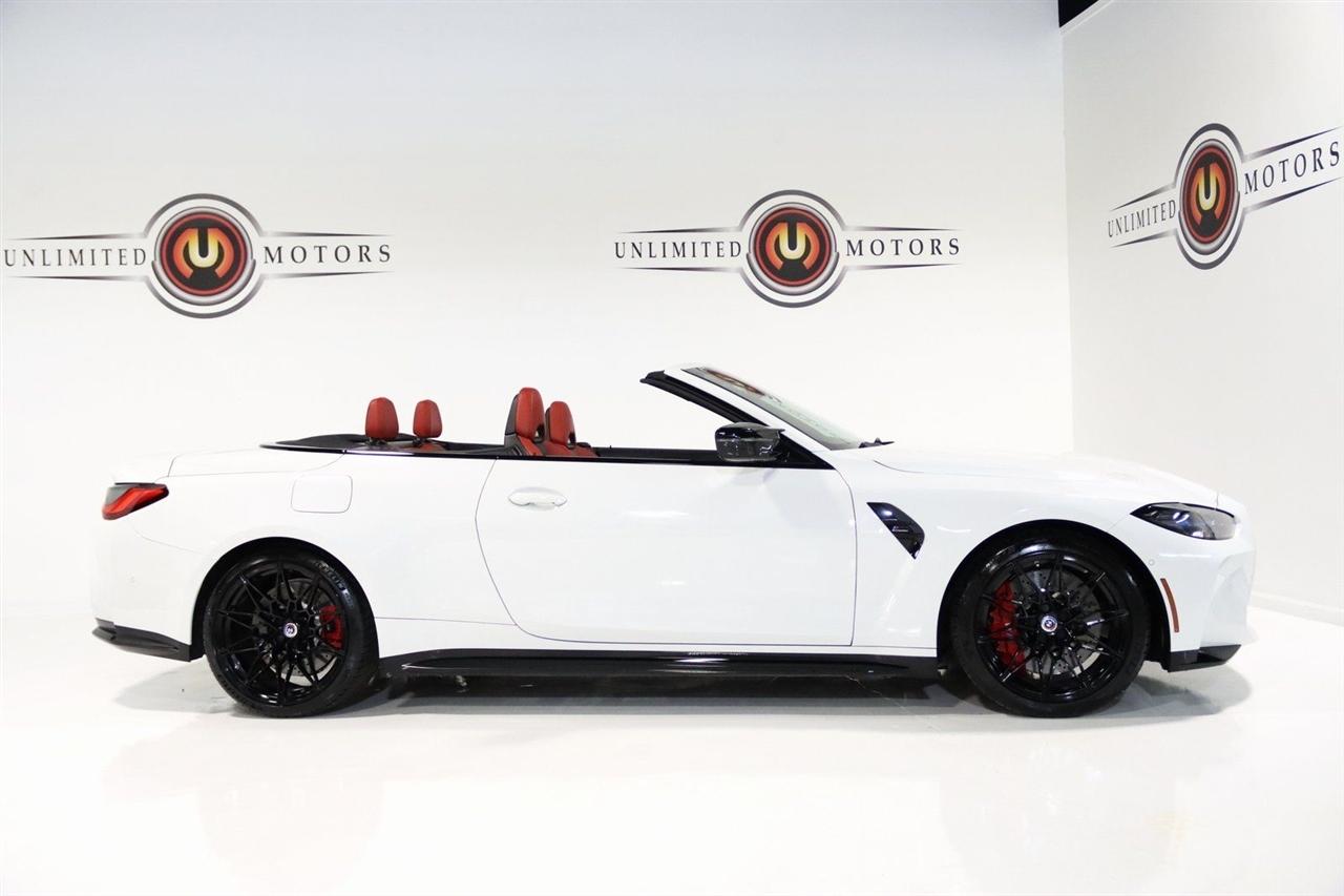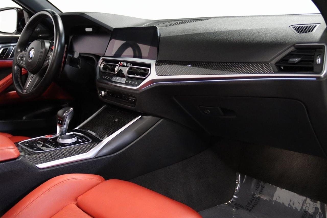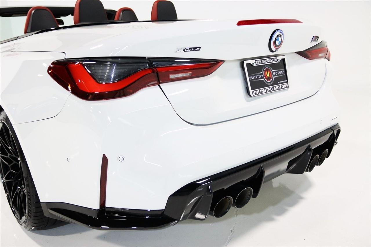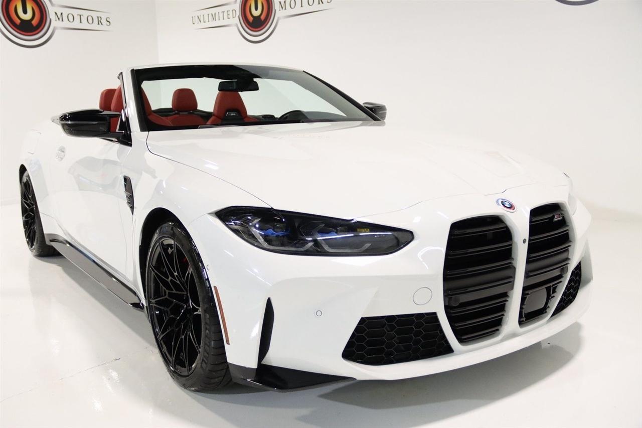 Navigation, Bluetooth, Back Up Camera, Soft Top, Heated Seats, Touch Screen, 16 Speakers, 4-Wheel Disc Brakes, ABS brakes, Active Driving Assistant Pro, Adaptive suspension, Air Conditioning, Alloy wheels, AM/FM radio: SiriusXM, Apple CarPlay & Android Auto Compatibility, Auto High-beam Headlights, Auto-dimming door mirrors, Auto-dimming Rear-View mirror, Automatic temperature control, BMW Assist eCall, BMW TeleServices, Brake assist, Bumpers: body-color, Carbon Fiber Trim, Compass, ConnectedDrive Services, Convertible roof lining, Convertible roof wind blocker, Delay-off headlights, Driver door bin, Driver vanity mirror, Driving Assistance Professional Package, Dual front impact airbags, Dual front side impact airbags, Electronic Stability Control, Emergency communication system: BMW Assist eCall, Enhanced USB/Bluetooth Plus Smartphone Integration, Executive Package, Extended Merino Leather Upholstery, Extended Traffic Jam Assistant, Exterior Parking Camera Rear, Four wheel independent suspension, Front anti-roll bar, Front Bucket Seats, Front Center Armrest, Front dual zone A/C, Front reading lights, Front Ventilated Seats, Fully automatic headlights, Garage door transmitter, Glass rear window, harman/kardon Surround Sound System, harman/kardon® Speakers, Head-Up Display, Heated door mirrors, Heated Front Seats, Heated front seats, Heated Steering Wheel, Icon Adaptive LED Headlights w/Laserlight, Illuminated entry, Integrated roll-over protection, Knee airbag, Leather Shift Knob, Live Cockpit Pro w/Navi, Low tire pressure warning, Lumbar Support, M Compound Brakes w/Red Calipers, M Shadowline Lights, M Sport Seats, Memory seat, Navigation System, Occupant sensing airbag, Outside temperature display, Overhead console, Panic alarm, Parking Assistance Package, Parking Assistant Plus, Passenger door bin, Passenger vanity mirror, Power convertible roof, Power door mirrors, Power driver seat, Power Front Seats, Power passenger seat, Power steering, Power windows, Radio data system, Radio: AM/FM Audio System, Rain sensing wipers, Rear air conditioning, Rear anti-roll bar, Rear reading lights, Rear seat center armrest, Rear window defroster, Remote Engine Start, Remote keyless entry, Security system, SiriusXM Satellite Radio, Speed control, Speed-sensing steering, Speed-Sensitive Wipers, Sport steering wheel, Steering wheel mounted audio controls, Tachometer, Telescoping steering wheel, Tilt steering wheel, Traction control, Trip computer, Turn signal indicator mirrors, Variably intermittent wipers, WiFi Hotspot, Wireless Charging. Clean CARFAX.