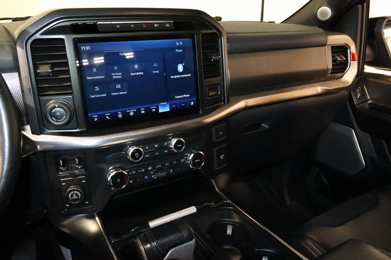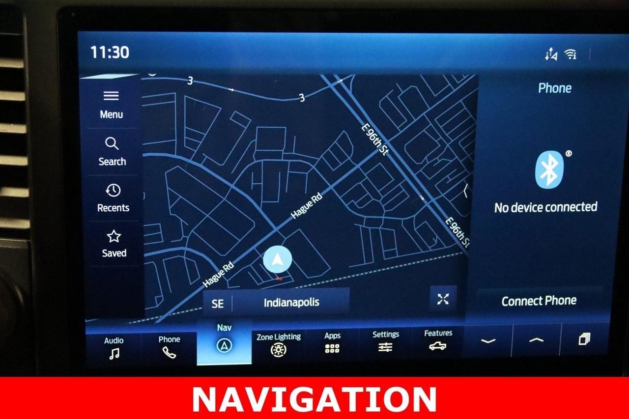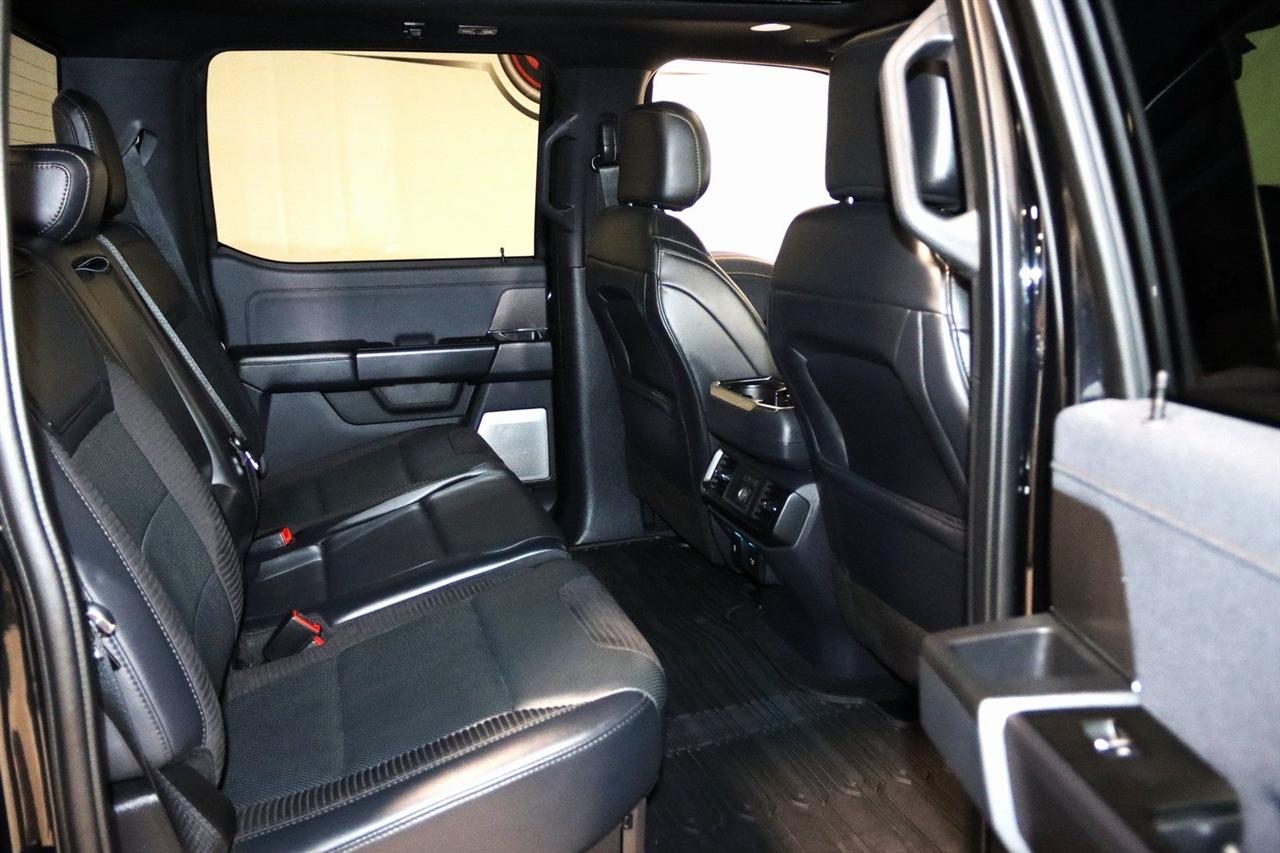 Navigation, Bluetooth, Back Up Camera, Sun/Moon Roof, Towing, Heated Seats, 17" Cast Aluminum Wheels, 360 Degree Camera, 4-Wheel Disc Brakes, 7 Speakers, ABS brakes, Adaptive suspension, Adjustable pedals, Air Conditioning, Alloy wheels, AM/FM radio: SiriusXM with 360L, Auto High-beam Headlights, Auto Start-Stop Removal, Auto-dimming door mirrors, Auto-dimming Rear-View mirror, Automatic temperature control, Brake assist, Bumpers: body-color, Compass, Connected Built-In Navigation, Convenience Package, Delay-off headlights, Driver door bin, Driver vanity mirror, Dual front impact airbags, Dual front side impact airbags, Electronic Locking w/4.10 Axle Ratio, Electronic Stability Control, Emergency communication system, Equipment Group 801A High, Exterior Parking Camera Rear, Forward Sensing System, Front anti-roll bar, Front Bucket Seats, Front Center Armrest, Front dual zone A/C, Front reading lights, Front wheel independent suspension, Front-Axle w/Torsen Differential, Fully automatic headlights, GVWR: 7,050 lbs Payload Package, Heated door mirrors, Heated front seats, Heated Steering Wheel, Illuminated entry, Integrated Trailer Brake Controller, Interior Work Surface, Lane Departure Warning System, Leather Trim Seats, Leather Trim Seats w/Heated 2nd Row, LED Projector w/Dynamic Bending Headlamps, Low tire pressure warning, Memory seat, Moonroof & Tailgate, Navigation System, Navigation system: Connected Navigation, Occupant sensing airbag, Outside temperature display, Overhead airbag, Overhead console, Panic alarm, Partitioned Lockable Fold-Flat Storage, Passenger door bin, Passenger vanity mirror, Pedal memory, Power door mirrors, Power driver seat, Power passenger seat, Power steering, Power Tailgate, Power Tilt/Telescoping Steering Column w/Memory, Power windows, Pro Power Onboard - 2KW, Radio data system, Radio: AM/FM SiriusXM w/360L, Radio: B&O Unleashed Sound System by Bang & Olufsen, Rain-Sensing Wipers, Rear reading lights, Rear step bumper, Rear window defroster, Remote keyless entry, Rigid LED Fog Lamp, Security system, Speed control, Speed-sensing steering, Split folding rear seat, Steering wheel mounted audio controls, SYNC 4 w/Enhanced Voice Recognition, Tachometer, Tailgate Applique FORD, Telescoping steering wheel, Tilt steering wheel, Torsen Package, Tough Bed Spray-In Bedliner, Tow Technology Package, Traction control, Trip computer, Turn signal indicator mirrors, Twin Panel Moonroof, Universal Garage Door Opener, Variably intermittent wipers, Ventilated front seats, Wireless Charging Pad. CARFAX One-Owner.