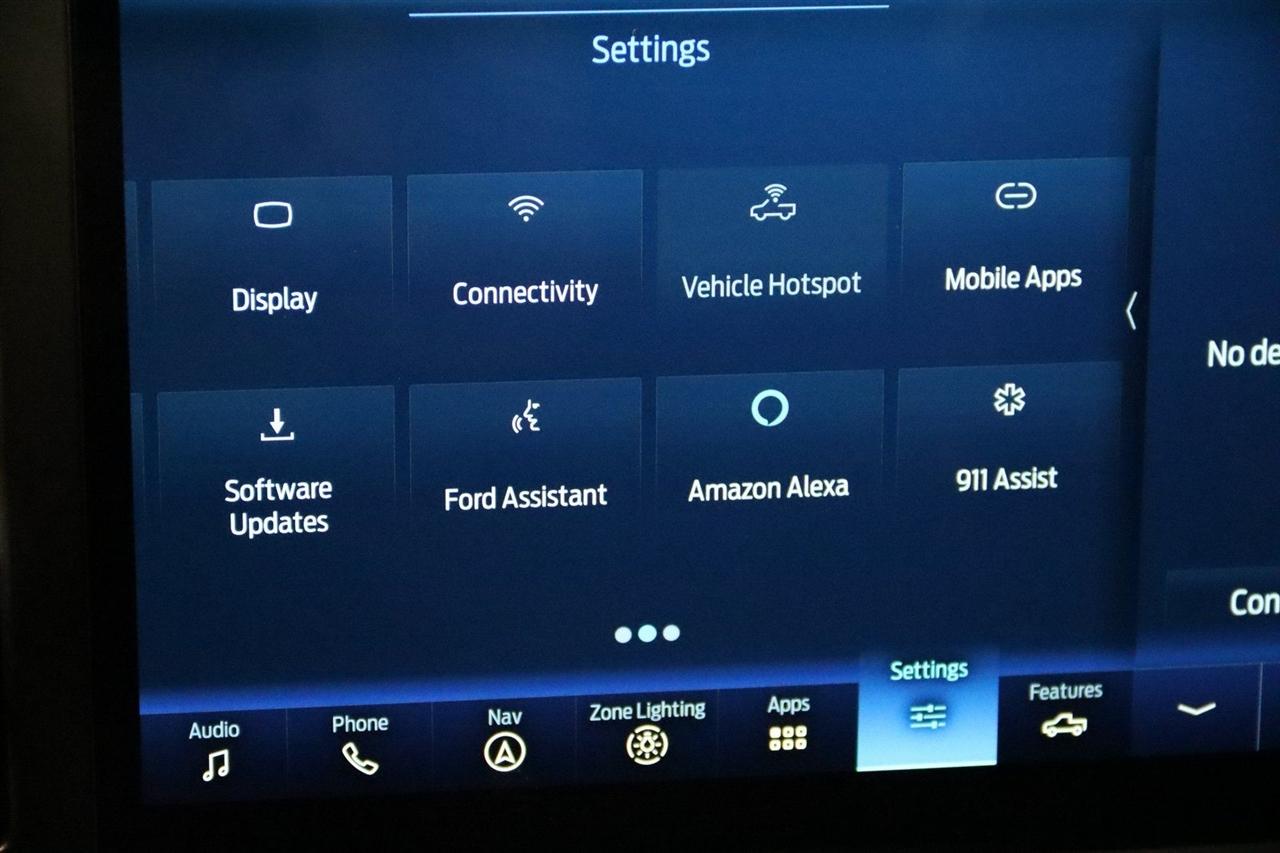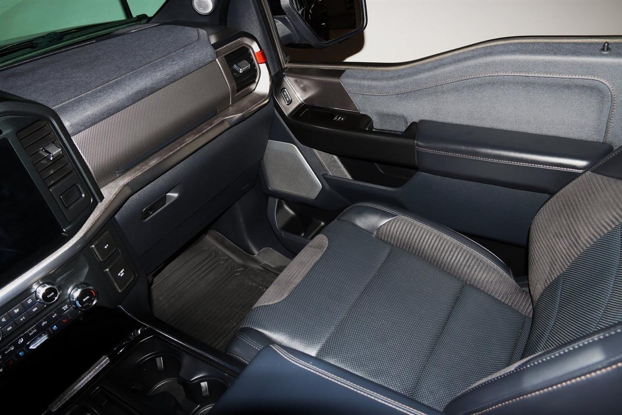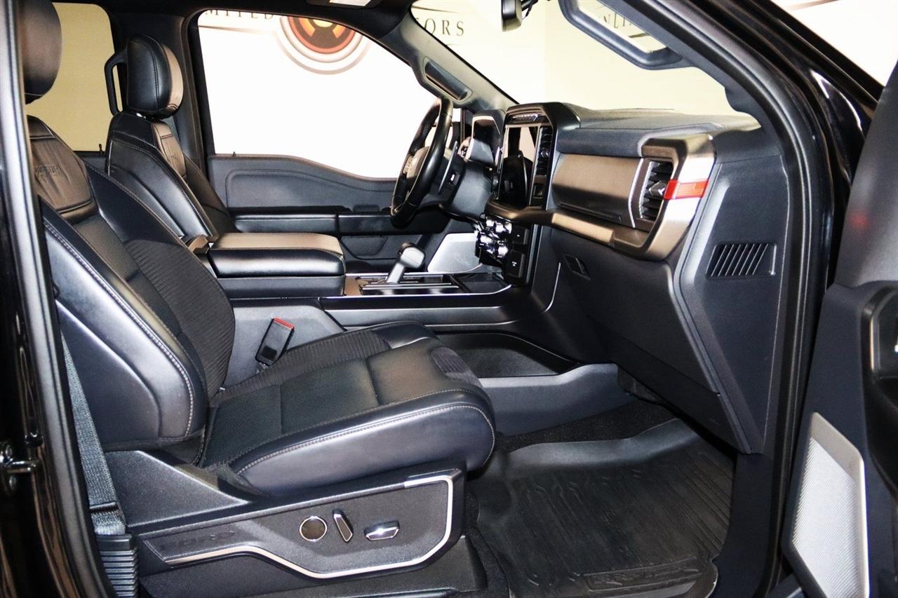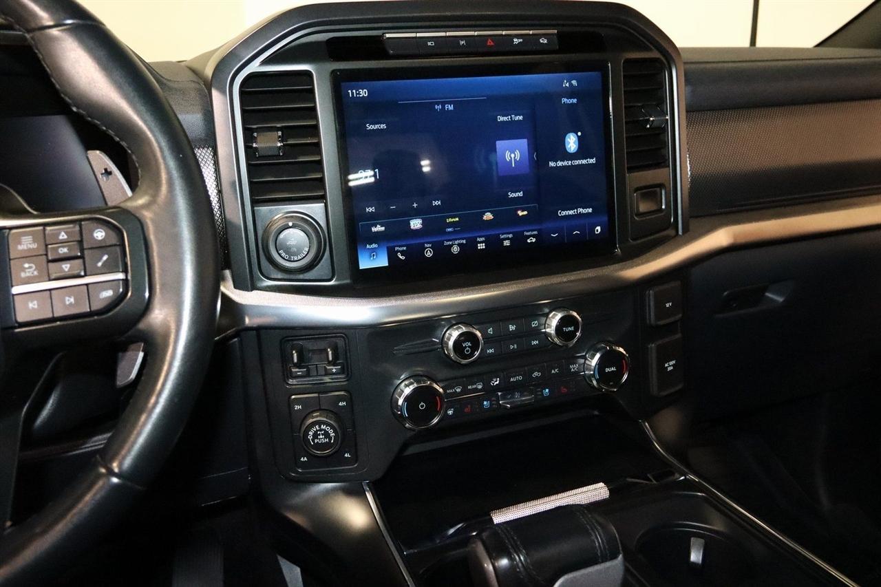 Navigation, Bluetooth, Back Up Camera, Sun/Moon Roof, Towing, Heated Seats, 17" Cast Aluminum Wheels, 360 Degree Camera, 4-Wheel Disc Brakes, 7 Speakers, ABS brakes, Adaptive suspension, Adjustable pedals, Air Conditioning, Alloy wheels, AM/FM radio: SiriusXM with 360L, Auto High-beam Headlights, Auto Start-Stop Removal, Auto-dimming door mirrors, Auto-dimming Rear-View mirror, Automatic temperature control, Brake assist, Bumpers: body-color, Compass, Connected Built-In Navigation, Convenience Package, Delay-off headlights, Driver door bin, Driver vanity mirror, Dual front impact airbags, Dual front side impact airbags, Electronic Locking w/4.10 Axle Ratio, Electronic Stability Control, Emergency communication system, Equipment Group 801A High, Exterior Parking Camera Rear, Forward Sensing System, Front anti-roll bar, Front Bucket Seats, Front Center Armrest, Front dual zone A/C, Front reading lights, Front wheel independent suspension, Front-Axle w/Torsen Differential, Fully automatic headlights, GVWR: 7,050 lbs Payload Package, Heated door mirrors, Heated front seats, Heated Steering Wheel, Illuminated entry, Integrated Trailer Brake Controller, Interior Work Surface, Lane Departure Warning System, Leather Trim Seats, Leather Trim Seats w/Heated 2nd Row, LED Projector w/Dynamic Bending Headlamps, Low tire pressure warning, Memory seat, Moonroof & Tailgate, Navigation System, Navigation system: Connected Navigation, Occupant sensing airbag, Outside temperature display, Overhead airbag, Overhead console, Panic alarm, Partitioned Lockable Fold-Flat Storage, Passenger door bin, Passenger vanity mirror, Pedal memory, Power door mirrors, Power driver seat, Power passenger seat, Power steering, Power Tailgate, Power Tilt/Telescoping Steering Column w/Memory, Power windows, Pro Power Onboard - 2KW, Radio data system, Radio: AM/FM SiriusXM w/360L, Radio: B&O Unleashed Sound System by Bang & Olufsen, Rain-Sensing Wipers, Rear reading lights, Rear step bumper, Rear window defroster, Remote keyless entry, Rigid LED Fog Lamp, Security system, Speed control, Speed-sensing steering, Split folding rear seat, Steering wheel mounted audio controls, SYNC 4 w/Enhanced Voice Recognition, Tachometer, Tailgate Applique FORD, Telescoping steering wheel, Tilt steering wheel, Torsen Package, Tough Bed Spray-In Bedliner, Tow Technology Package, Traction control, Trip computer, Turn signal indicator mirrors, Twin Panel Moonroof, Universal Garage Door Opener, Variably intermittent wipers, Ventilated front seats, Wireless Charging Pad. CARFAX One-Owner.