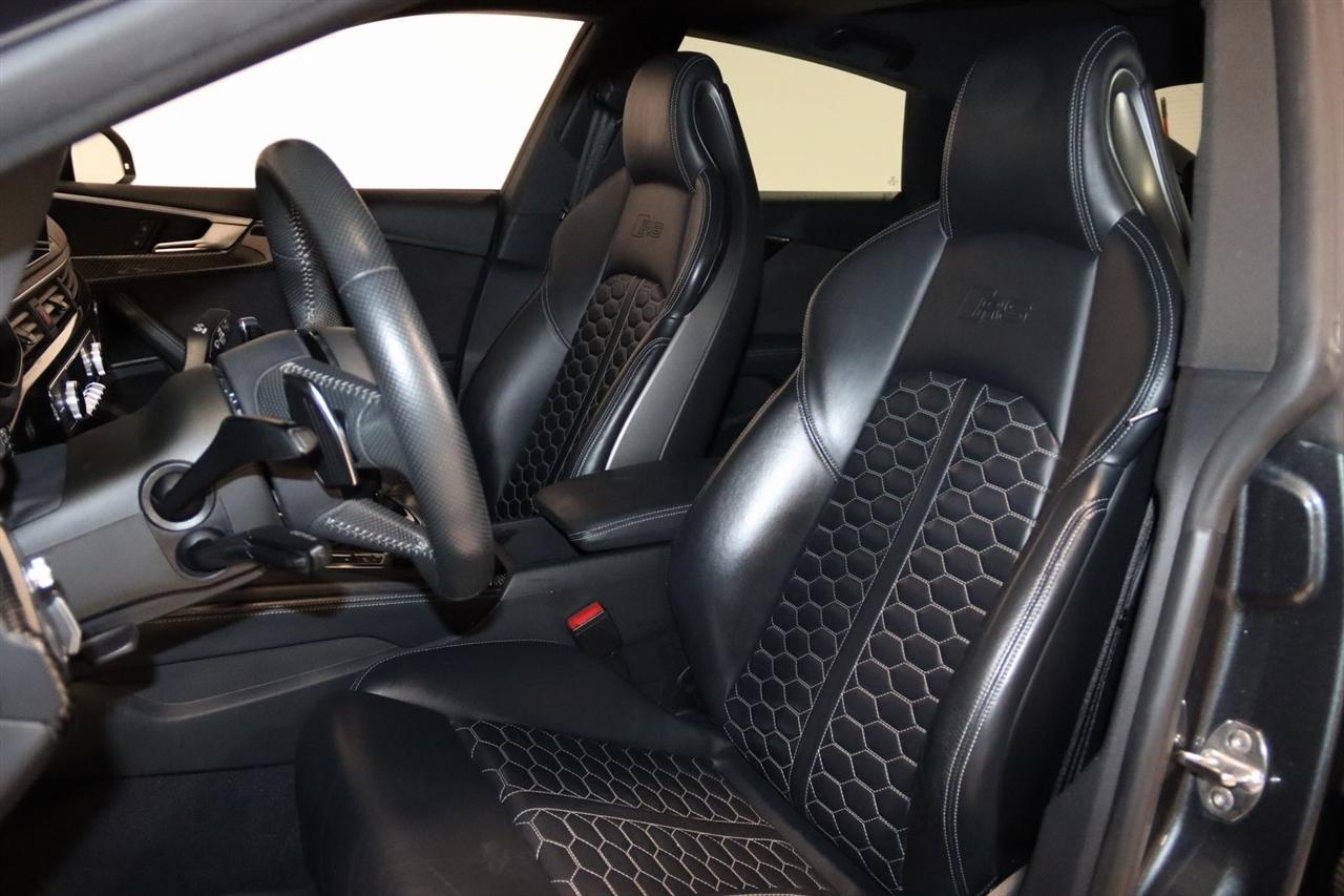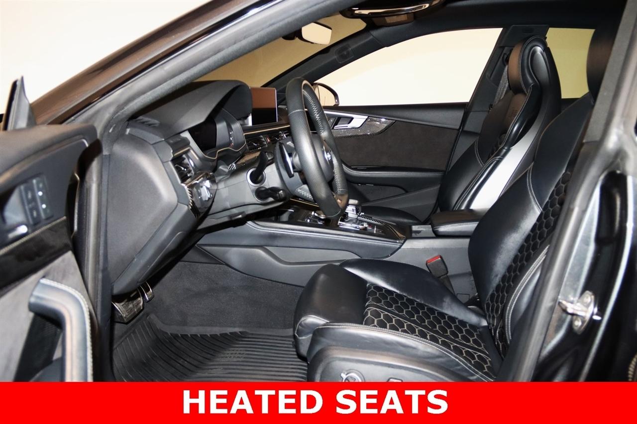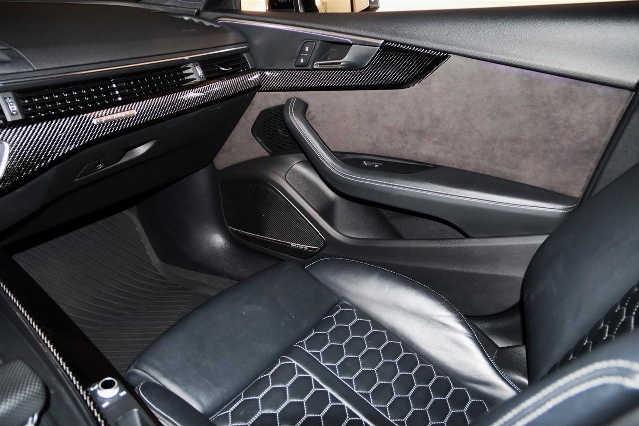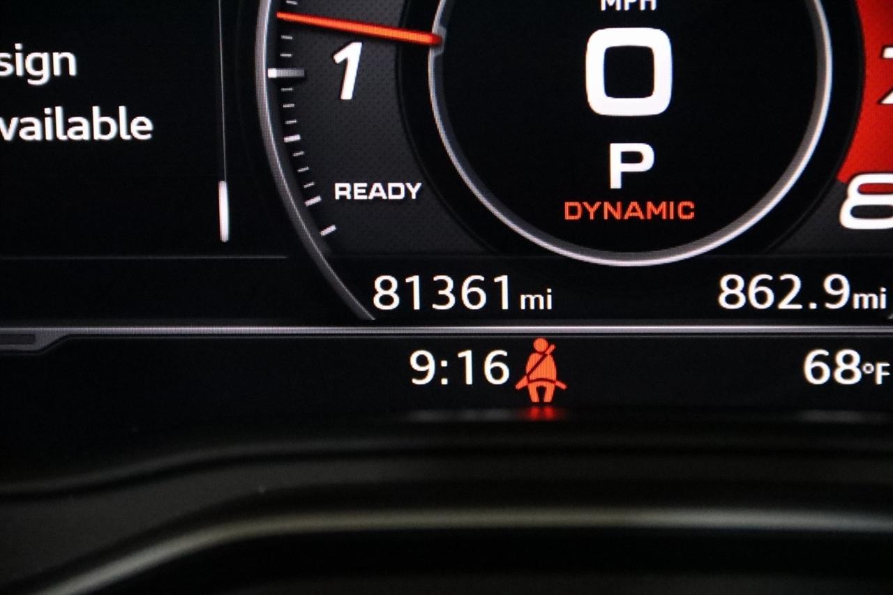 Navigation, Bluetooth, Back Up Camera, Sun/Moon Roof, Heated Seats, Touch Screen, 10 Speakers, 4-Wheel Disc Brakes, ABS brakes, Adaptive Cruise Control w/Traffic Jam Assist, Air Conditioning, Alloy wheels, AM/FM radio: SiriusXM, Audi Active Lane Assist, Audi smartphone interface (Apple CarPlay/Android Auto), Auto-dimming door mirrors, Auto-dimming Rear-View mirror, Automatic temperature control, Bang & Olufsen Sound System w/3D Sound, Black Optic Package, Brake assist, Bumpers: body-color, Compass, Delay-off headlights, Delete Front License Plate Holder, Driver door bin, Driver vanity mirror, Dual front impact airbags, Dual front side impact airbags, Dynamic Package, Dynamic Steering, Electronic Stability Control, Emergency communication system: Audi connect CARE, Exterior Parking Camera Rear, Fine Nappa Leather Package, Fine Nappa Leather Seating Surfaces, Four wheel independent suspension, Front anti-roll bar, Front Bucket Seats, Front Center Armrest, Front dual zone A/C, Front fog lights, Front reading lights, Garage door transmitter: HomeLink, Head-Up Display, Headlight cleaning, Heated door mirrors, Heated front seats, Heated S Sport Front Seats, High Gloss Black Exterior Kit w/quattro Script, High-Beam Assistant, High-Gloss Black Exterior Mirror Housings, Illuminated entry, Knee airbag, Leather Shift Knob, Leather steering wheel, Leather/Alcantara Seating Surfaces, LED Interior Lighting Plus Package, Low tire pressure warning, Memory seat, Navigation System, Navigation system: Audi Navigation Plus, Occupant sensing airbag, Outside temperature display, Overhead airbag, Overhead console, Panic alarm, Park Steering Assist, Passenger door bin, Passenger vanity mirror, Power door mirrors, Power driver seat, Power Liftgate, Power moonroof, Power passenger seat, Power steering, Power windows, Radio data system, Radio: Audi Sound System, Rain sensing wipers, Rear air conditioning, Rear anti-roll bar, Rear reading lights, Rear seat center armrest, Rear window defroster, Red Brake Calipers, Remote keyless entry, RS Driver Assistance Package, RS Sport Exhaust System w/Black Tips, RS Sport Suspension Plus w/Dynamic Ride Control, Security system, Speed control, Speed-sensing steering, Speed-Sensitive Wipers, Split folding rear seat, Spoiler, Sport steering wheel, Steering wheel mounted audio controls, Tachometer, Telescoping steering wheel, Tilt steering wheel, Top View Camera System, Traction control, Traffic Sign Recognition, Trip computer, Turn signal indicator mirrors, Variably intermittent wipers, Wheels: 20" 5-Arm-Flag Forged Design, Wheels: 20" 5-Arm-Peak Milled & Forged Design. Clean CARFAX. 17/26 City/Highway MPG