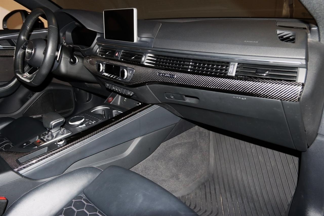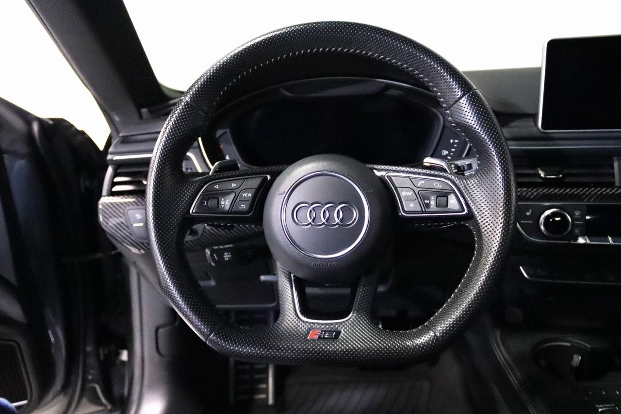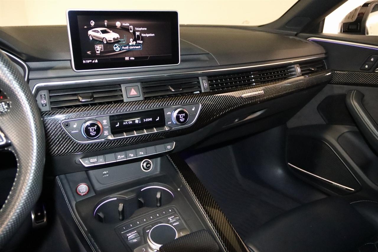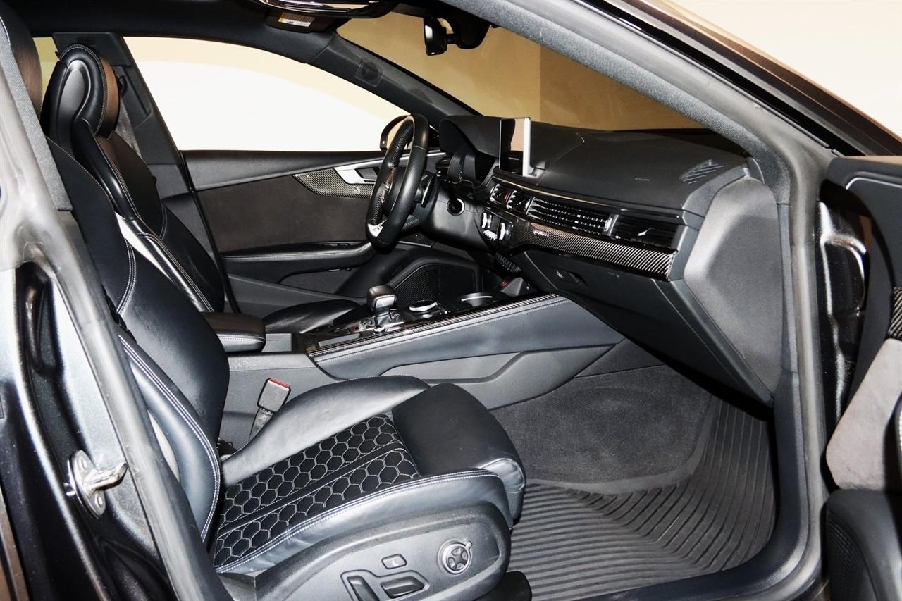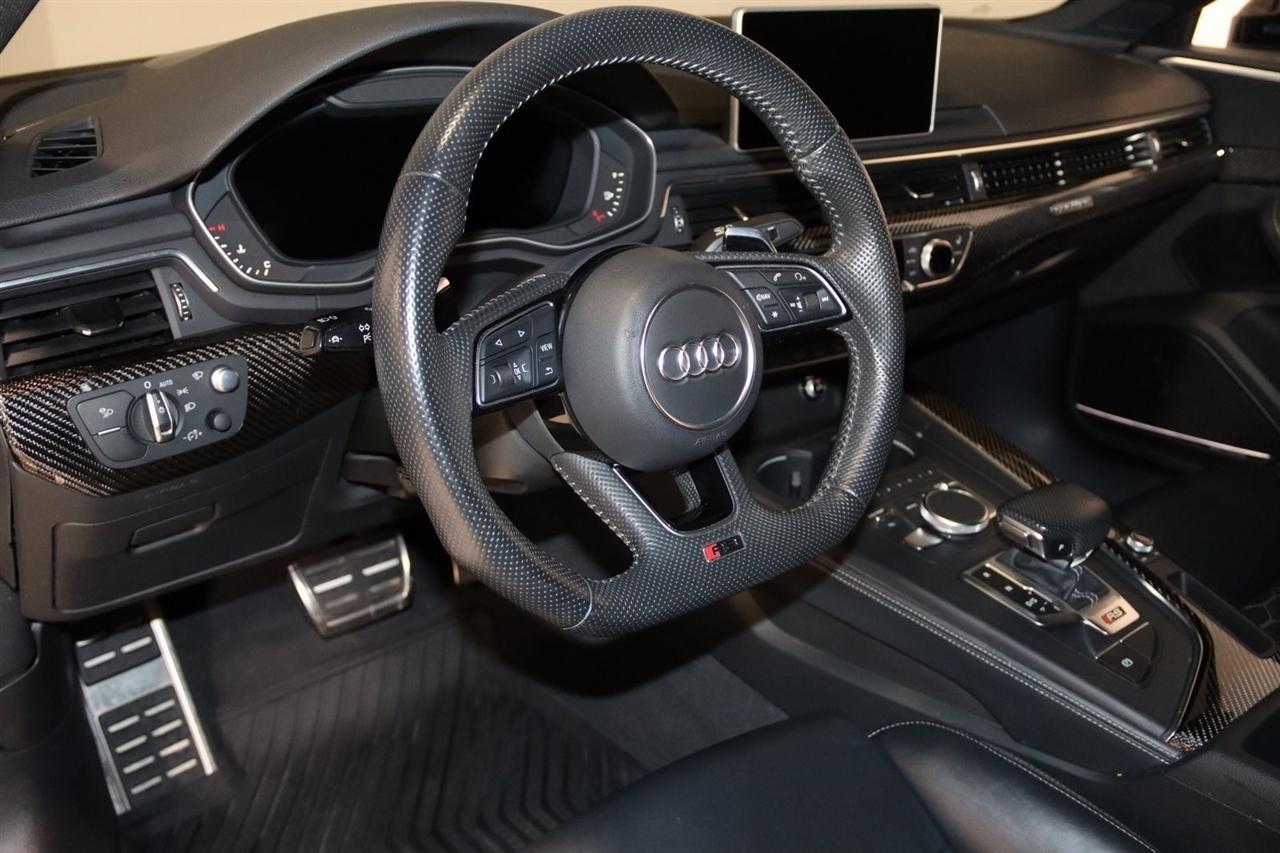 Navigation, Bluetooth, Back Up Camera, Sun/Moon Roof, Heated Seats, Touch Screen, 10 Speakers, 4-Wheel Disc Brakes, ABS brakes, Adaptive Cruise Control w/Traffic Jam Assist, Air Conditioning, Alloy wheels, AM/FM radio: SiriusXM, Audi Active Lane Assist, Audi smartphone interface (Apple CarPlay/Android Auto), Auto-dimming door mirrors, Auto-dimming Rear-View mirror, Automatic temperature control, Bang & Olufsen Sound System w/3D Sound, Black Optic Package, Brake assist, Bumpers: body-color, Compass, Delay-off headlights, Delete Front License Plate Holder, Driver door bin, Driver vanity mirror, Dual front impact airbags, Dual front side impact airbags, Dynamic Package, Dynamic Steering, Electronic Stability Control, Emergency communication system: Audi connect CARE, Exterior Parking Camera Rear, Fine Nappa Leather Package, Fine Nappa Leather Seating Surfaces, Four wheel independent suspension, Front anti-roll bar, Front Bucket Seats, Front Center Armrest, Front dual zone A/C, Front fog lights, Front reading lights, Garage door transmitter: HomeLink, Head-Up Display, Headlight cleaning, Heated door mirrors, Heated front seats, Heated S Sport Front Seats, High Gloss Black Exterior Kit w/quattro Script, High-Beam Assistant, High-Gloss Black Exterior Mirror Housings, Illuminated entry, Knee airbag, Leather Shift Knob, Leather steering wheel, Leather/Alcantara Seating Surfaces, LED Interior Lighting Plus Package, Low tire pressure warning, Memory seat, Navigation System, Navigation system: Audi Navigation Plus, Occupant sensing airbag, Outside temperature display, Overhead airbag, Overhead console, Panic alarm, Park Steering Assist, Passenger door bin, Passenger vanity mirror, Power door mirrors, Power driver seat, Power Liftgate, Power moonroof, Power passenger seat, Power steering, Power windows, Radio data system, Radio: Audi Sound System, Rain sensing wipers, Rear air conditioning, Rear anti-roll bar, Rear reading lights, Rear seat center armrest, Rear window defroster, Red Brake Calipers, Remote keyless entry, RS Driver Assistance Package, RS Sport Exhaust System w/Black Tips, RS Sport Suspension Plus w/Dynamic Ride Control, Security system, Speed control, Speed-sensing steering, Speed-Sensitive Wipers, Split folding rear seat, Spoiler, Sport steering wheel, Steering wheel mounted audio controls, Tachometer, Telescoping steering wheel, Tilt steering wheel, Top View Camera System, Traction control, Traffic Sign Recognition, Trip computer, Turn signal indicator mirrors, Variably intermittent wipers, Wheels: 20" 5-Arm-Flag Forged Design, Wheels: 20" 5-Arm-Peak Milled & Forged Design. Clean CARFAX. 17/26 City/Highway MPG