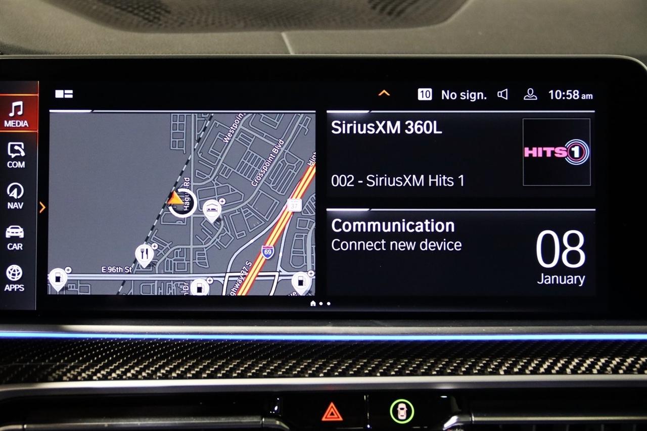 Navigation, Bluetooth, Back Up Camera, Panoramic Roof, Heated Seats, Touch Screen, 16 Speakers, 3.154 Axle Ratio, 4-Wheel Disc Brakes, ABS brakes, Active Park Distance Control, Adaptive suspension, Air Conditioning, Alloy wheels, AM/FM radio: SiriusXM with 360L, AM/FM Stereo, Auto High-beam Headlights, Auto tilt-away steering wheel, Auto-dimming door mirrors, Auto-dimming Rear-View mirror, Automatic temperature control, BMW Assist eCall, BMW TeleServices, Brake assist, Bumpers: body-color, Carbon Fiber Trim, Climate Comfort Package, Compass, Connected Package Pro, ConnectedDrive Services, Delay-off headlights, Drive Recorder, Driver door bin, Driver vanity mirror, Dual front impact airbags, Dual front side impact airbags, Electronic Stability Control, Emergency communication system: BMW Assist eCall, Exterior Parking Camera Rear, Four wheel independent suspension, Front & Rear Heated Seats, Front anti-roll bar, Front Bucket Seats, Front Center Armrest, Front dual zone A/C, Front reading lights, Front Ventilated Seats, Fully automatic headlights, Garage door transmitter, harman/kardon Surround Sound System, harman/kardon® Speakers, Head restraints memory, Head-Up Display, Heated door mirrors, Heated Front Seats, Heated front seats, Heated Front Seats w/Armrests & Steering Wheel, Illuminated entry, Knee airbag, Leather Shift Knob, Leather steering wheel, Live Cockpit Pro w/Navigation, Low tire pressure warning, Memory seat, Multi-Contour Seats, Navigation System, Occupant sensing airbag, Outside temperature display, Overhead airbag, Panic alarm, Parking Assistance Package, Parking Assistant Plus, Passenger door bin, Passenger vanity mirror, Power adjustable front head restraints, Power door mirrors, Power driver seat, Power moonroof, Power passenger seat, Power steering, Power windows, Radio data system, Rain sensing wipers, Rear air conditioning, Rear anti-roll bar, Rear dual zone A/C, Rear reading lights, Rear seat center armrest, Rear window defroster, Rear window wiper, Rear-View Camera, Remote keyless entry, Security system, Sensafin Upholstery, SiriusXM Satellite Radio, Speed control, Speed-sensing steering, Speed-Sensitive Wipers, Split folding rear seat, Spoiler, Sport steering wheel, Steering wheel mounted audio controls, Surround View w/3D View, Tachometer, Telescoping steering wheel, Tilt steering wheel, Traction control, Trip computer, Turn signal indicator mirrors, Variably intermittent wipers, Ventilated front seats, Wheels: 20" x 9" M Star-Spoke Bi-Color, WiFi Hotspot, Wireless Charging. CARFAX One-Owner. Priced below KBB Fair Purchase Price!