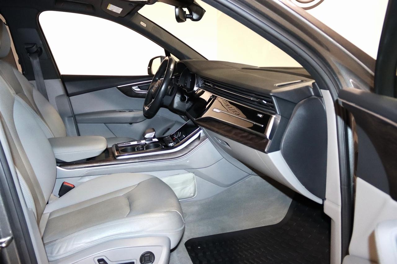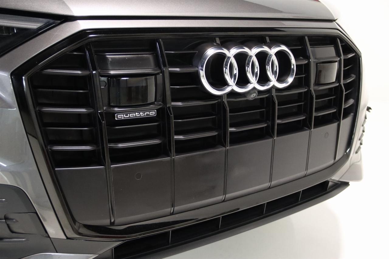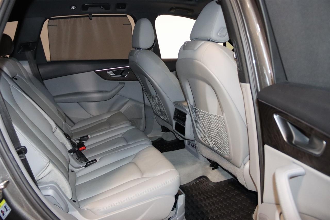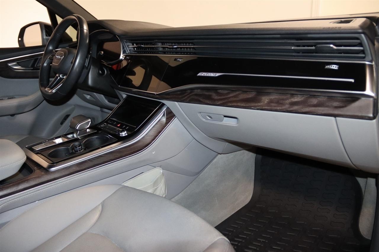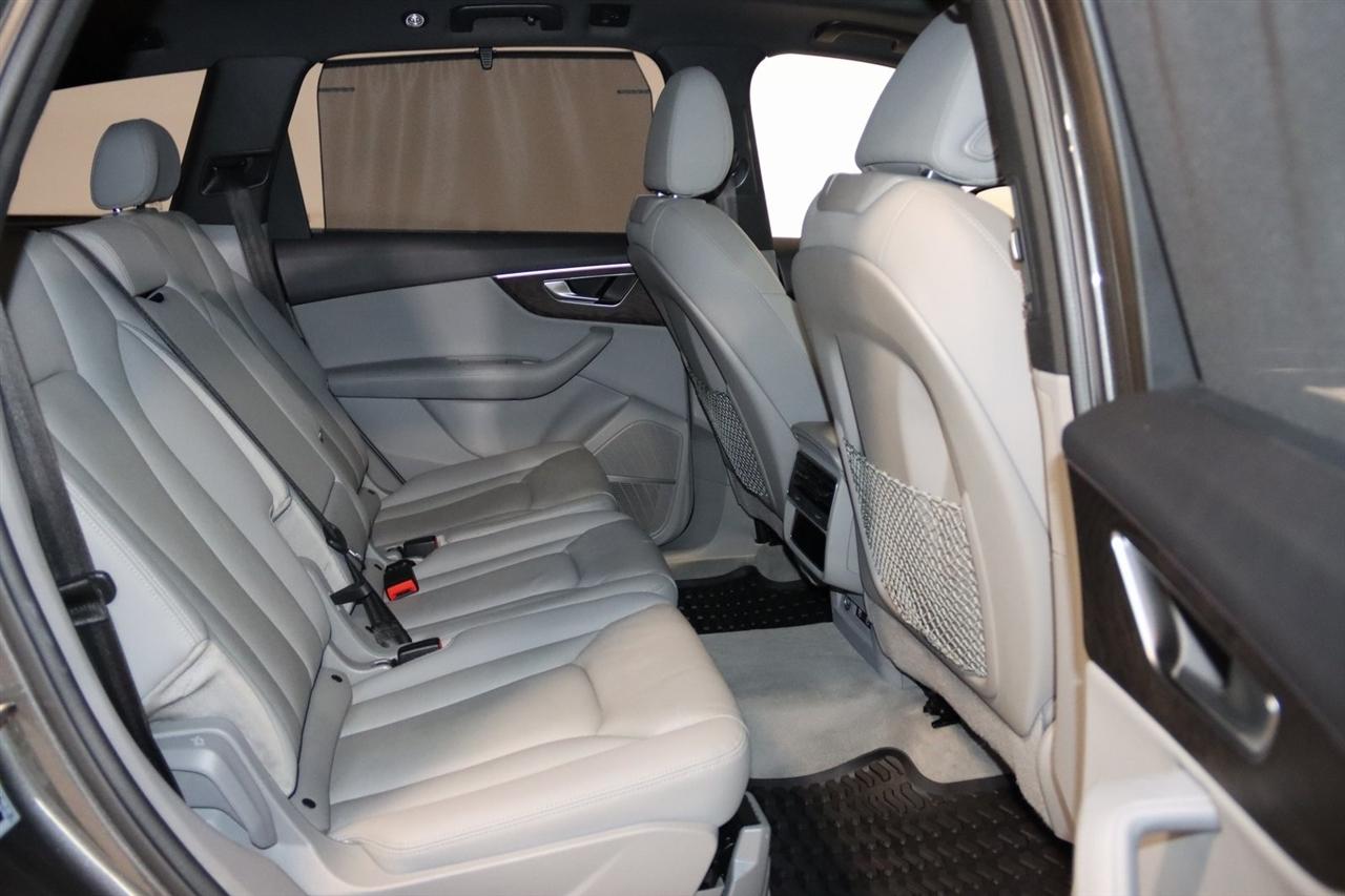 Navigation, Bluetooth, Back Up Camera, Panoramic Roof, 3rd Row, Heated Seats, Touch Screen, 10 Speakers, 3.204 Axle Ratio, 3rd row seats: bench, 4-Wheel Disc Brakes, ABS brakes, Air Conditioning, Alloy wheels, AM/FM radio: SiriusXM, Audi smartphone interface (Apple CarPlay/Android Auto), Auto High-beam Headlights, Auto-dimming Rear-View mirror, Automatic temperature control, Bang & Olufsen 3D Premium Sound System, Black Cloth Headliner, Black Door Blades, Black Front & Rear Bumper Inserts, Black Grille, Black Optic Exterior Package, Black Optic Package, Black Roof Rails, Black Window Surrounds, Brake assist, Bumpers: body-color, Comfort Adaptive Air Suspension, Compass, Contour/Ambient LED Interior Lighting Package, Convenience Package, Delay-off headlights, Driver door bin, Driver vanity mirror, Dual front impact airbags, Dual front side impact airbags, Dual-Pane Acoustic Side Windows, Electronic Stability Control, Emergency communication system: Audi connect CARE, PRIME & PLUS, Executive Package, Exterior Parking Camera Rear, Four wheel independent suspension, Front & Rear Doors Audi Beam-Rings, Front anti-roll bar, Front Bucket Seats, Front Center Armrest, Front dual zone A/C, Front fog lights, Front reading lights, Fully automatic headlights, Garage door transmitter: HomeLink, Genuine wood door panel insert, Gray/Brown Fine Grain Ash Natural Wood Inlays, Head-Up Display, Heated door mirrors, Heated Front Bucket Seats, Heated front seats, Illuminated Door Sills, Illuminated entry, Interior Protection Package, Intersection Assist, Leather Seating Surfaces, Leather Shift Knob, Leather steering wheel, Low tire pressure warning, Matrix-Design LED Headlights, Memory seat, Navigation System, Navigation system: Audi MMI Navigation plus with Touch Response, Occupant sensing airbag, Outside temperature display, Overhead airbag, Overhead console, Panic alarm, Passenger door bin, Passenger vanity mirror, Power door mirrors, Power driver seat, Power Liftgate, Power moonroof, Power passenger seat, Power Soft-Closing Doors, Power steering, Power windows, Prestige Package, Privacy Trunk Cover, Radio data system, Radio: Audi Sound System, Rain sensing wipers, Rear air conditioning, Rear anti-roll bar, Rear fog lights, Rear reading lights, Rear seat center armrest, Rear window defroster, Rear window wiper, Reclining 3rd row seat, Remote keyless entry, Roof rack: rails only, Security system, Speed control, Speed-sensing steering, Split folding rear seat, Spoiler, Steering wheel memory, Steering wheel mounted audio controls, Tachometer, Telescoping steering wheel, Tilt steering wheel, Tow Hitch Receiver, Towing Package, Traction control, Traffic Sign Recognition, Trip computer, Turn signal indicator mirrors, Variably intermittent wipers, Wheels: 20" 5-Spoke Turbine-Design, Wheels: 21" 10-Spoke Star-Design Bi-Color Black. Clean CARFAX.