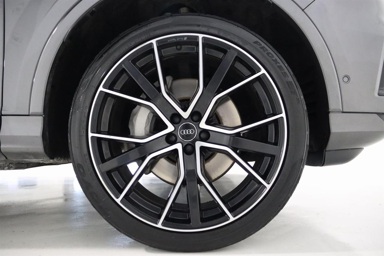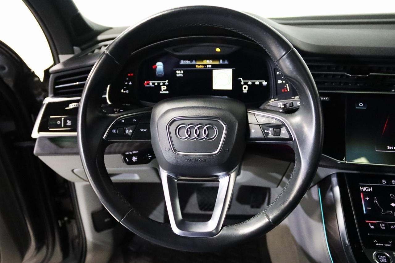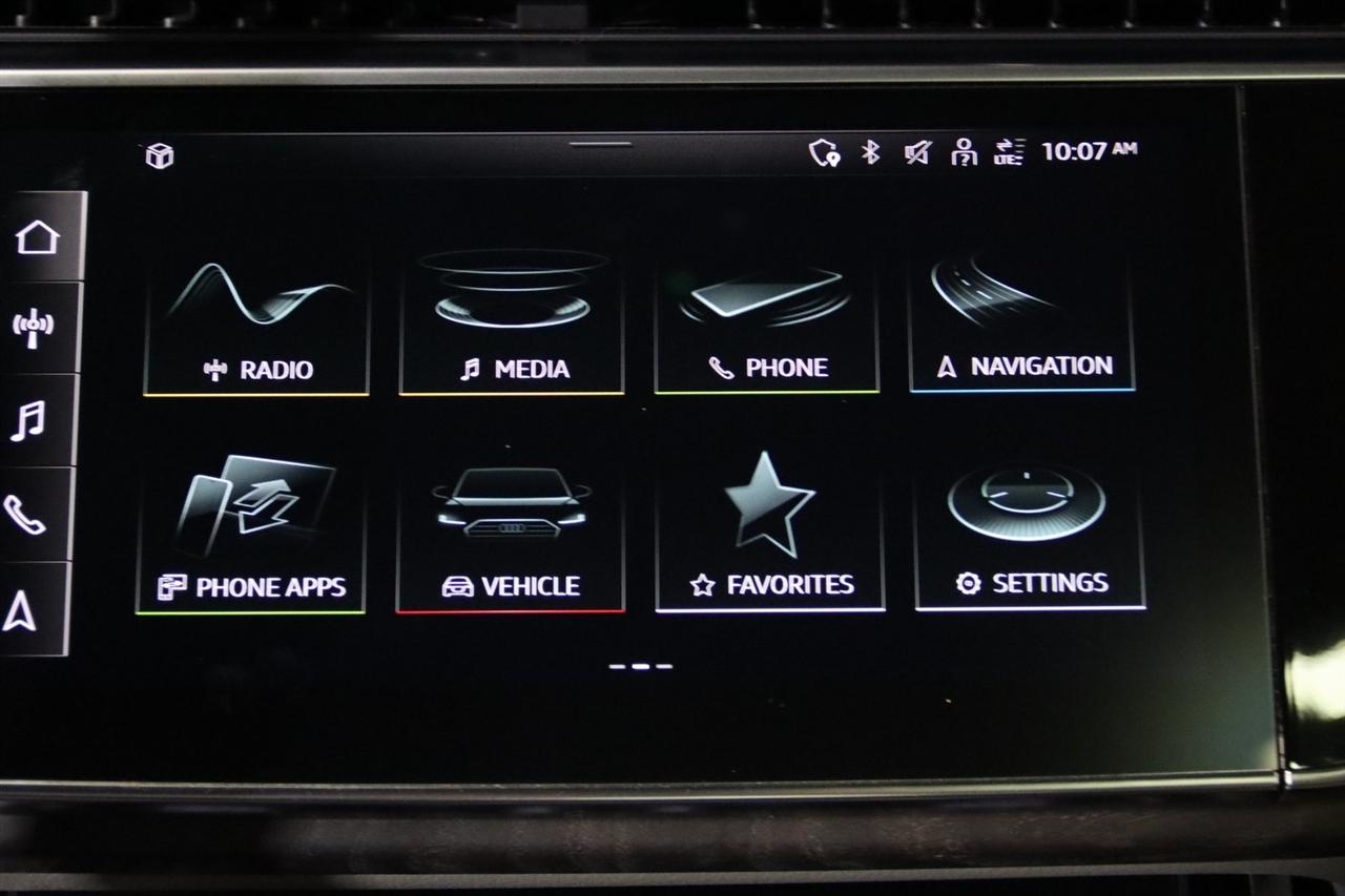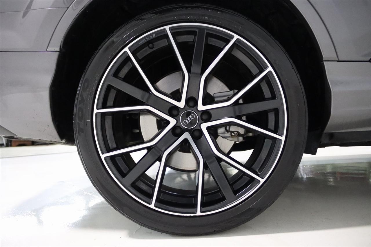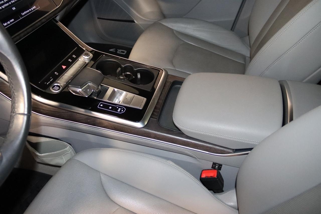 Navigation, Bluetooth, Back Up Camera, Panoramic Roof, 3rd Row, Heated Seats, Touch Screen, 10 Speakers, 3.204 Axle Ratio, 3rd row seats: bench, 4-Wheel Disc Brakes, ABS brakes, Air Conditioning, Alloy wheels, AM/FM radio: SiriusXM, Audi smartphone interface (Apple CarPlay/Android Auto), Auto High-beam Headlights, Auto-dimming Rear-View mirror, Automatic temperature control, Bang & Olufsen 3D Premium Sound System, Black Cloth Headliner, Black Door Blades, Black Front & Rear Bumper Inserts, Black Grille, Black Optic Exterior Package, Black Optic Package, Black Roof Rails, Black Window Surrounds, Brake assist, Bumpers: body-color, Comfort Adaptive Air Suspension, Compass, Contour/Ambient LED Interior Lighting Package, Convenience Package, Delay-off headlights, Driver door bin, Driver vanity mirror, Dual front impact airbags, Dual front side impact airbags, Dual-Pane Acoustic Side Windows, Electronic Stability Control, Emergency communication system: Audi connect CARE, PRIME & PLUS, Executive Package, Exterior Parking Camera Rear, Four wheel independent suspension, Front & Rear Doors Audi Beam-Rings, Front anti-roll bar, Front Bucket Seats, Front Center Armrest, Front dual zone A/C, Front fog lights, Front reading lights, Fully automatic headlights, Garage door transmitter: HomeLink, Genuine wood door panel insert, Gray/Brown Fine Grain Ash Natural Wood Inlays, Head-Up Display, Heated door mirrors, Heated Front Bucket Seats, Heated front seats, Illuminated Door Sills, Illuminated entry, Interior Protection Package, Intersection Assist, Leather Seating Surfaces, Leather Shift Knob, Leather steering wheel, Low tire pressure warning, Matrix-Design LED Headlights, Memory seat, Navigation System, Navigation system: Audi MMI Navigation plus with Touch Response, Occupant sensing airbag, Outside temperature display, Overhead airbag, Overhead console, Panic alarm, Passenger door bin, Passenger vanity mirror, Power door mirrors, Power driver seat, Power Liftgate, Power moonroof, Power passenger seat, Power Soft-Closing Doors, Power steering, Power windows, Prestige Package, Privacy Trunk Cover, Radio data system, Radio: Audi Sound System, Rain sensing wipers, Rear air conditioning, Rear anti-roll bar, Rear fog lights, Rear reading lights, Rear seat center armrest, Rear window defroster, Rear window wiper, Reclining 3rd row seat, Remote keyless entry, Roof rack: rails only, Security system, Speed control, Speed-sensing steering, Split folding rear seat, Spoiler, Steering wheel memory, Steering wheel mounted audio controls, Tachometer, Telescoping steering wheel, Tilt steering wheel, Tow Hitch Receiver, Towing Package, Traction control, Traffic Sign Recognition, Trip computer, Turn signal indicator mirrors, Variably intermittent wipers, Wheels: 20" 5-Spoke Turbine-Design, Wheels: 21" 10-Spoke Star-Design Bi-Color Black. Clean CARFAX.
