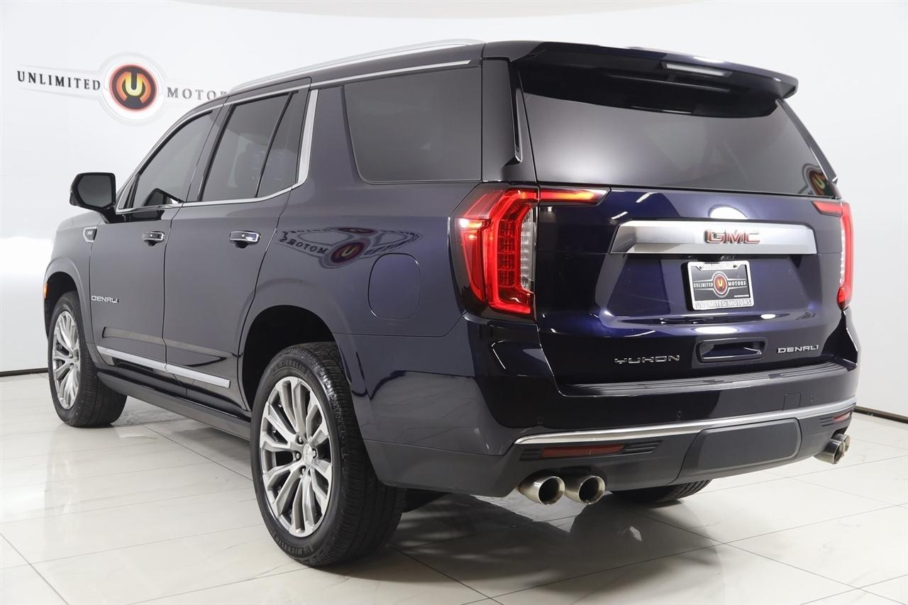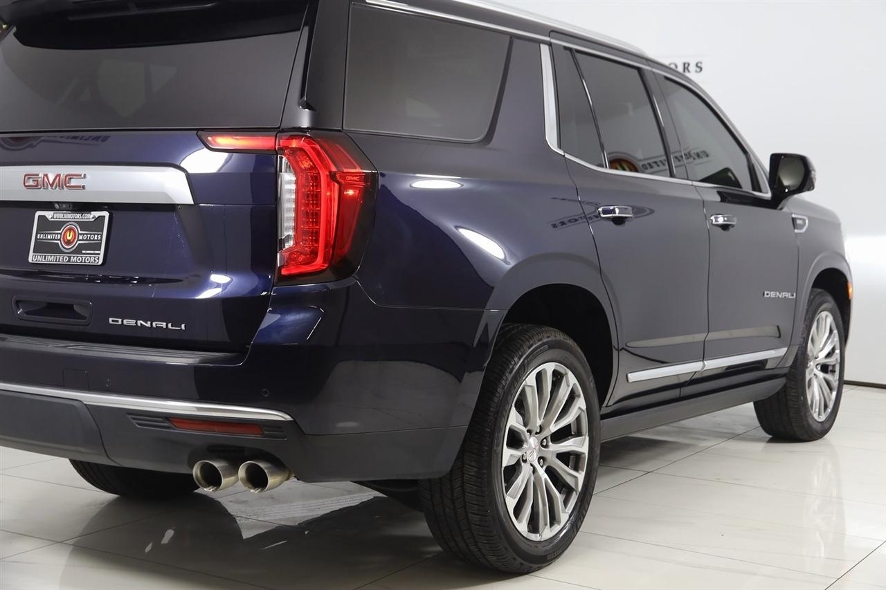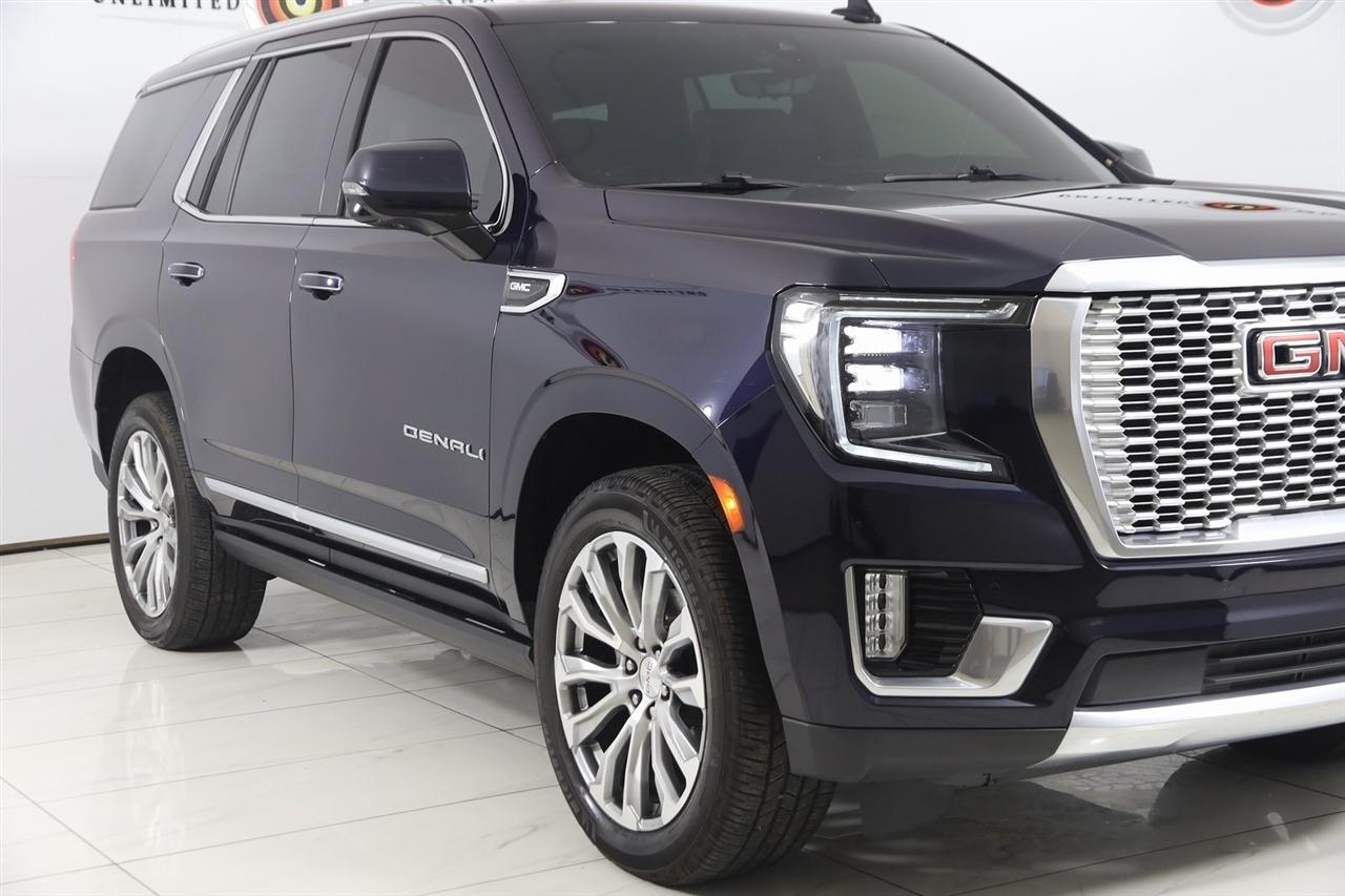 4x4, AWD, Back Up Camera, Bluetooth, Heated Seats, Navigation/GPS, Push Button Start, 4-Matic, Panoramic Roof, Power Running Boards, and much more ..., Touch Screen, Yukon Denali, 4D Sport Utility, EcoTec3 6.2L V8, 10-Speed Automatic with Overdrive, 4WD, Midnight Blue Metallic, Jet Black Leather, 12-Way Power Seat Adjusters, 15" Diagonal Multi-Color Head-Up Display, 2 Presets For Outside Rearview Mirrors, 3rd Row 60/40 Power-Folding Split-Bench Seat, Adaptive Cruise Control, Advanced Security Package, Advanced Technology Package, Bright Front & Rear Door Sill Plates, Chrome Door Handles w/Body-Color Strip, Denali Premium Package, Dual Exhaust System, Dual-Pane Panoramic Power Sunroof, Enhanced Automatic Emergency Braking, Galvano Bodyside Moldings, Glass Breakage Sensor, Hands-Free Power Programmable Rear Liftgate, HD Surround Vision, Heated & Ventilated Driver & Front Passenger Seats, Heated 2nd Row Outboard Position Seats, Heated Automatic Steering Wheel, Heated Driver & Front Passenger Seats, Hill Descent Control, Inside Rear-View Auto-Dimming Mirror, Inside Rearview Auto-Dimming Rear Camera Mirror, Navigation System, Outside Heated Power-Adjustable Mirrors, Power Release 2nd Row Bucket Seats, Power Tilt & Telescopic Steering Column, Power-Retractable Assist Steps, Preferred Equipment Group 5SA, Rear Camera Mirror Washer, Rear Pedestrian Alert, Safety Alert Seat, Theft-Deterrent Alarm System, Universal Home Remote, Vehicle Inclination Sensor, Vehicle Interior Movement Sensor.