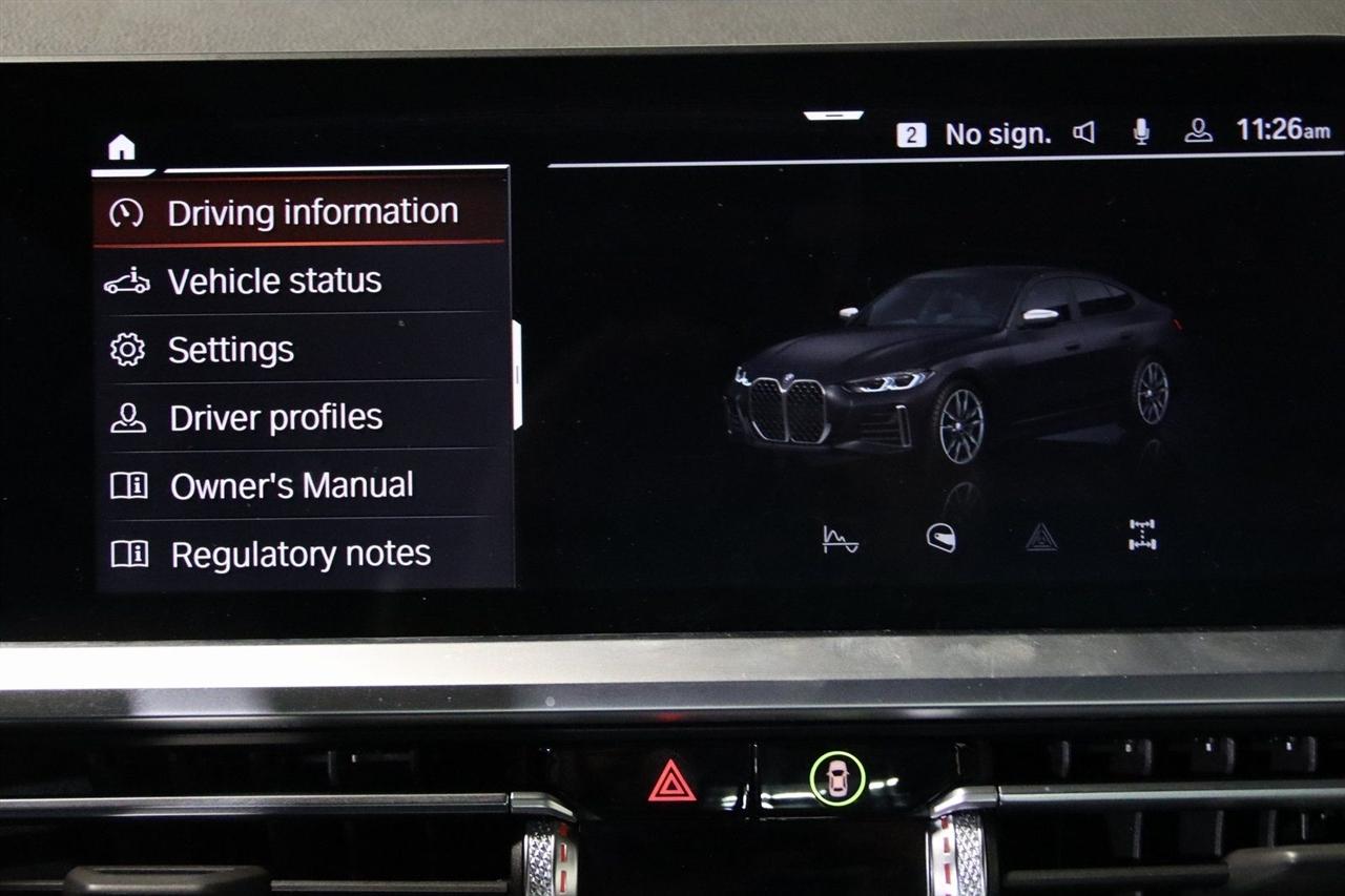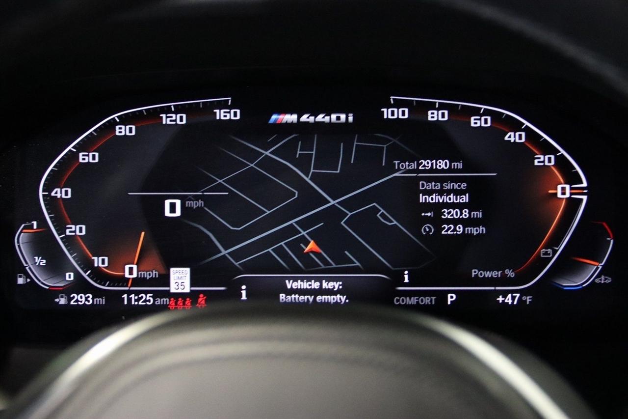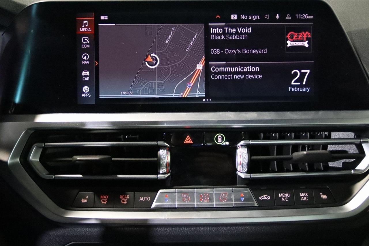 Navigation, Bluetooth, Back Up Camera, Sun/Moon Roof, Heated Seats, Touch Screen, 10 Speakers, 4-Wheel Disc Brakes, ABS brakes, Air Conditioning, Alloy wheels, AM/FM radio: SiriusXM, Ambient Lighting, Apple CarPlay & Android Auto Compatibility, Apple CarPlay Compatibility, Auto High-beam Headlights, Auto-dimming door mirrors, Auto-dimming Rear-View mirror, Automatic temperature control, BMW Assist eCall, BMW TeleServices, Brake assist, Bumpers: body-color, Compass, ConnectedDrive Services, Delay-off headlights, Driver door bin, Driver Lumbar Support, Driver vanity mirror, Dual front impact airbags, Dual front side impact airbags, Electronic Stability Control, Emergency communication system: BMW Assist eCall, Exterior Parking Camera Rear, Four wheel independent suspension, Front anti-roll bar, Front Bucket Seats, Front Center Armrest, Front dual zone A/C, Front reading lights, Fully automatic headlights, Garage door transmitter, Head-Up Display, Heated door mirrors, Heated Front Seats, Heated Steering Wheel, Hi-Fi Sound System, Illuminated entry, Knee airbag, Leather Shift Knob, Low tire pressure warning, Memory seat, Mobility Kit, Navigation System, Occupant sensing airbag, Outside temperature display, Overhead airbag, Overhead console, Panic alarm, Passenger door bin, Passenger vanity mirror, Perforated Sensatec Upholstery, Power door mirrors, Power driver seat, Power Front Seats, Power Liftgate, Power moonroof, Power passenger seat, Power steering, Power windows, Premium Package, Radio data system, Radio: AM/FM Audio System, Rain sensing wipers, Rear air conditioning, Rear anti-roll bar, Rear reading lights, Rear seat center armrest, Rear window defroster, Remote keyless entry, Security system, SiriusXM Satellite Radio, Speed control, Speed-sensing steering, Speed-Sensitive Wipers, Split folding rear seat, Spoiler, Sport Seats, Sport steering wheel, Steering wheel mounted audio controls, Tachometer, Telescoping steering wheel, Tilt steering wheel, Traction control, Trip computer, Turn signal indicator mirrors, Variably intermittent wipers, Wheels: 19" x 8.5" Fr & 19" x 9.0" Rr M Bi-Color. CARFAX One-Owner. Clean CARFAX. 22/31 City/Highway MPG