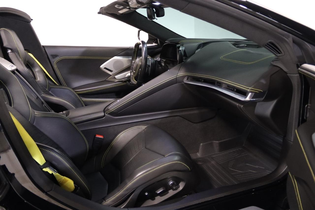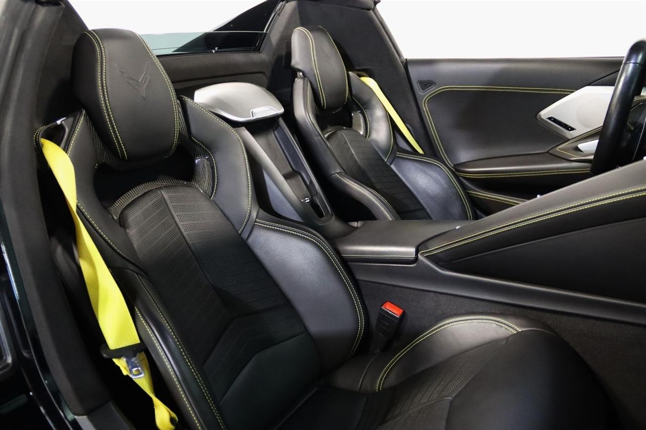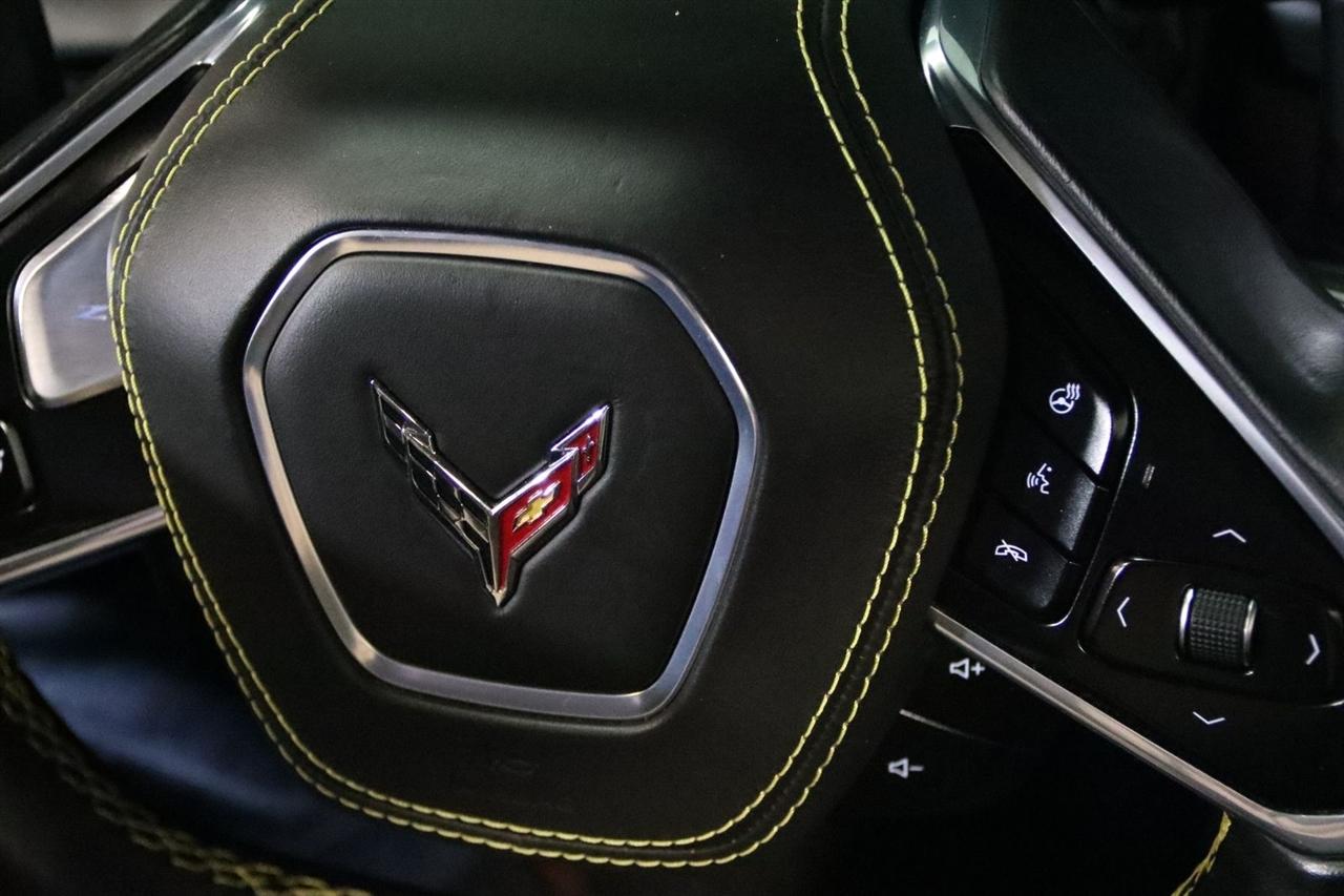 Navigation, Bluetooth, Back Up Camera, Hard Top, Heated Seats, Touch Screen, 14 Speakers, 2 Cargo Nets, 4-Wheel Disc Brakes, 8-Way Power Driver Seat Adjuster, 8-Way Power Passenger Seat Adjuster, ABS brakes, Air Conditioning, Alloy wheels, AM/FM radio: SiriusXM, Auto-dimming door mirrors, Auto-dimming Rear-View mirror, Automatic temperature control, Battery Protection Package, Bose Performance Series Sound System w/14 Speakers, Brake assist, Bumpers: body-color, Compass, Convertible HardTop, Convertible roof lining, Custom Leather Wrapped Interior Package, Delay-off headlights, Driver door bin, Driver Power Bolster Seat Adjuster, Driver vanity mirror, Dual front impact airbags, Dual front side impact airbags, Edge Yellow-Painted Calipers, Electrical Theft Deterrent System, Electronic Stability Control, Emergency communication system: OnStar and Chevrolet connected services capable, Four wheel independent suspension, Front anti-roll bar, Front Bucket Seats, Front Center Armrest, Front dual zone A/C, Front Lift Adjustable Height w/Memory, Front reading lights, Fully automatic headlights, Garage door transmitter, Glass rear window, GT2 Bucket Seats, HD Front & Rear Vision Cameras, HD Radio, Head-Up Display, Heads-Up Display, Heated & Vented Driver & Passenger Seats, Heated door mirrors, Heated front seats, Heated Steering Wheel, Heated steering wheel, Illuminated entry, Integrated roll-over protection, Leather Shift Knob, Leather steering wheel, Low tire pressure warning, Memory Driver & Passenger Convenience Package, Memory seat, Napa Lthr Seating Surfaces w/Perforated Inserts, Navigation System, Occupant sensing airbag, Outside temperature display, Overhead console, Panic alarm, Passenger door bin, Passenger Power Bolster Seat Adjuster, Passenger vanity mirror, Performance Data & Video Recorder, Power convertible roof, Power door mirrors, Power Driver Lumbar Control Seat Adjuster, Power driver seat, Power Passenger Lumbar Control Seat Adjuster, Power passenger seat, Power steering, Power windows, Power-Adjustable Outside Heated Mirrors, Preferred Equipment Group 3LT, Radio data system, Radio: Chevrolet Infotainment 3 Premium System, Rear anti-roll bar, Rear Cross Traffic Alert, Rear Parking Sensors, Rear window defroster, Remote keyless entry, Security system, Side Blind Zone Alert, SiriusXM Radio, Speed control, Speed-sensing steering, Sport steering wheel, Steering wheel memory, Steering wheel mounted audio controls, Sueded Microfiber-Wrapped Upper Interior Trim Pkg, Tachometer, Telescoping steering wheel, Tilt steering wheel, Traction control, Trip computer, Turn signal indicator mirrors, Universal Home Remote, Variably intermittent wipers, Vehicle Inclination Theft Deterrent Sensor, Vehicle Interior Movement Theft Deterrent Sensor, Ventilated front seats, Voltmeter, Wheels: 19" x 8.5" Fr/20" x 11" Rr Carbon Flash, Wireless Apple CarPlay/Wireless Android Auto, Wireless Charging for Devices, Yellow Custom Leather Stitch, Yellow Seat Belt Color. Clean CARFAX. 15/27 City/Highway MPG