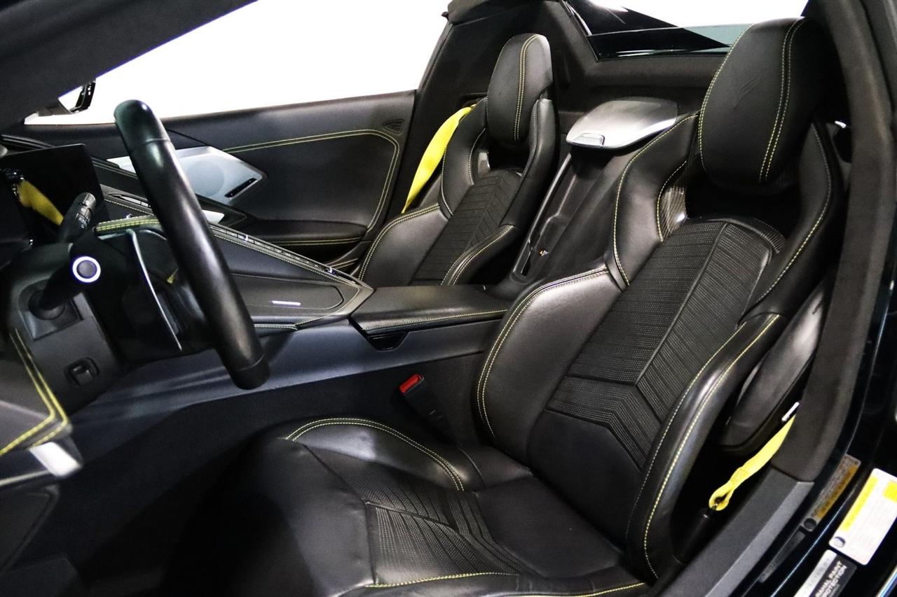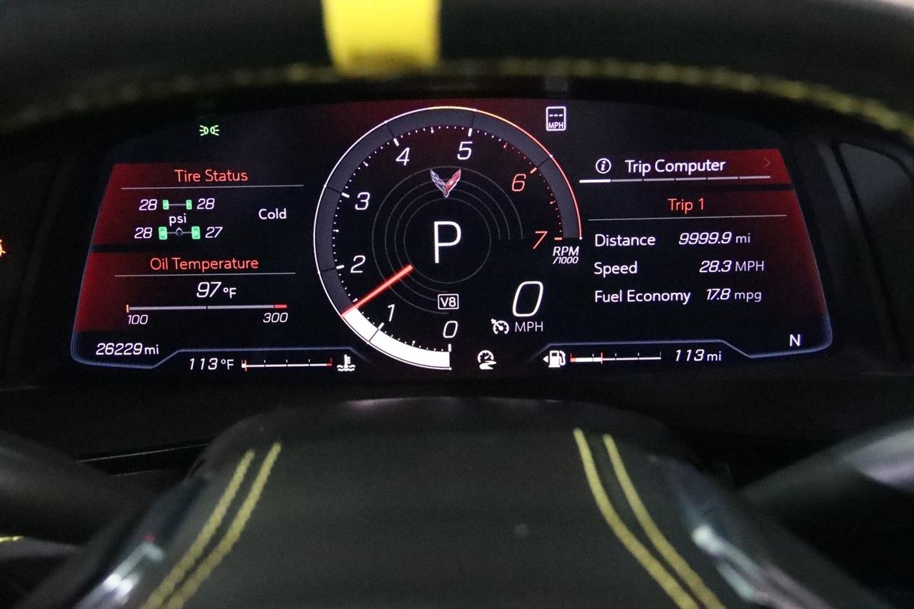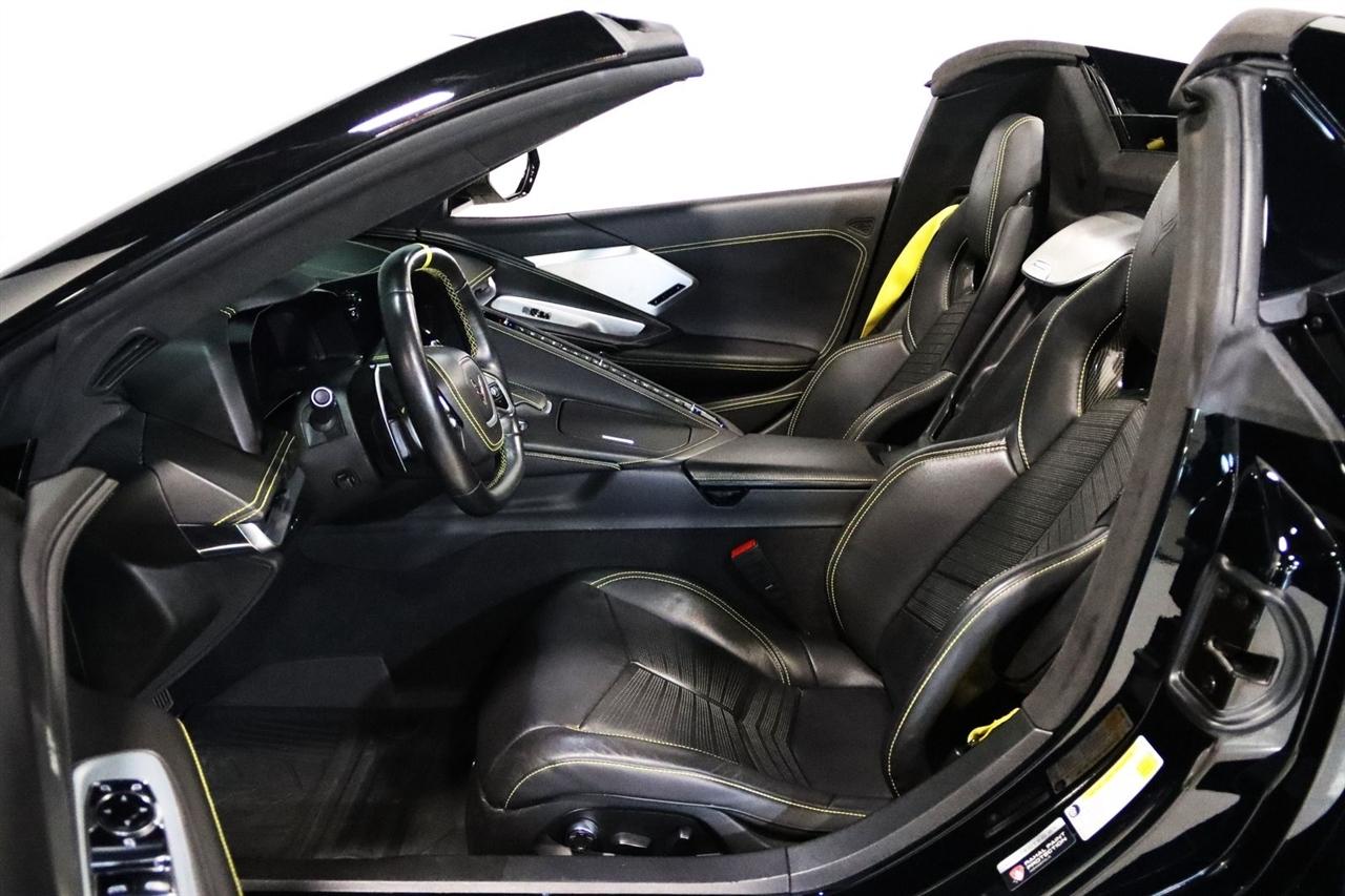 Navigation, Bluetooth, Back Up Camera, Hard Top, Heated Seats, Touch Screen, 14 Speakers, 2 Cargo Nets, 4-Wheel Disc Brakes, 8-Way Power Driver Seat Adjuster, 8-Way Power Passenger Seat Adjuster, ABS brakes, Air Conditioning, Alloy wheels, AM/FM radio: SiriusXM, Auto-dimming door mirrors, Auto-dimming Rear-View mirror, Automatic temperature control, Battery Protection Package, Bose Performance Series Sound System w/14 Speakers, Brake assist, Bumpers: body-color, Compass, Convertible HardTop, Convertible roof lining, Custom Leather Wrapped Interior Package, Delay-off headlights, Driver door bin, Driver Power Bolster Seat Adjuster, Driver vanity mirror, Dual front impact airbags, Dual front side impact airbags, Edge Yellow-Painted Calipers, Electrical Theft Deterrent System, Electronic Stability Control, Emergency communication system: OnStar and Chevrolet connected services capable, Four wheel independent suspension, Front anti-roll bar, Front Bucket Seats, Front Center Armrest, Front dual zone A/C, Front Lift Adjustable Height w/Memory, Front reading lights, Fully automatic headlights, Garage door transmitter, Glass rear window, GT2 Bucket Seats, HD Front & Rear Vision Cameras, HD Radio, Head-Up Display, Heads-Up Display, Heated & Vented Driver & Passenger Seats, Heated door mirrors, Heated front seats, Heated Steering Wheel, Heated steering wheel, Illuminated entry, Integrated roll-over protection, Leather Shift Knob, Leather steering wheel, Low tire pressure warning, Memory Driver & Passenger Convenience Package, Memory seat, Napa Lthr Seating Surfaces w/Perforated Inserts, Navigation System, Occupant sensing airbag, Outside temperature display, Overhead console, Panic alarm, Passenger door bin, Passenger Power Bolster Seat Adjuster, Passenger vanity mirror, Performance Data & Video Recorder, Power convertible roof, Power door mirrors, Power Driver Lumbar Control Seat Adjuster, Power driver seat, Power Passenger Lumbar Control Seat Adjuster, Power passenger seat, Power steering, Power windows, Power-Adjustable Outside Heated Mirrors, Preferred Equipment Group 3LT, Radio data system, Radio: Chevrolet Infotainment 3 Premium System, Rear anti-roll bar, Rear Cross Traffic Alert, Rear Parking Sensors, Rear window defroster, Remote keyless entry, Security system, Side Blind Zone Alert, SiriusXM Radio, Speed control, Speed-sensing steering, Sport steering wheel, Steering wheel memory, Steering wheel mounted audio controls, Sueded Microfiber-Wrapped Upper Interior Trim Pkg, Tachometer, Telescoping steering wheel, Tilt steering wheel, Traction control, Trip computer, Turn signal indicator mirrors, Universal Home Remote, Variably intermittent wipers, Vehicle Inclination Theft Deterrent Sensor, Vehicle Interior Movement Theft Deterrent Sensor, Ventilated front seats, Voltmeter, Wheels: 19" x 8.5" Fr/20" x 11" Rr Carbon Flash, Wireless Apple CarPlay/Wireless Android Auto, Wireless Charging for Devices, Yellow Custom Leather Stitch, Yellow Seat Belt Color. Clean CARFAX. 15/27 City/Highway MPG