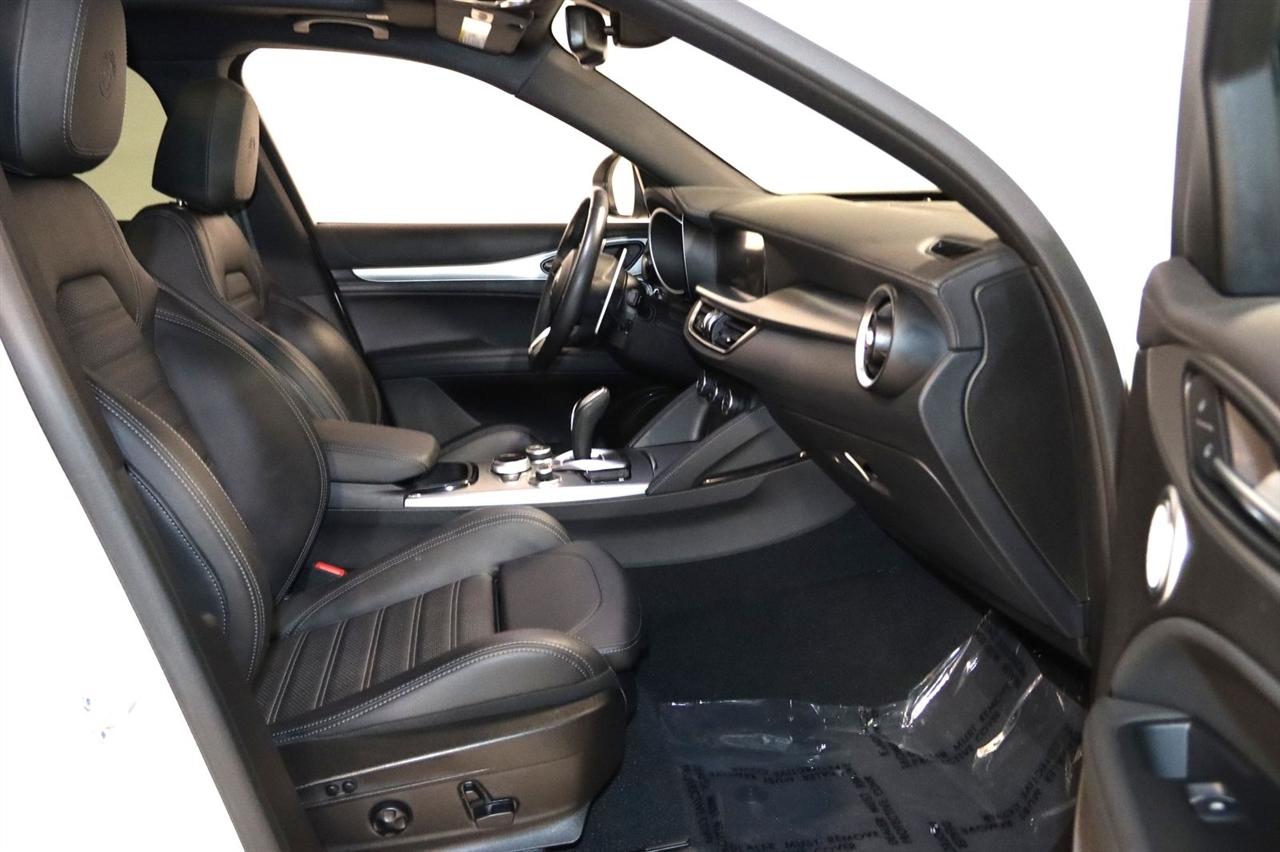 Navigation, Bluetooth, Back Up Camera, Panoramic Roof, Touch Screen, 3.73 Axle Ratio, 4-Wheel Disc Brakes, 8 Speakers, ABS brakes, Air Conditioning, Alloy wheels, AM/FM radio: SiriusXM, Apple CarPlay/Android Auto, Auto High-beam Headlights, Auto-dimming door mirrors, Auto-dimming Rear-View mirror, Automatic temperature control, Brake assist, Bumpers: body-color, Compass, Delay-off headlights, Driver door bin, Driver vanity mirror, Dual front impact airbags, Dual front side impact airbags, Electronic Stability Control, Emergency communication system: Alfa Connect, Four wheel independent suspension, Front anti-roll bar, Front Bucket Seats, Front Center Armrest, Front dual zone A/C, Front reading lights, Fully automatic headlights, Garage door transmitter, Heated door mirrors, Heated front seats, Heated rear seats, Heated steering wheel, High-Intensity Discharge Headlights, Illuminated entry, Knee airbag, Leather Seats, Leather Shift Knob, Leather steering wheel, Low tire pressure warning, Memory seat, Navigation System, Occupant sensing airbag, Outside temperature display, Overhead airbag, Overhead console, Panic alarm, ParkView Rear Back-Up Camera, Passenger door bin, Passenger vanity mirror, Power door mirrors, Power driver seat, Power Liftgate, Power moonroof, Power passenger seat, Power steering, Power windows, Radio data system, Radio: AM/FM/HD 8.8" w/Navigation, Rain sensing wipers, Rear anti-roll bar, Rear audio controls, Rear fog lights, Rear reading lights, Rear seat center armrest, Rear window defroster, Rear window wiper, Remote keyless entry, Security system, Speed control, Speed-sensing steering, Speed-Sensitive Wipers, Split folding rear seat, Spoiler, Sport steering wheel, Steering wheel mounted audio controls, Tachometer, Telescoping steering wheel, Tilt steering wheel, Traction control, Trip computer, Turn signal indicator mirrors, Variably intermittent wipers, Wheels: 19" x 8.0" Sport 5-Hole Aluminum. CARFAX One-Owner. Clean CARFAX. 22/28 City/Highway MPG Odometer is 4956 miles below market average! Priced below KBB Fair Purchase Price!